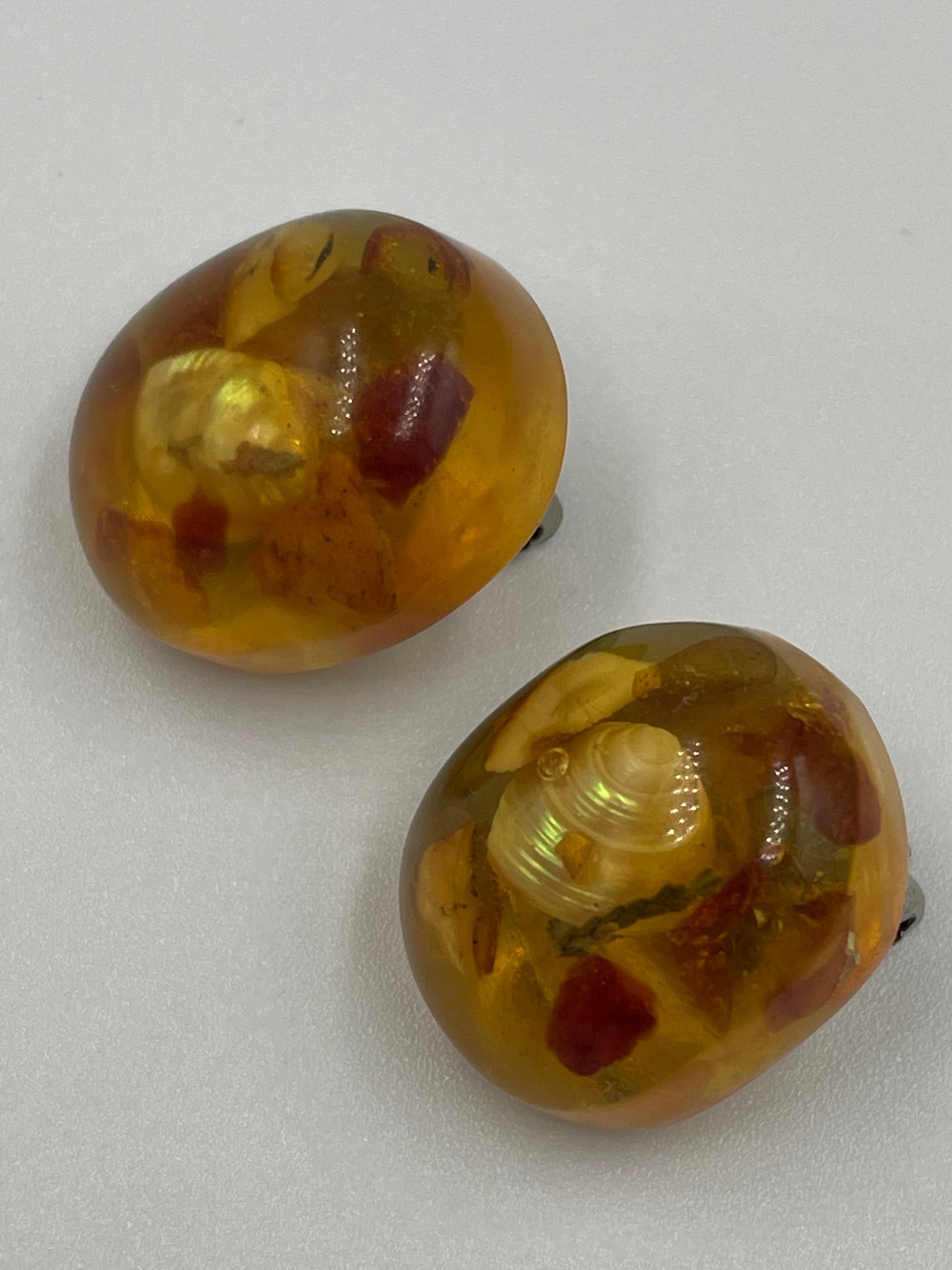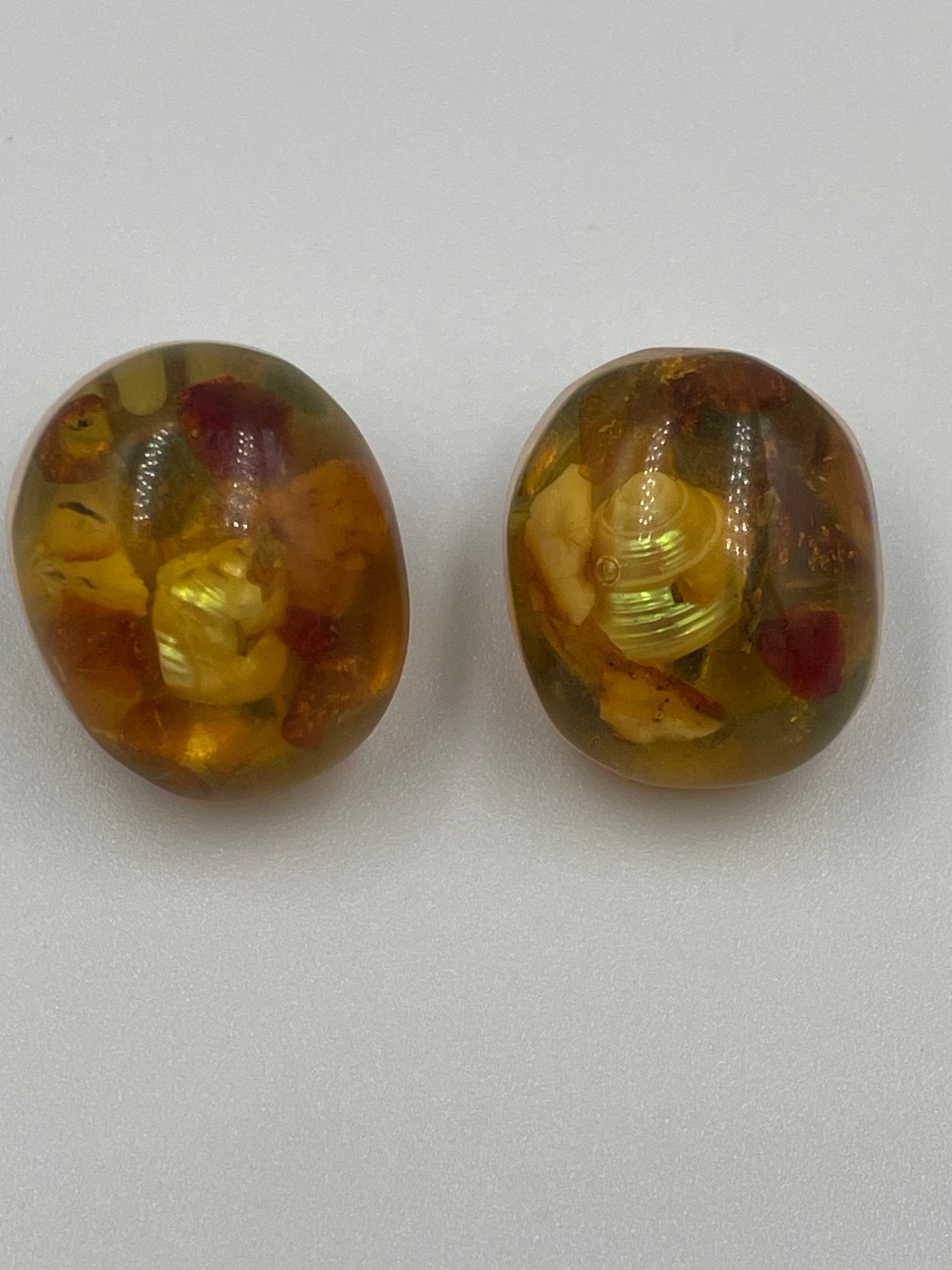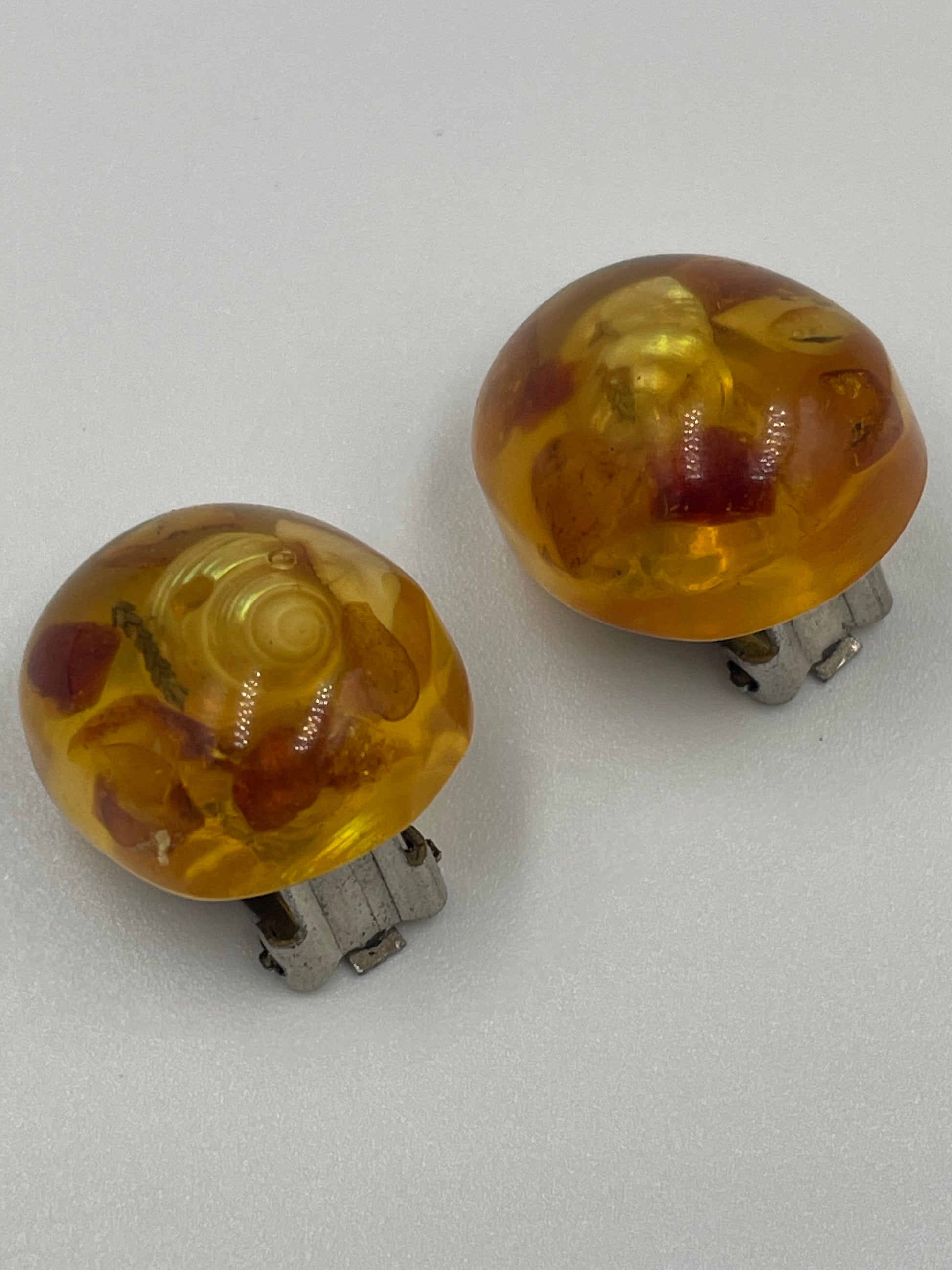 Clip-Ohrringe aus hellgelbem Bernstein mit Einschlüssen