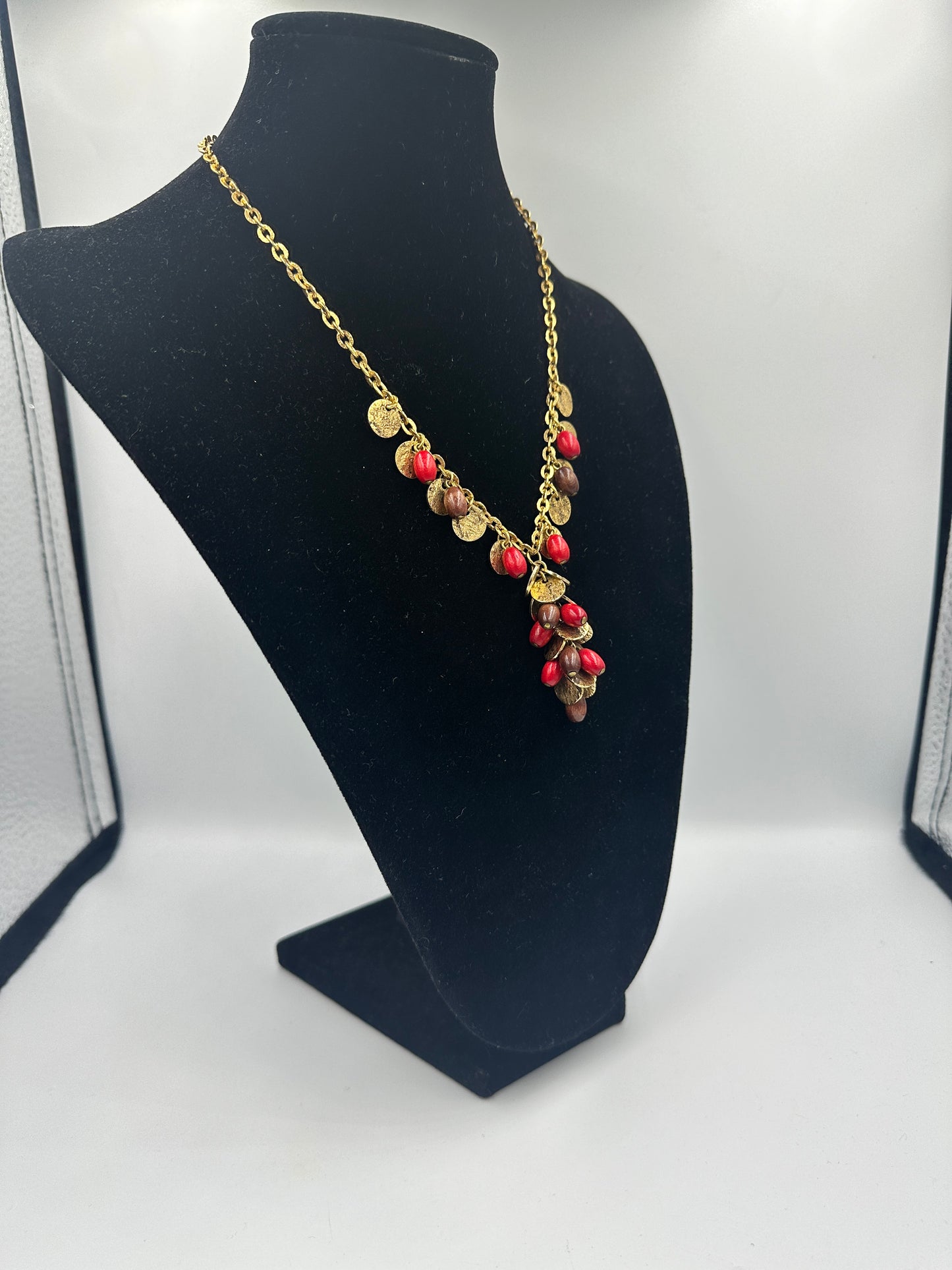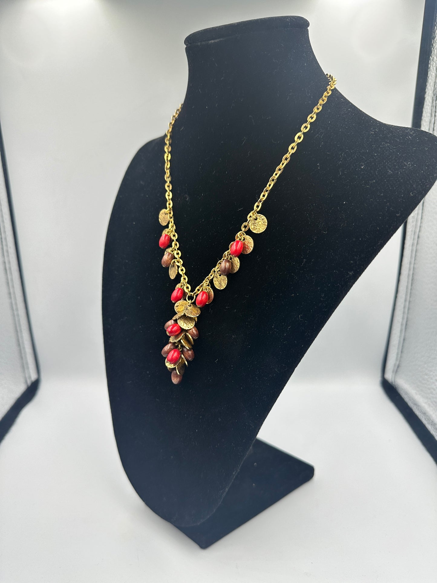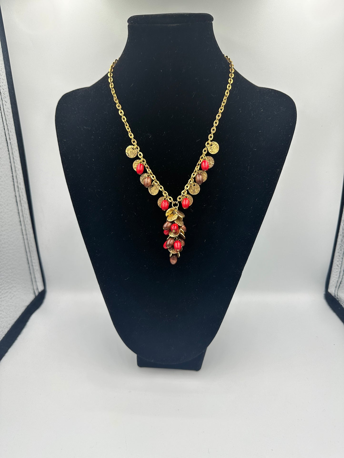 Collier-Kette mit Rot-Braun-Goldfarbenen Anhängern