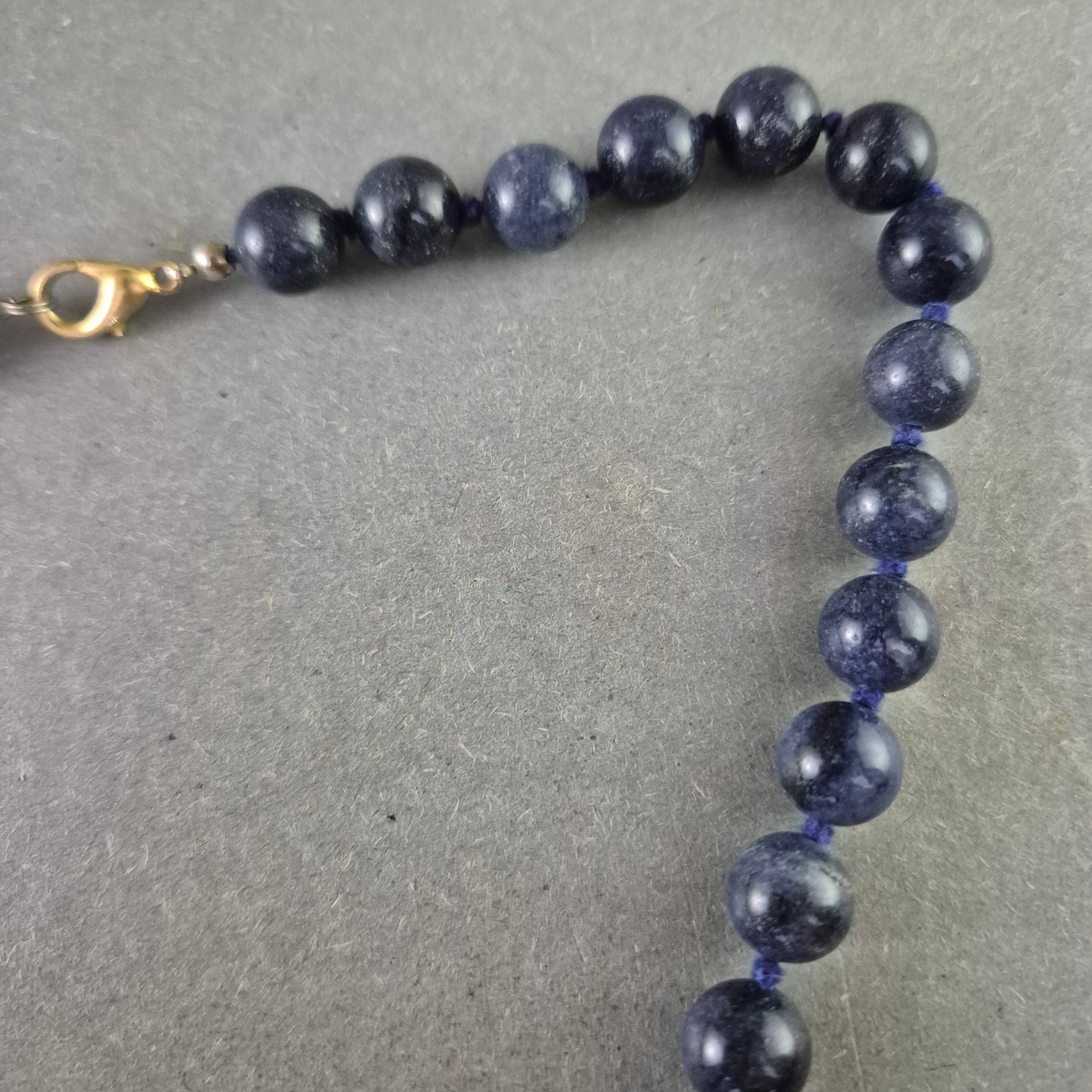 Material: Lapislazuli, Schmuckfaden, Metall (vergoldet)