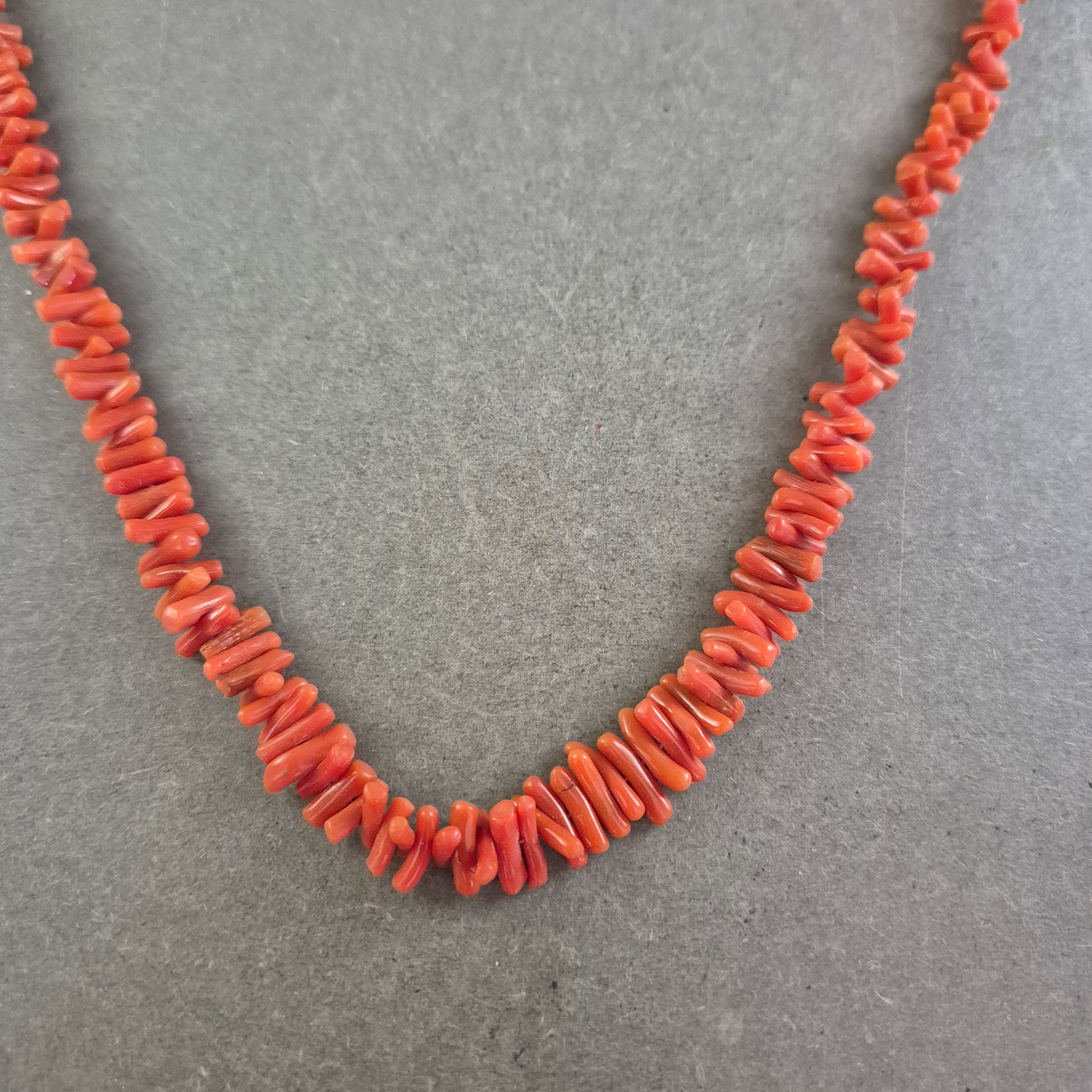 Diese Damen Kette besteht aus zahlreichen unregelmäßig geformten Korallenstücken in kräftigem Rot. Die intensive Farbe verleiht dem Schmuckstück eine besondere Ausstrahlung und macht es zu einem Blickfang bei jedem Outfit. Durch die natürliche Struktur der Koralle erhält jede Kette ihren einzigartigen Charakter. Ideal für Liebhaberinnen von Natursteinschmuck und klassischem Design.
