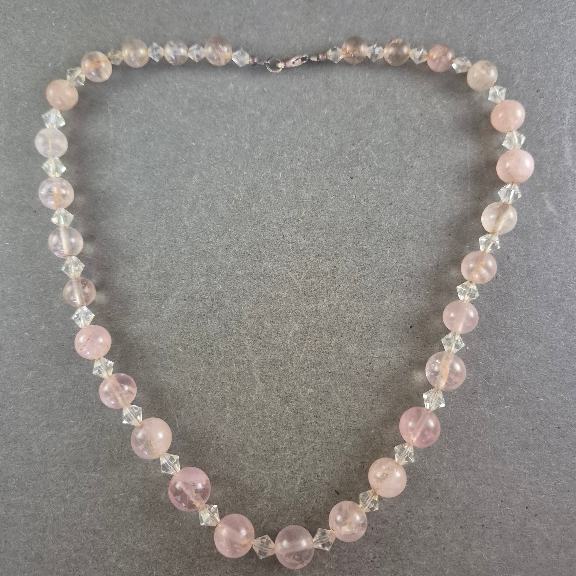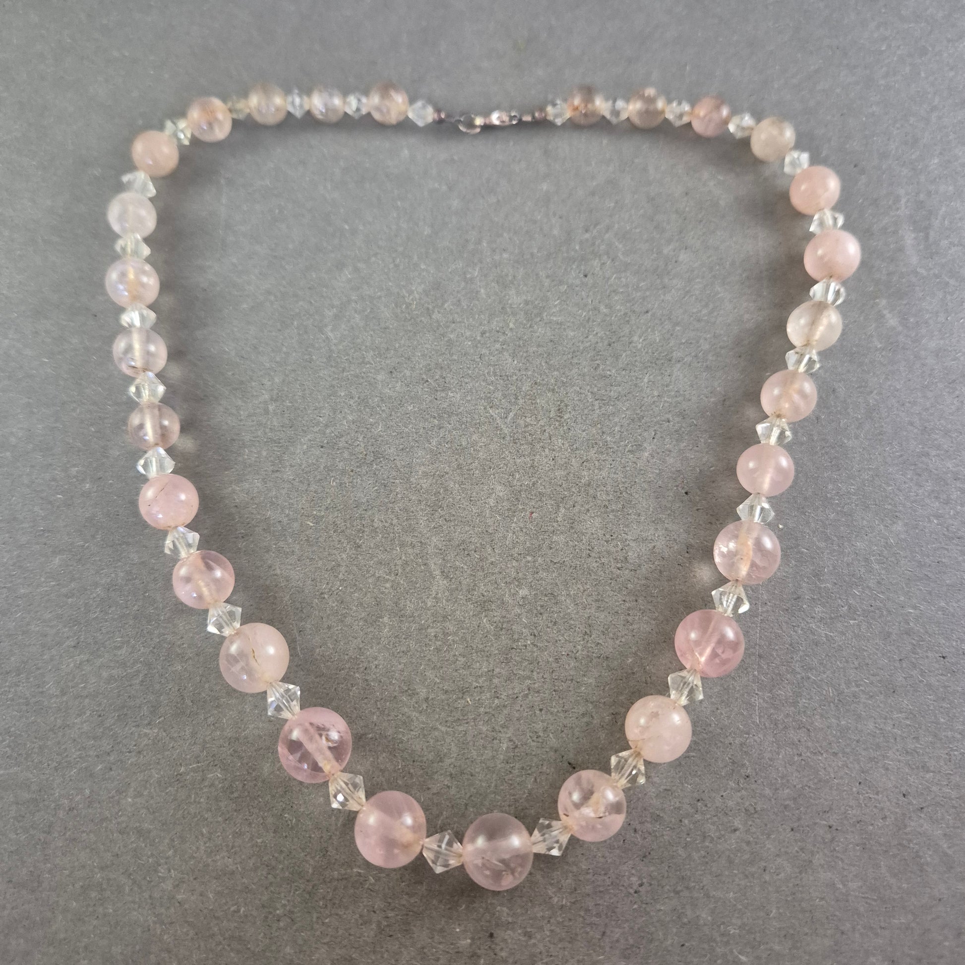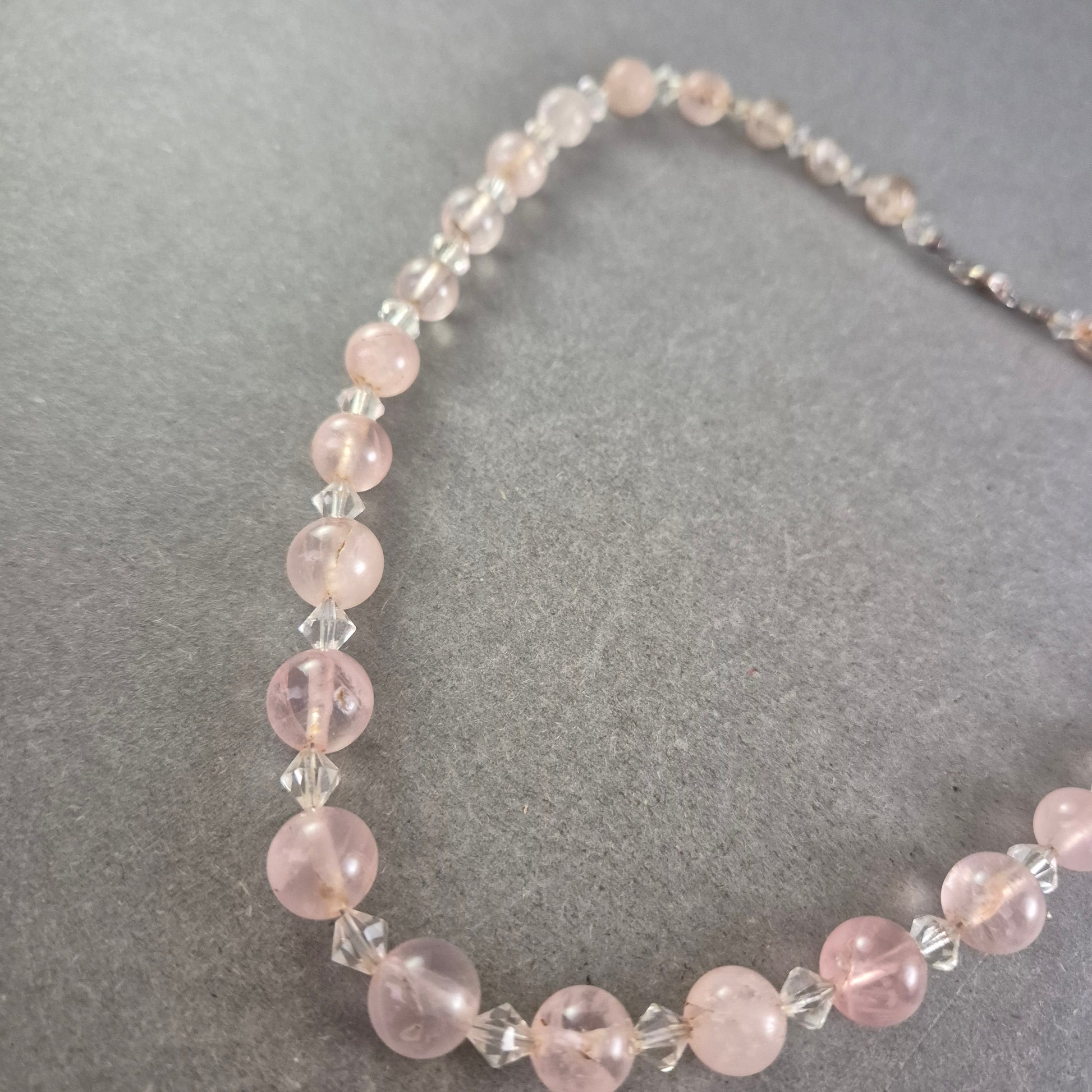 Damen Kette mit Rosenquarz und Kristallperlen – Zart und feminin