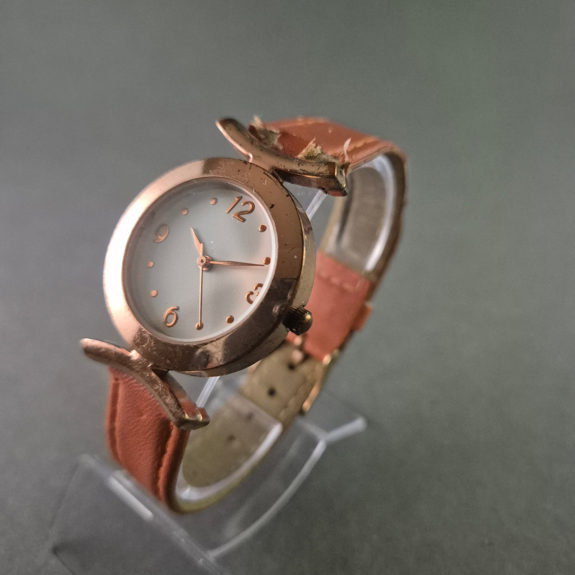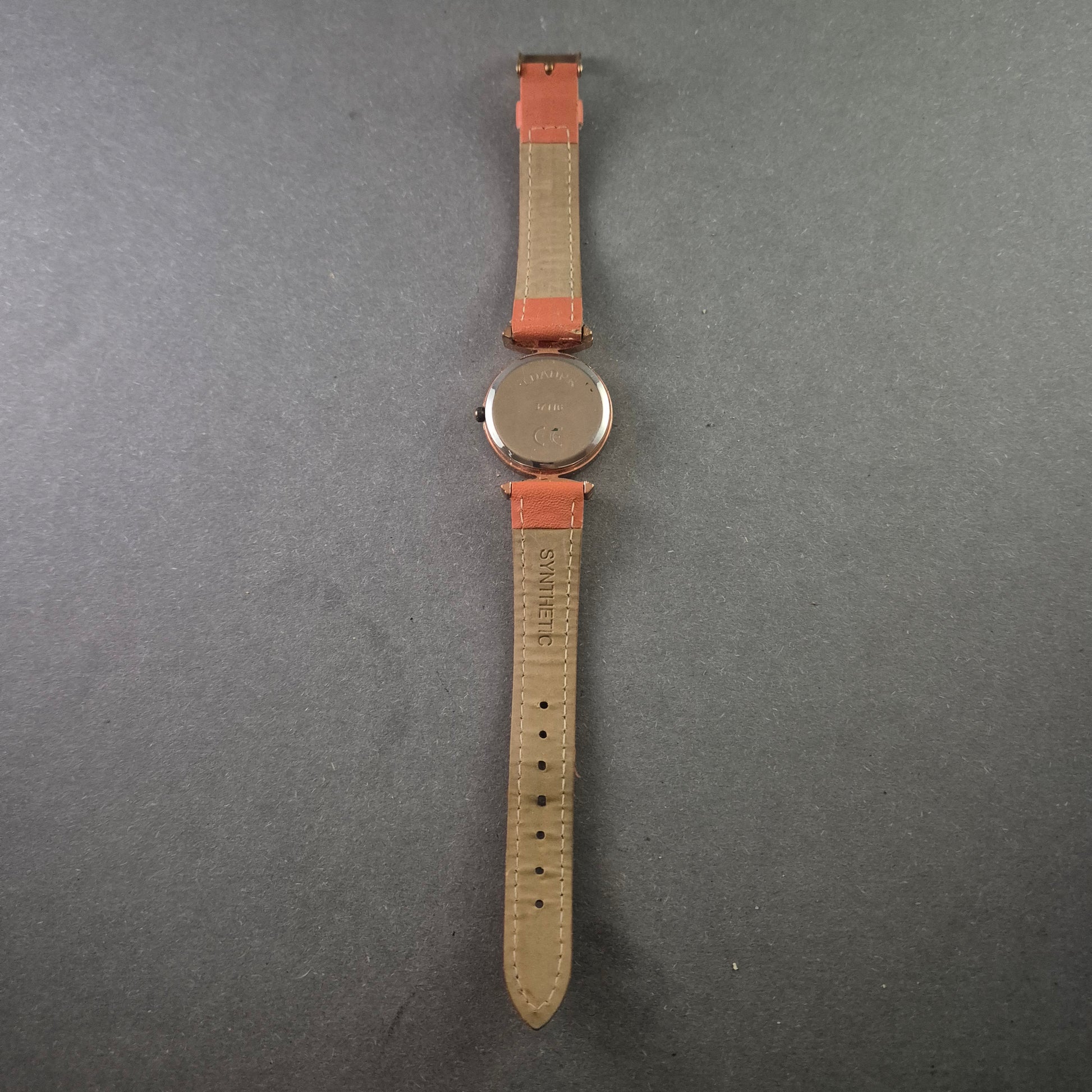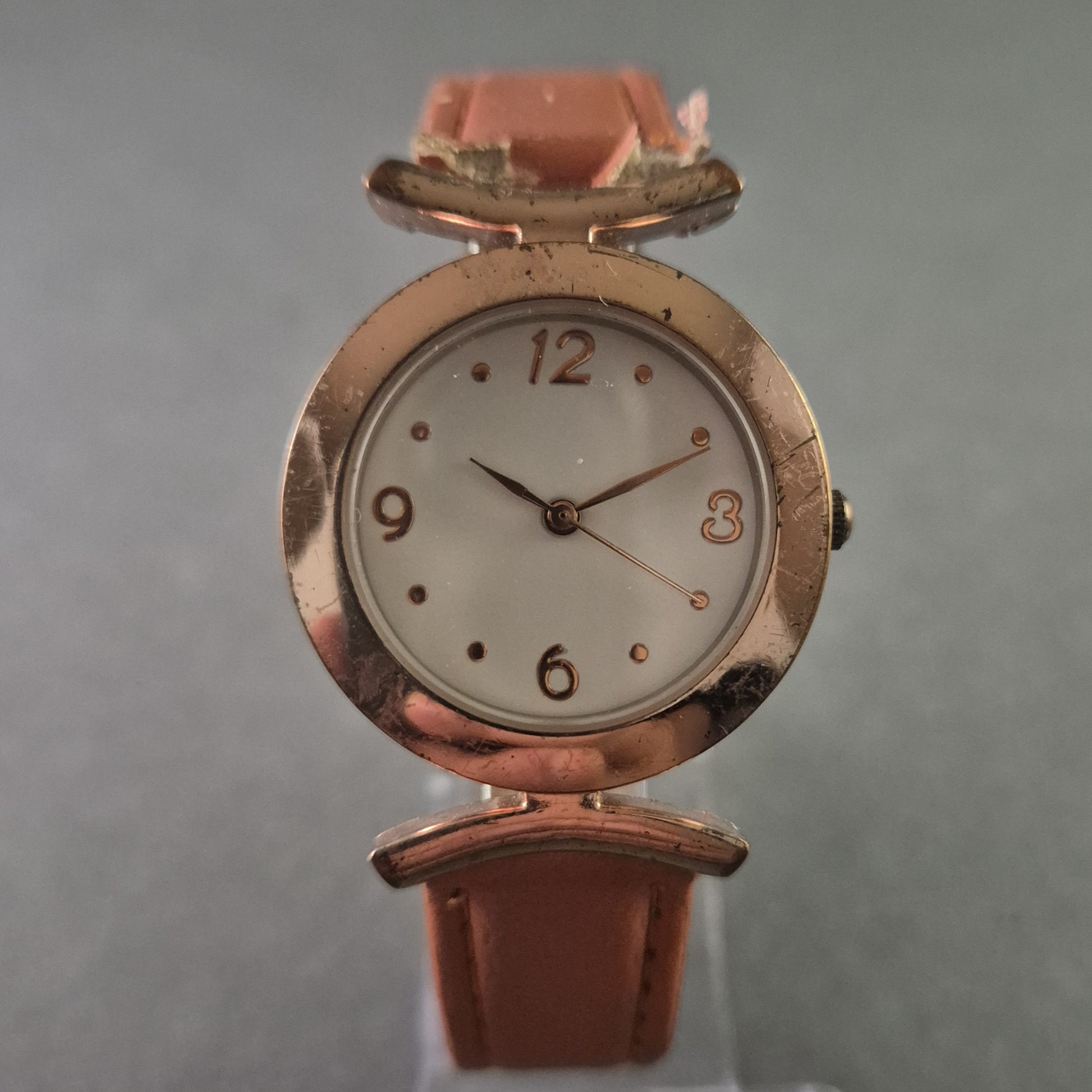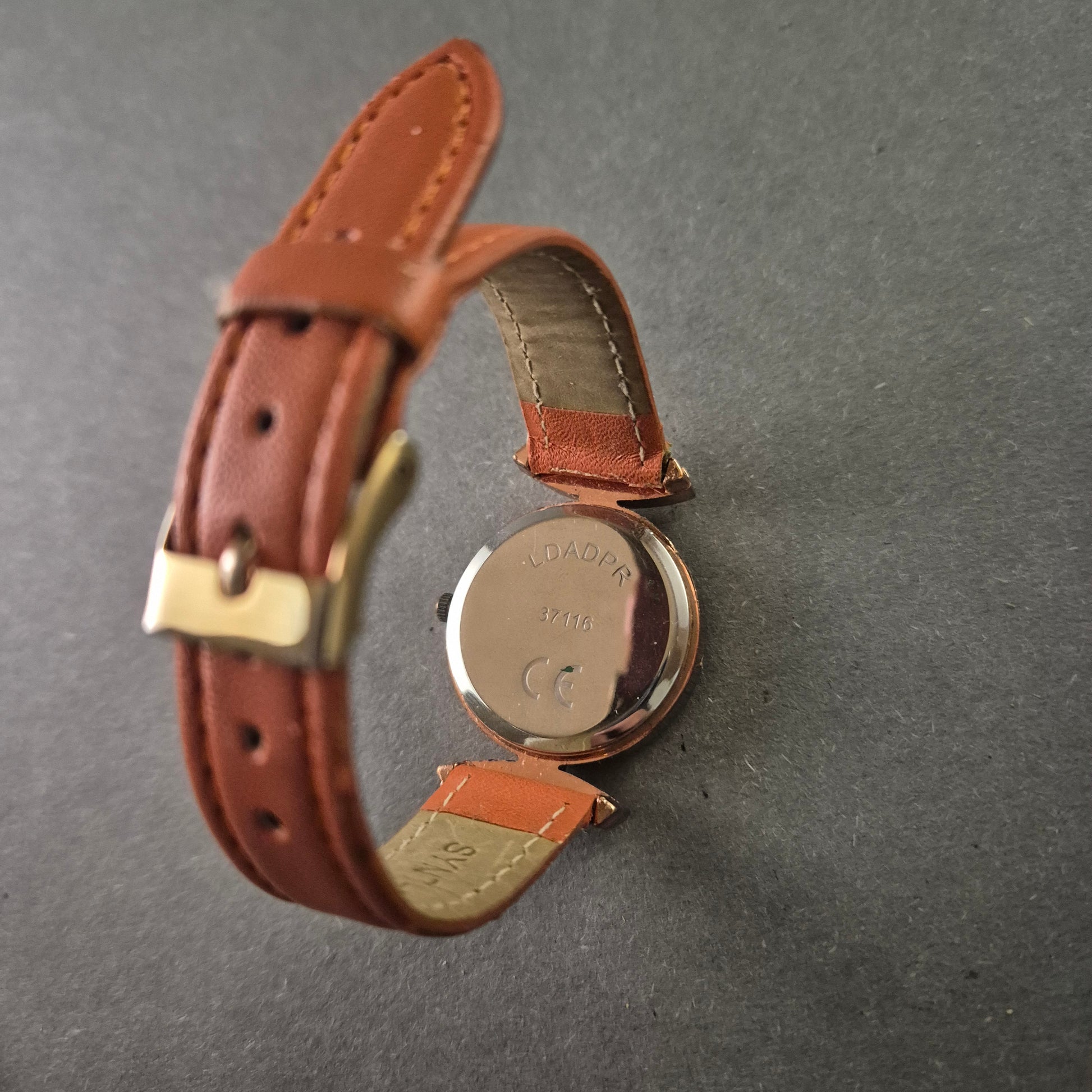 • Material: Metallgehäuse in Roségold, Lederarmband
