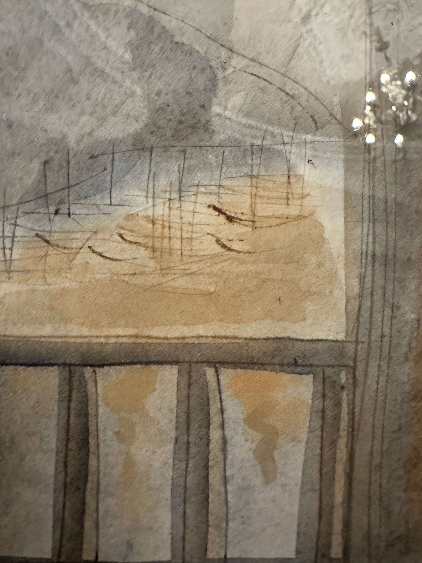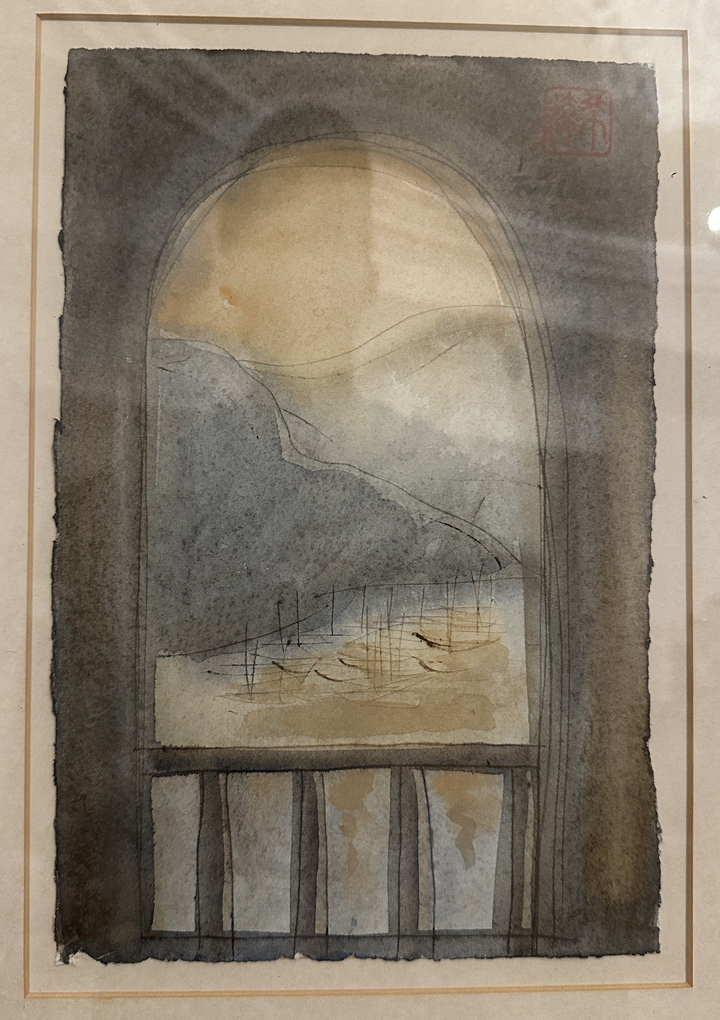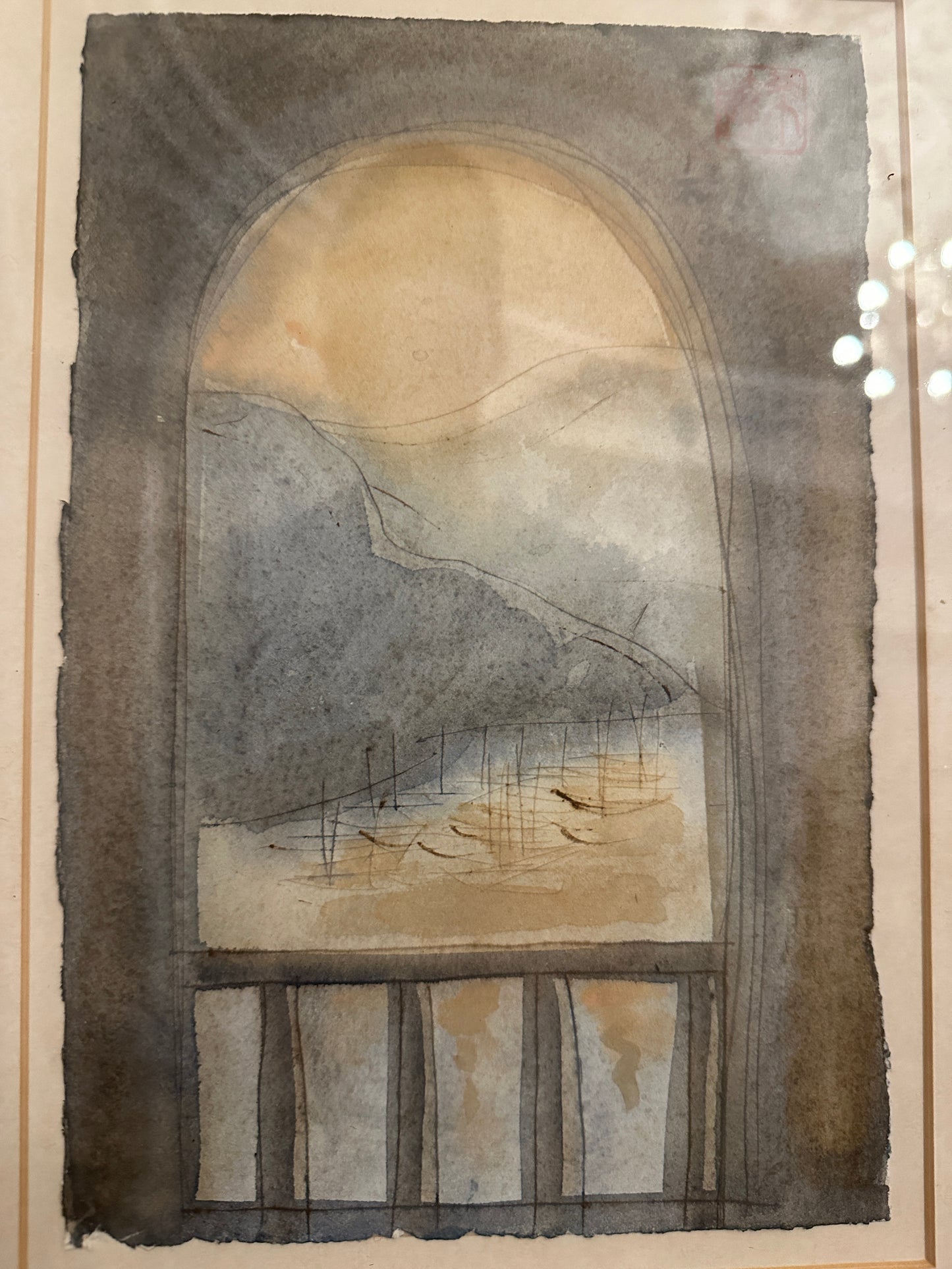 Beschreibung: Tauchen Sie ein in die sommerliche Atmosphäre mit dieser dekorativen Grafik, die einen malerischen Blick aus einem Apartment aufs Meer und die Küste einfängt. Das Kunstwerk, präsentiert hinter Glas, befindet sich in einem sehr guten Zustand, wie auf den beigefügten Fotos dokumentiert.