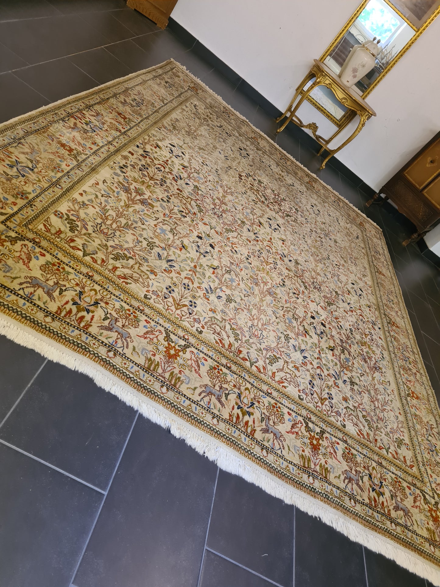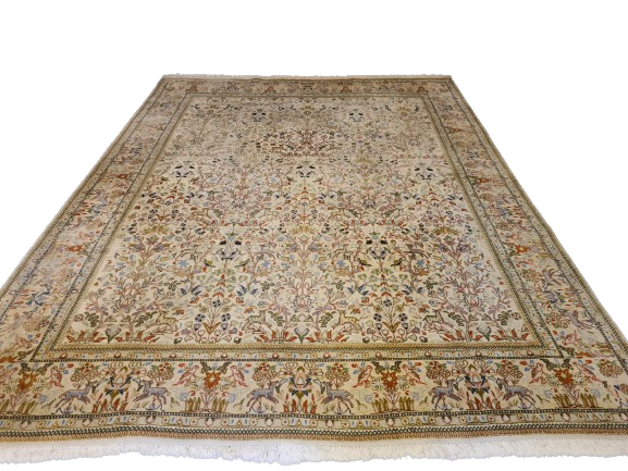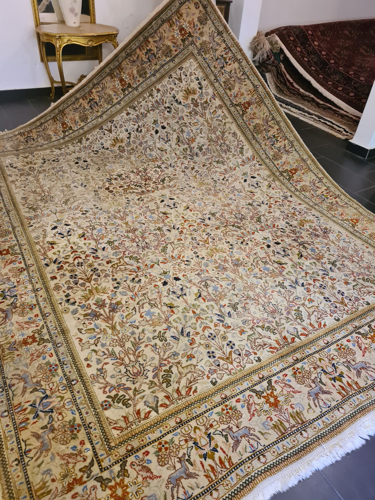 Dieser Teppich ist nicht nur ein Kunstwerk, sondern auch ein Erbstück mit einer Geschichte, das durch seine Schönheit und Qualität beeindruckt. Ideal für Liebhaber exquisiter Teppiche und Sammler seltener Kunsthandwerke. Bringen Sie mit diesem prachtvollen Stück orientalische Eleganz und kulturelle Tiefe in Ihr Zuhause.
