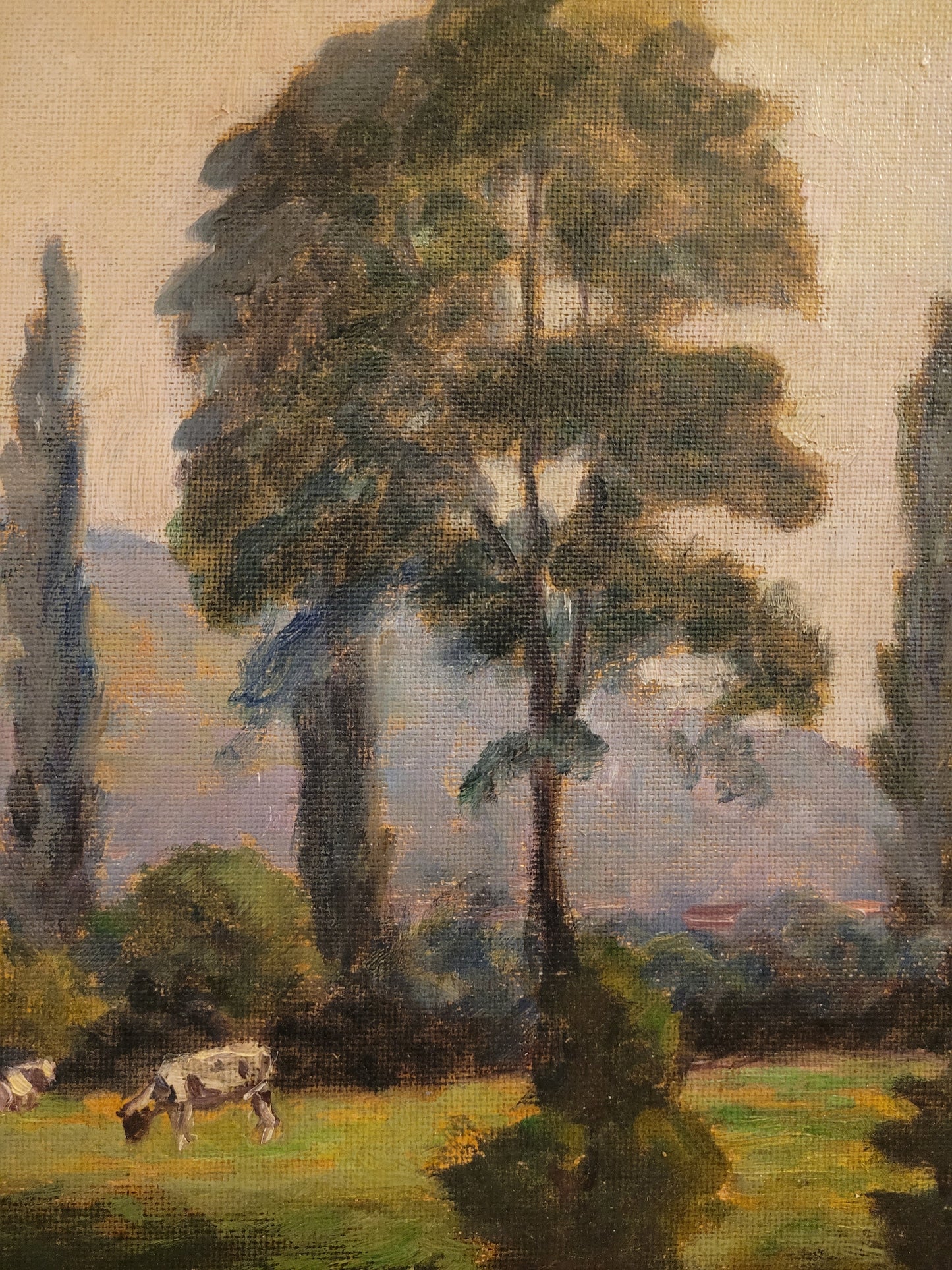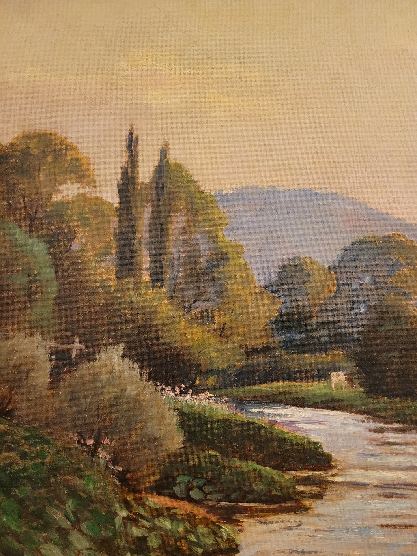 • Motiv: Weite Landschaft mit Fluss, Bäumen und Kühen