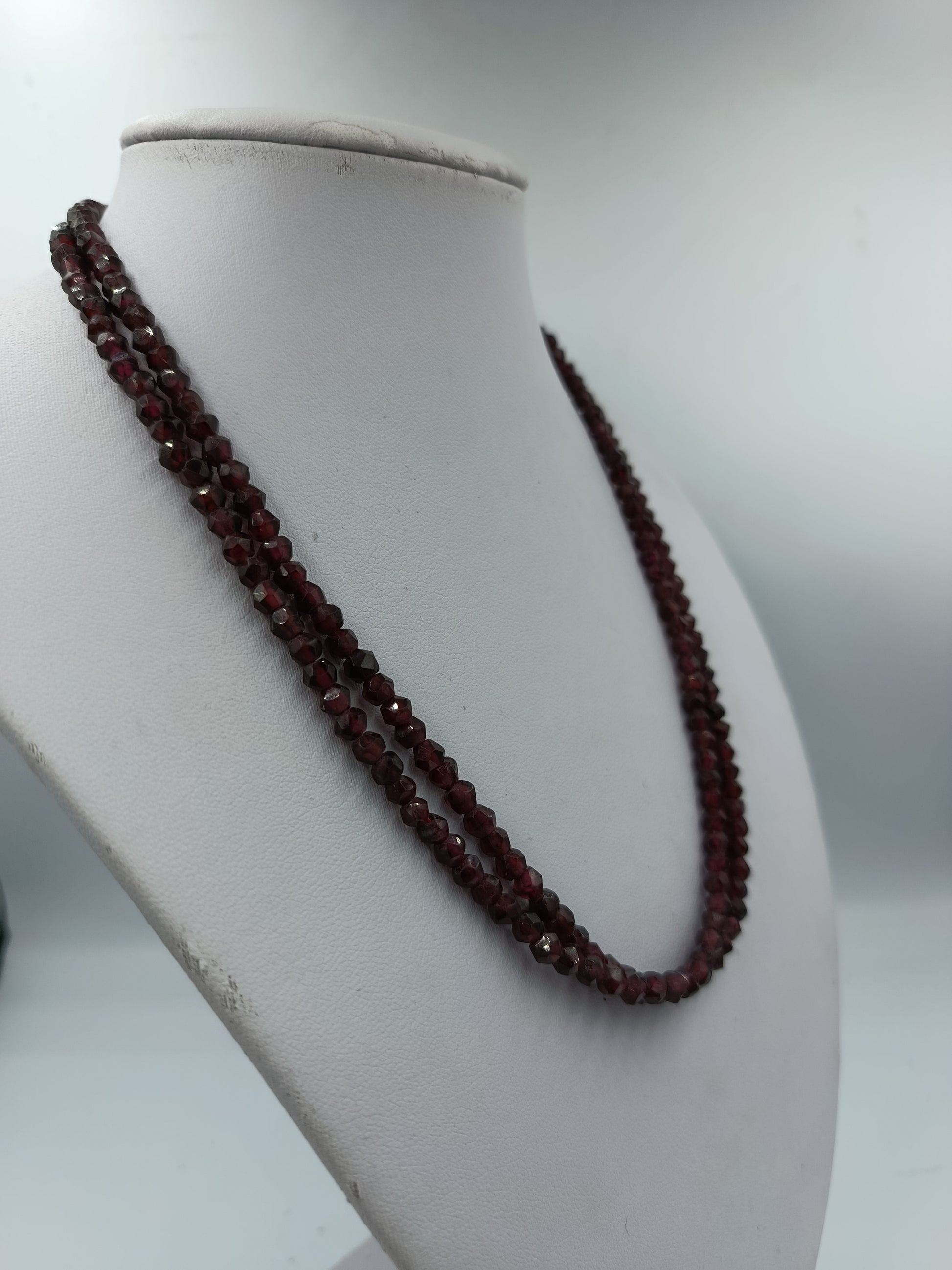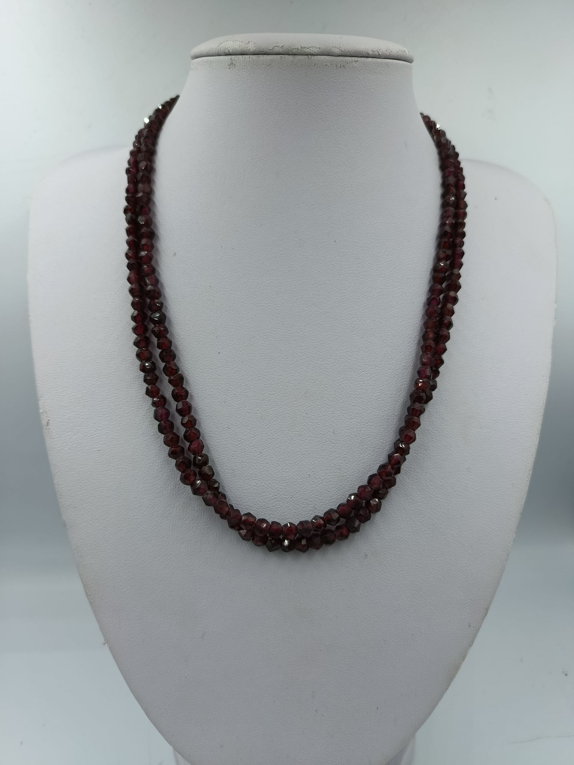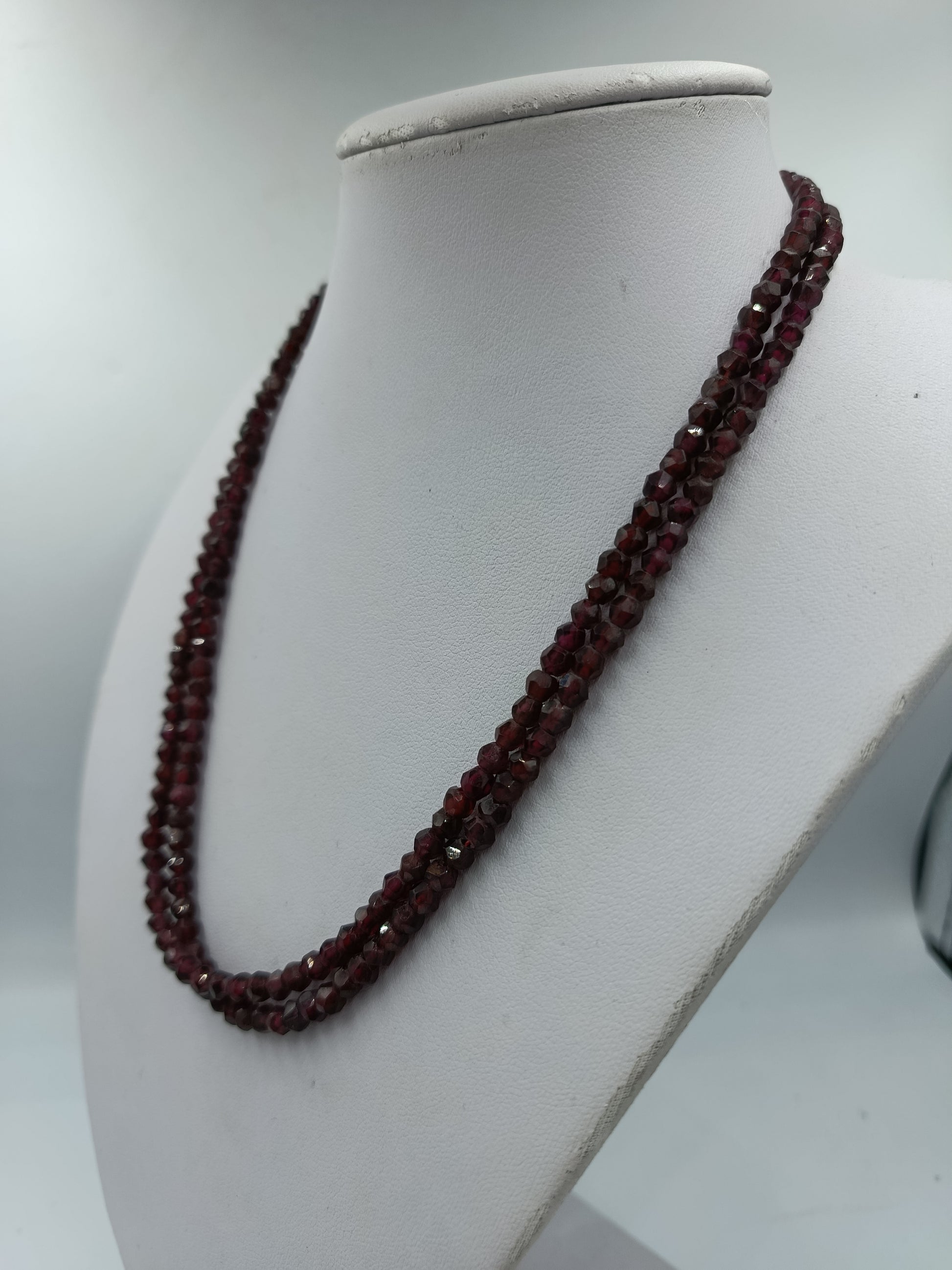 • Doppelt gefädelte Kette mit facettierten Granatperlen