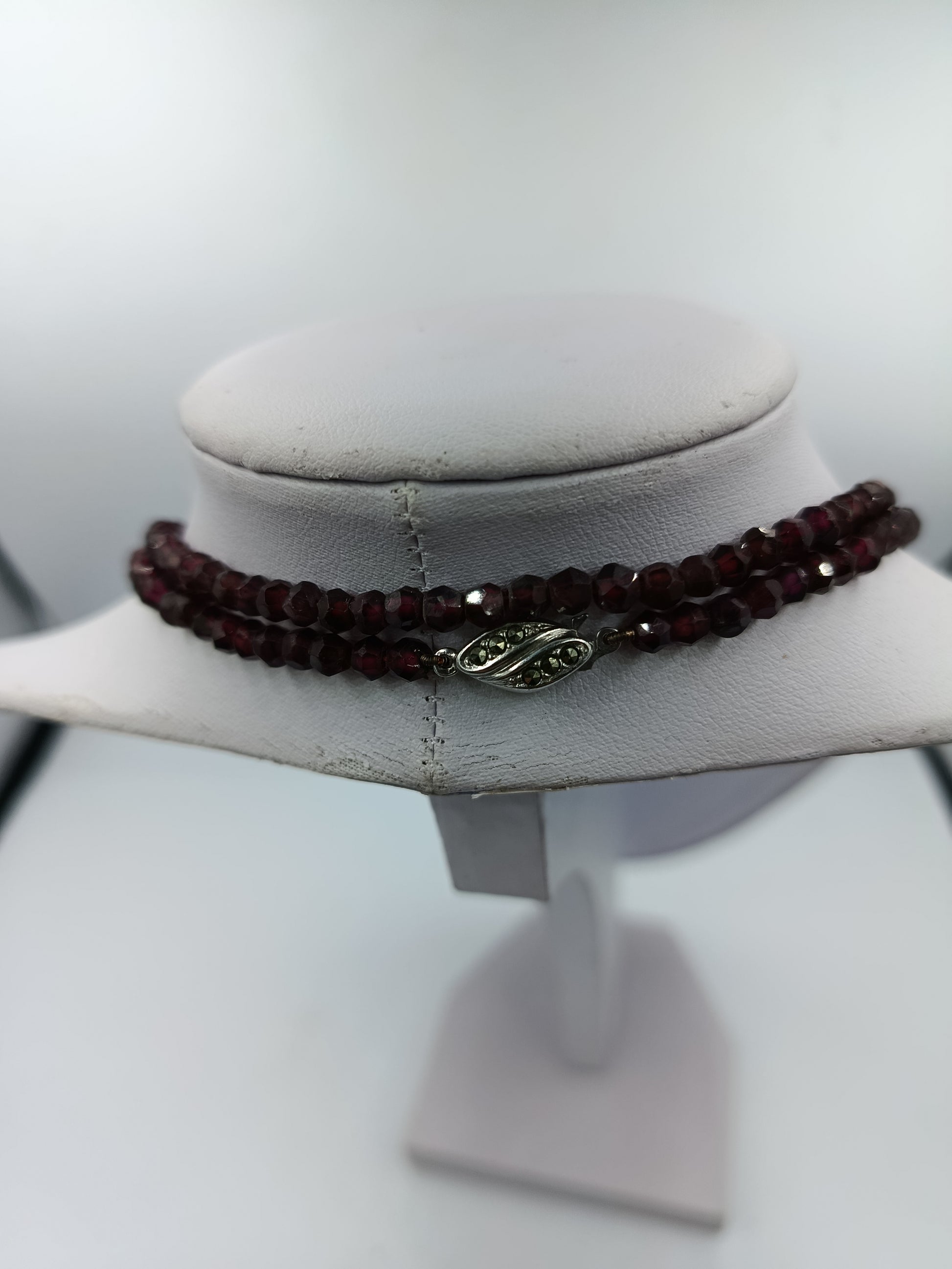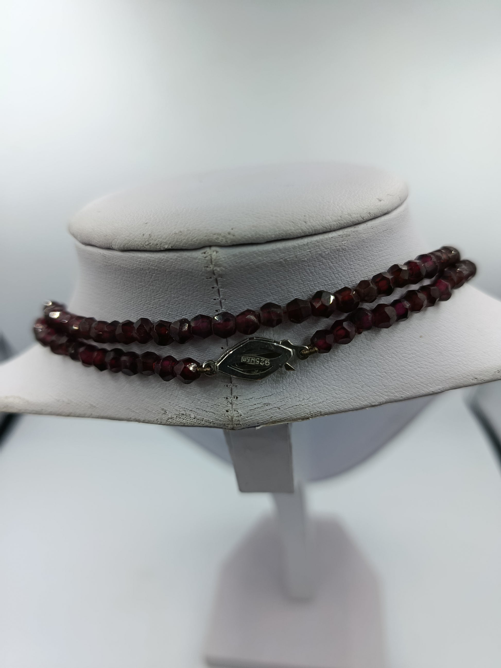 Doppelreihige Granatkette mit 925 Silberverschluss