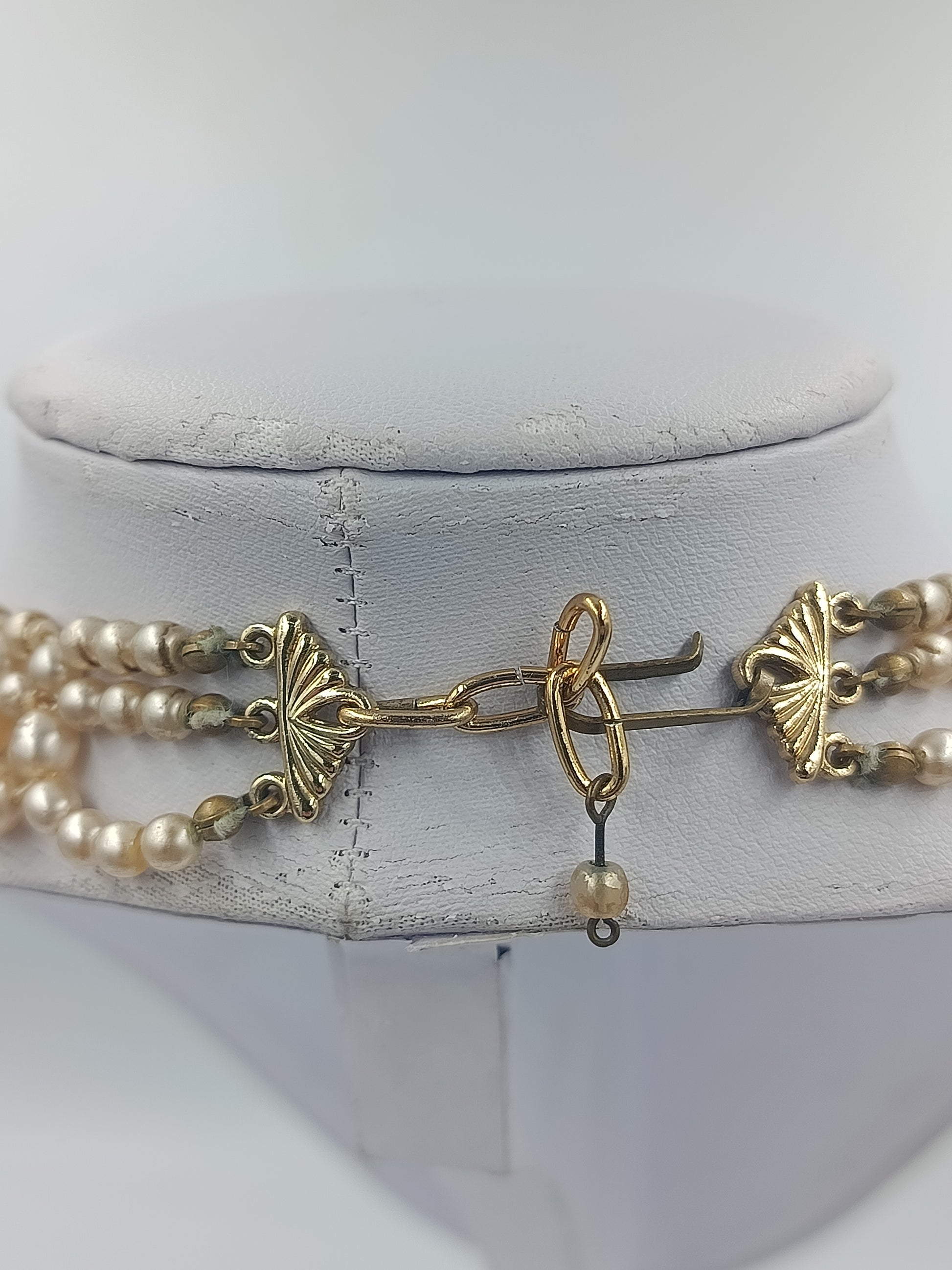 Dreireihige Perlenkette in Cremefarben mit Goldverschluss