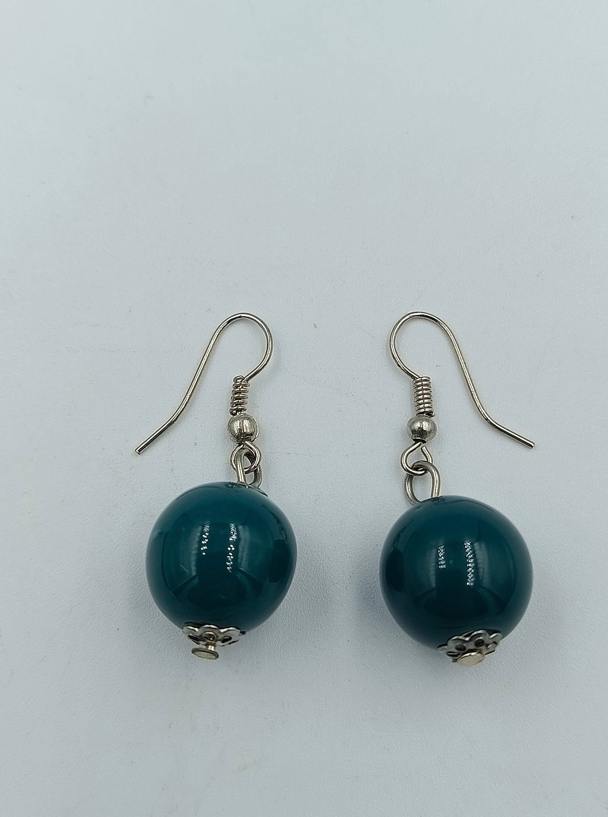 Elegante Ohrringe mit runden dunkelblauen Perlen, die durch ihren tiefen Glanz und die dezente Metallfassung besonders edel wirken. Ein stilvolles Accessoire für jeden Anlass – sowohl für elegante Outfits als auch für den Alltag geeignet.