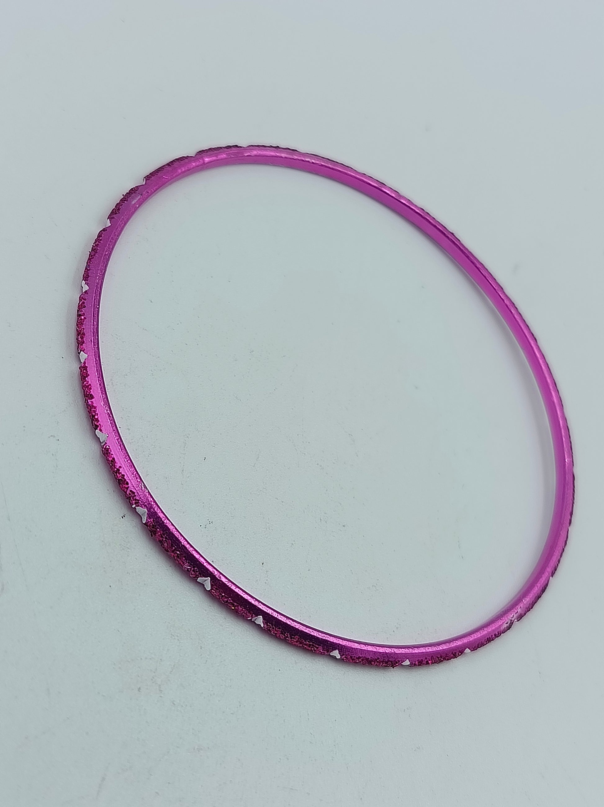 Feiner Metallarmreif in glänzendem Pink mit leichtem Glitzereffekt entlang der Kante. Das filigrane Design macht ihn ideal zum Kombinieren mit anderen Armreifen oder als dezenter Farbakzent für jeden Look.