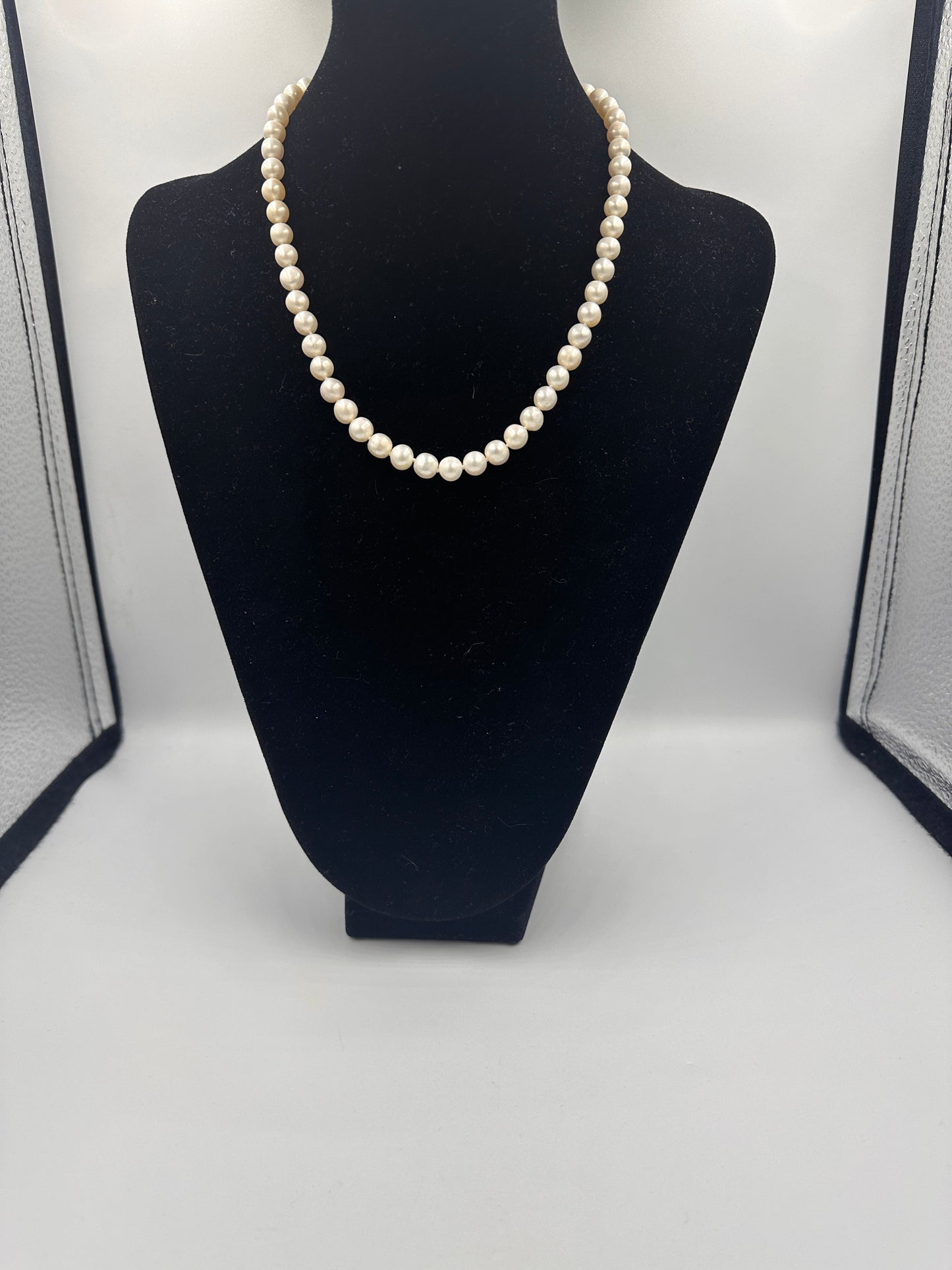 Diese Perlenkette verkörpert raffinierte Schönheit und ist perfekt, um jedem Outfit einen Hauch von Luxus zu verleihen. Gönn dir selbst dieses zeitlose Accessoire oder überrasche jemand Besonderen mit einem Geschenk, das für Eleganz und Klasse steht.