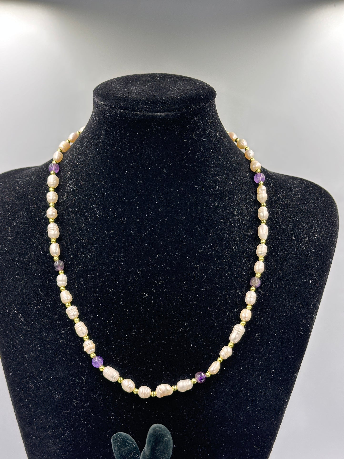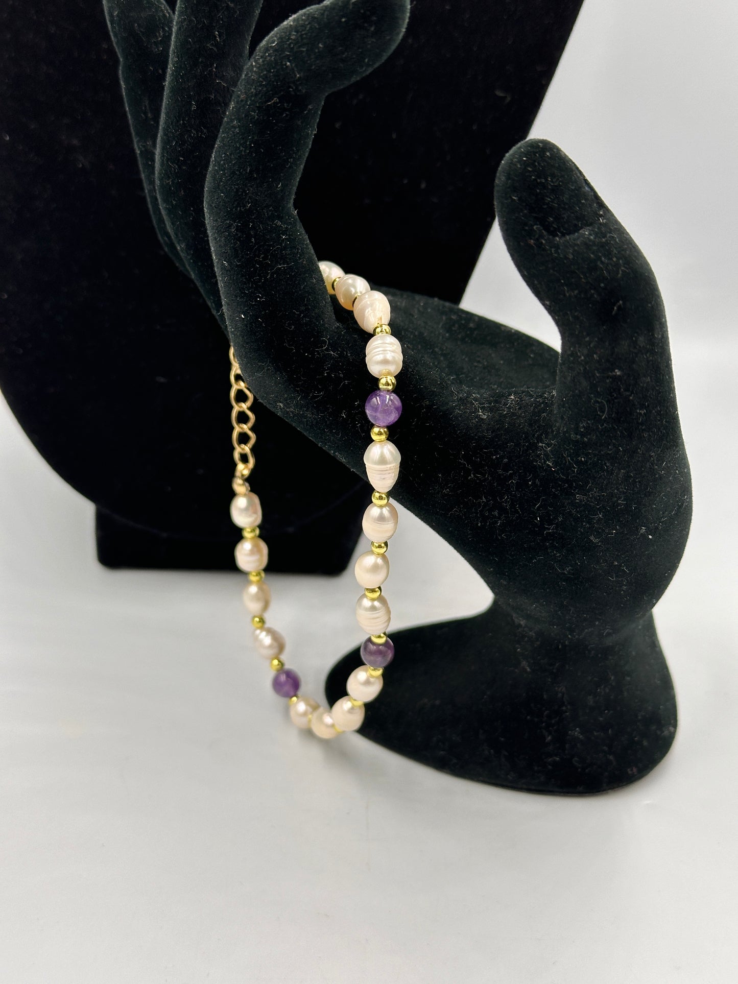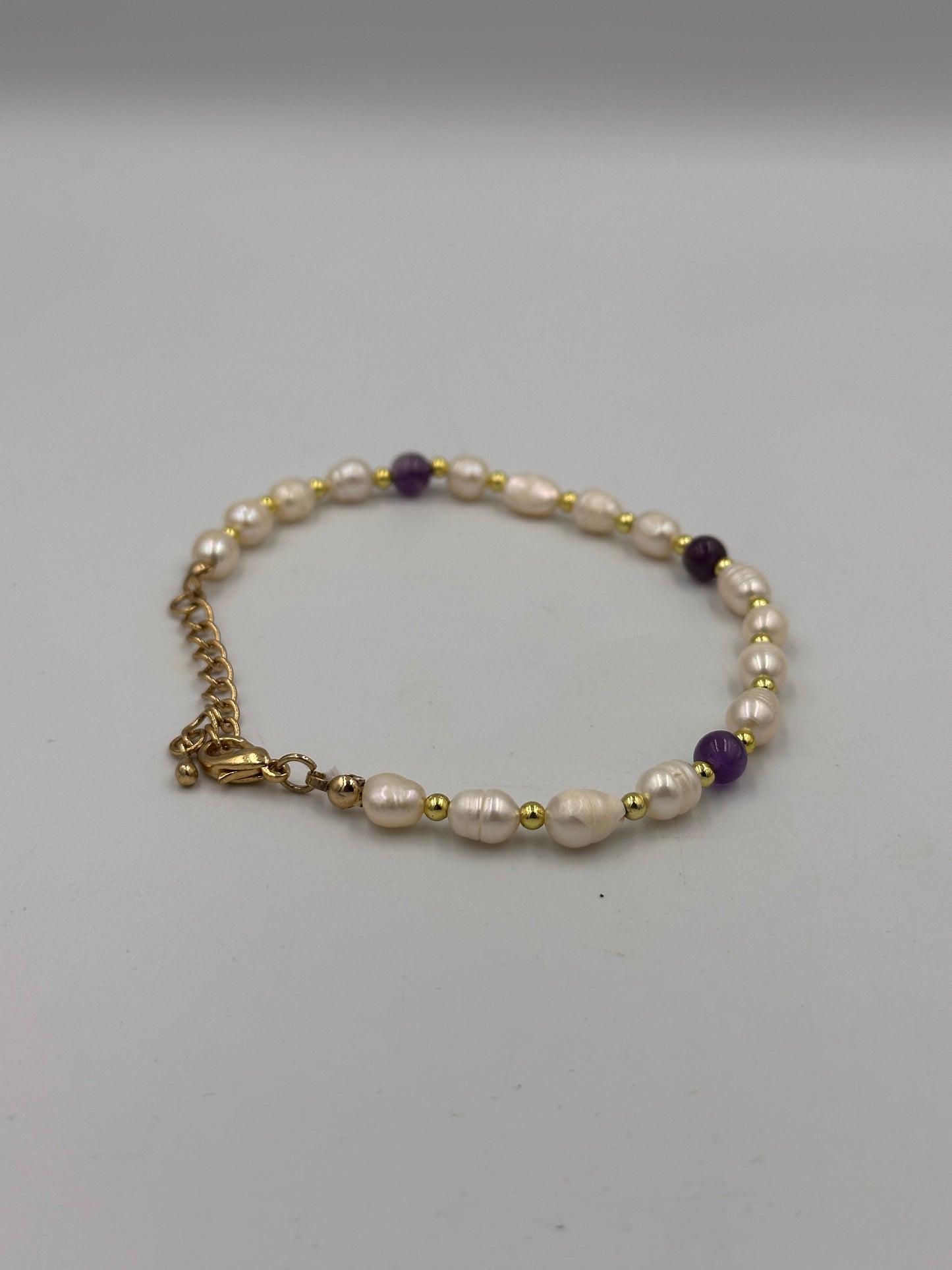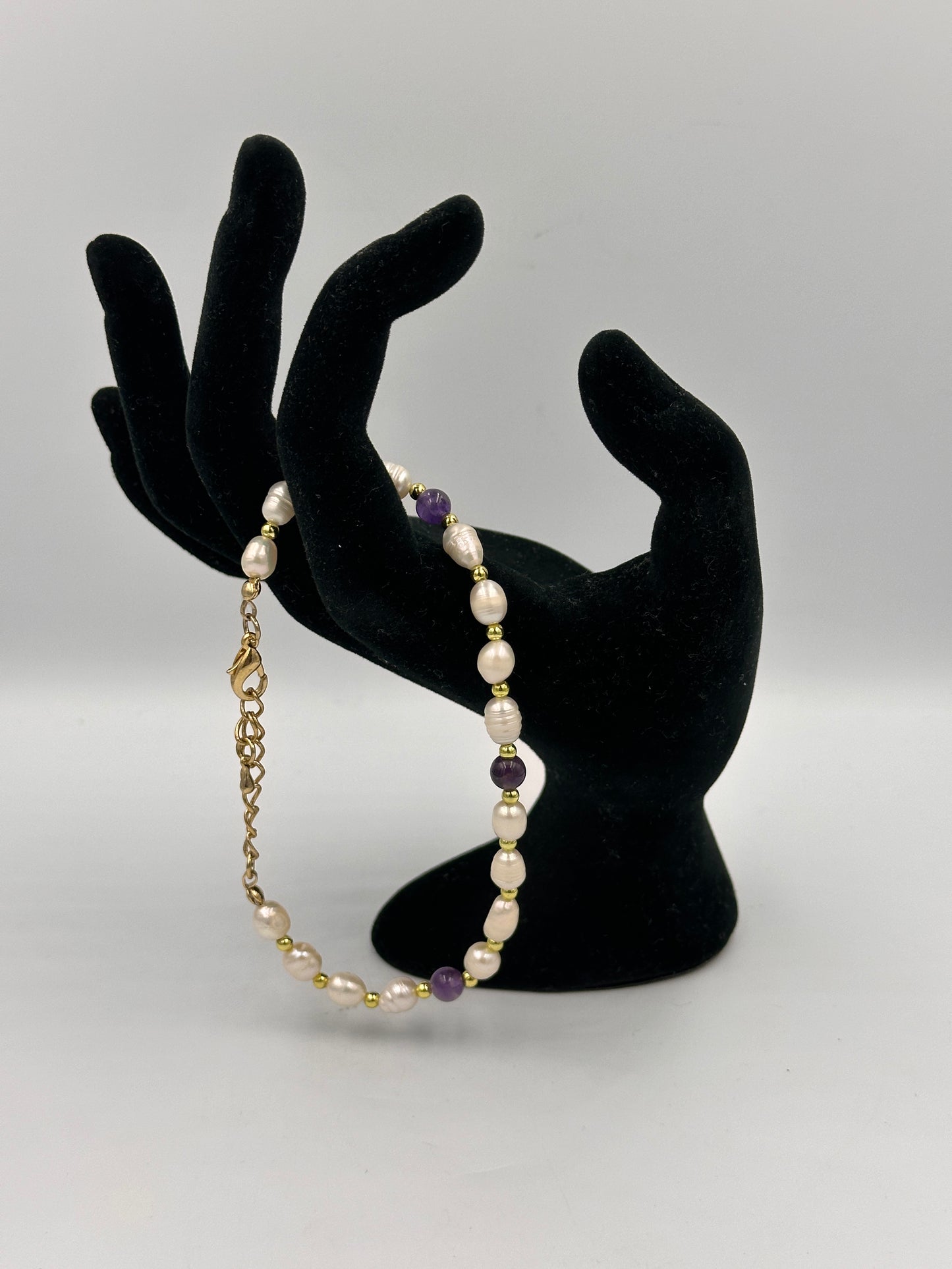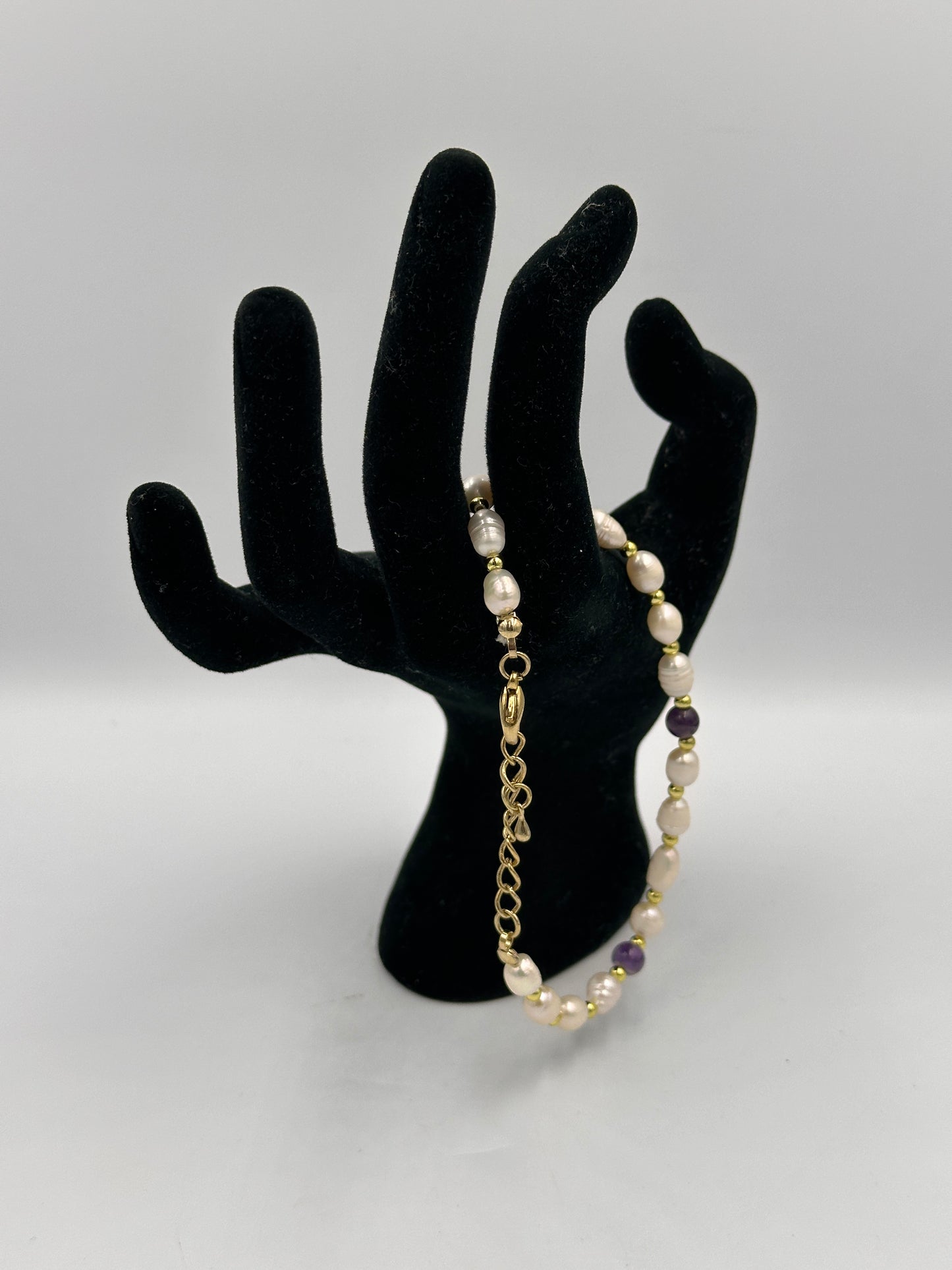 Perlenkette mit Violetten Kugeln und Goldfarbenen Akzenten, Armband