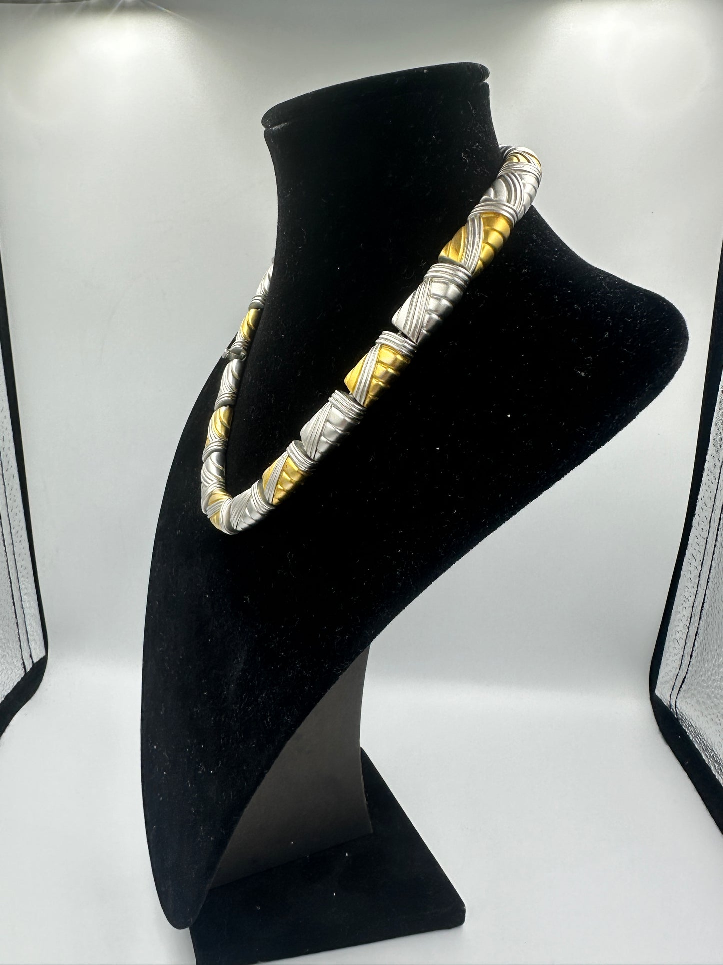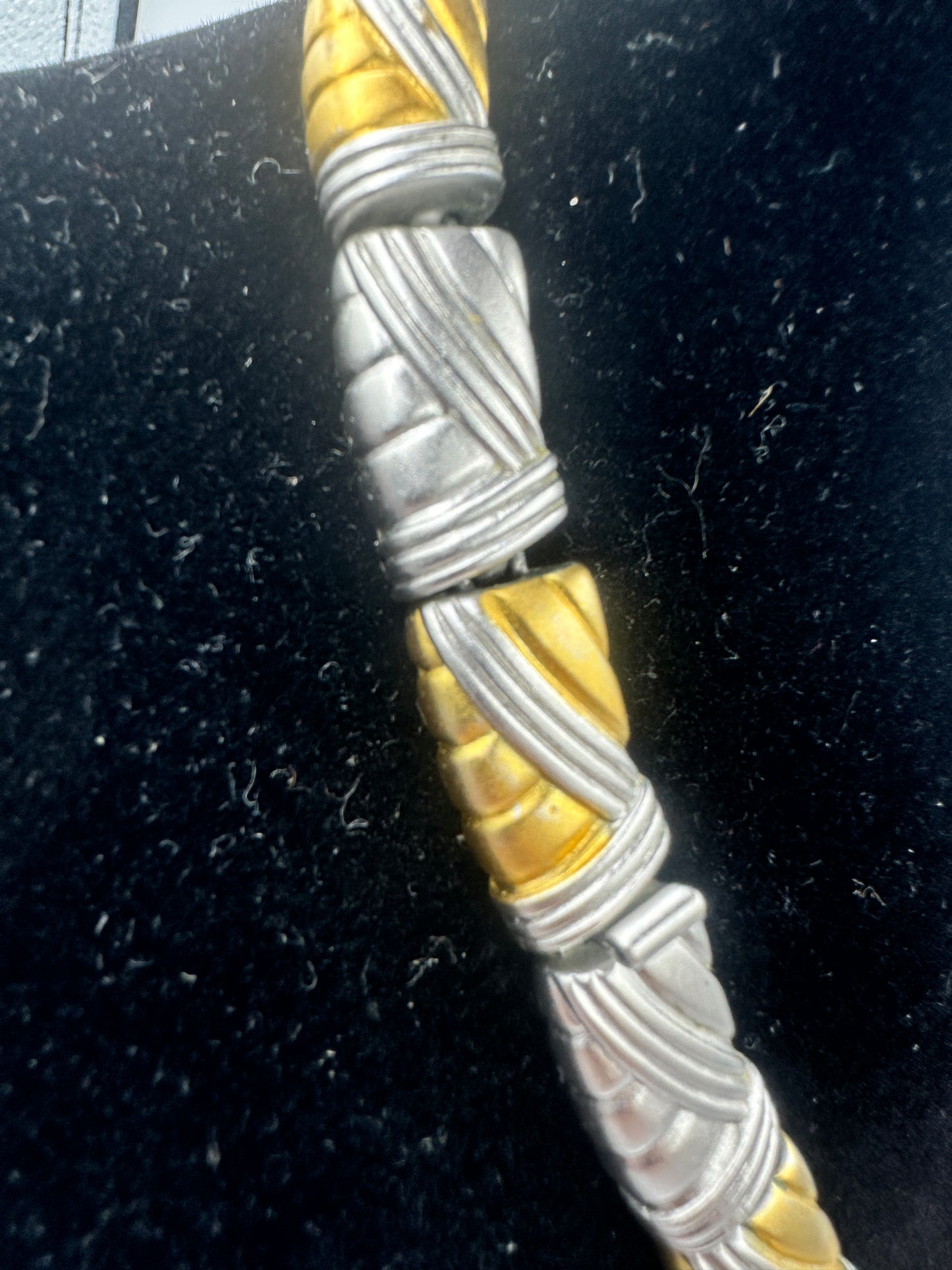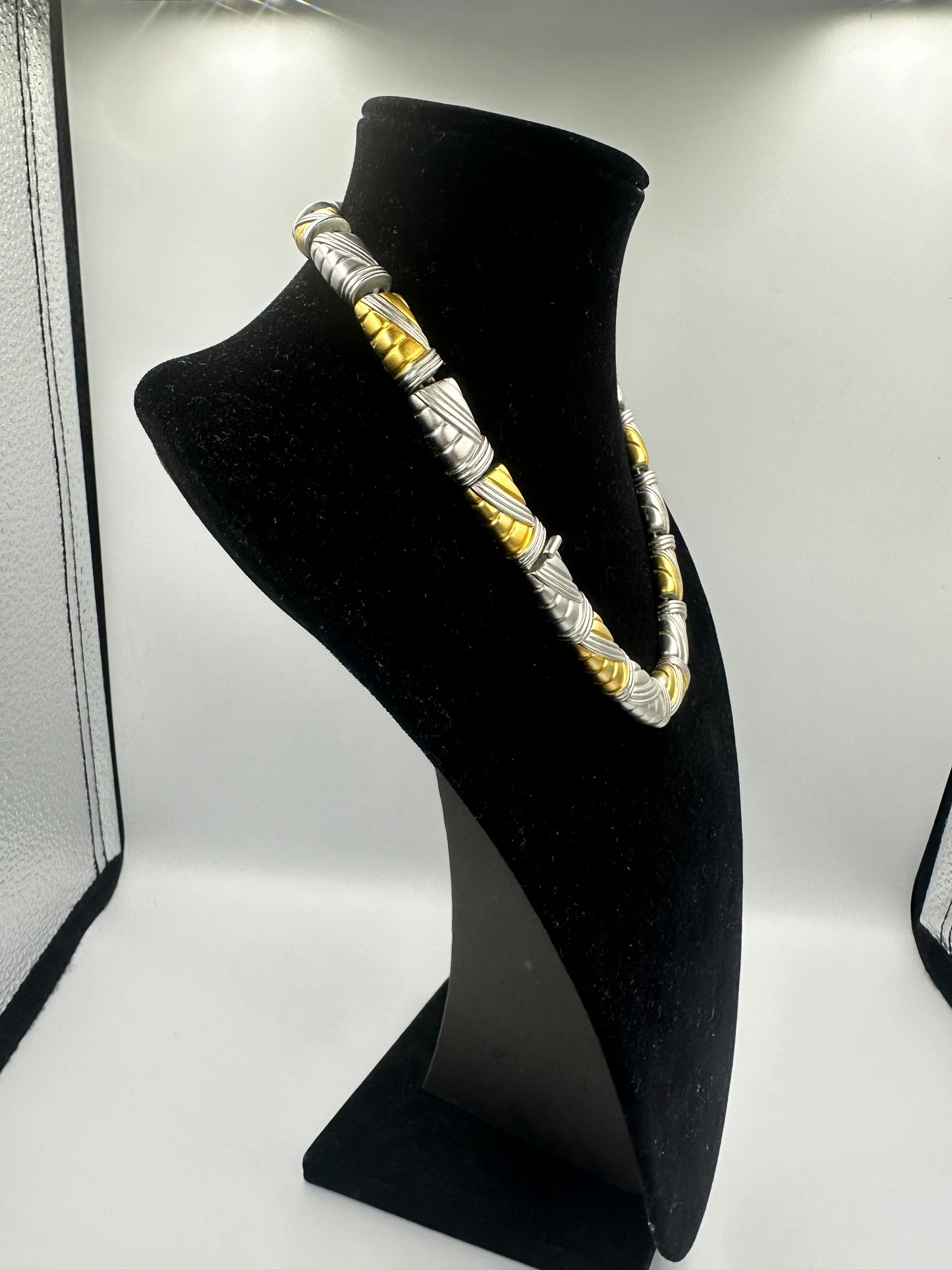 Die Kette zeigt trotz ihres gebrauchten Zustandes eine ausgezeichnete Qualität und minimale Gebrauchsspuren, was ihre Langlebigkeit und die hochwertige Verarbeitung unterstreicht. Die goldfarbenen Details verleihen dem ansonsten schlichten Design einen Hauch von Luxus und machen es zu einem vielseitigen Accessoire für jede Gelegenheit.