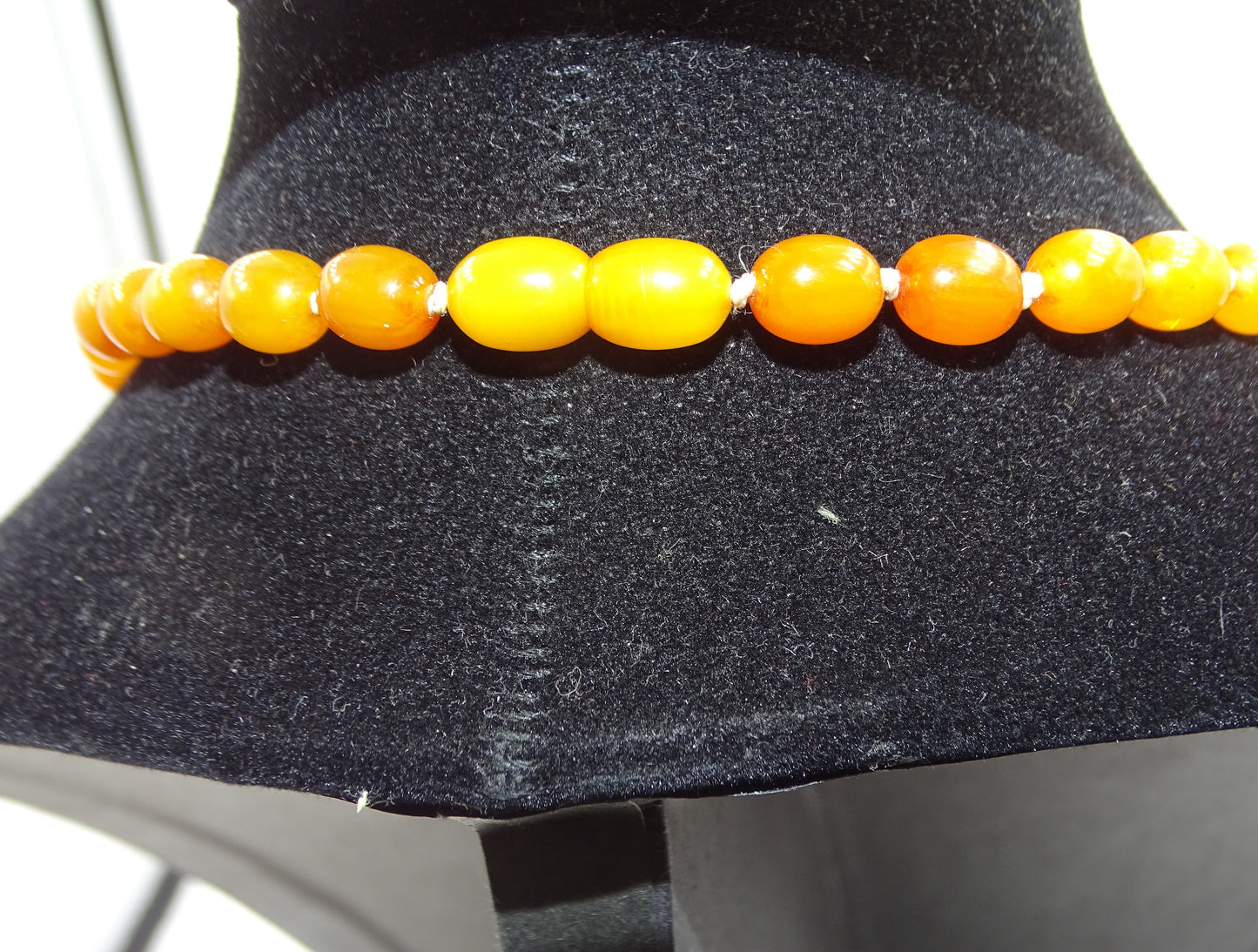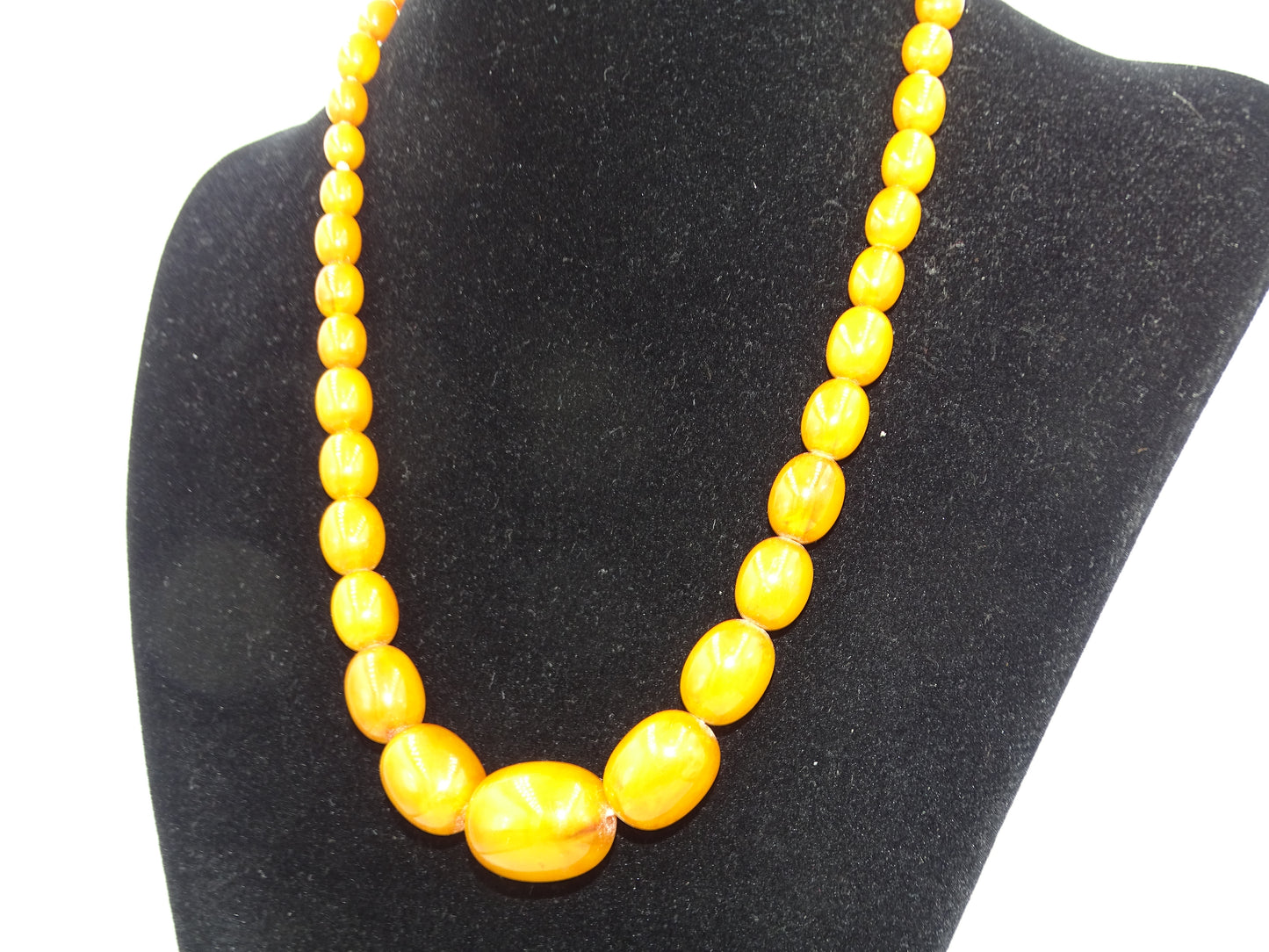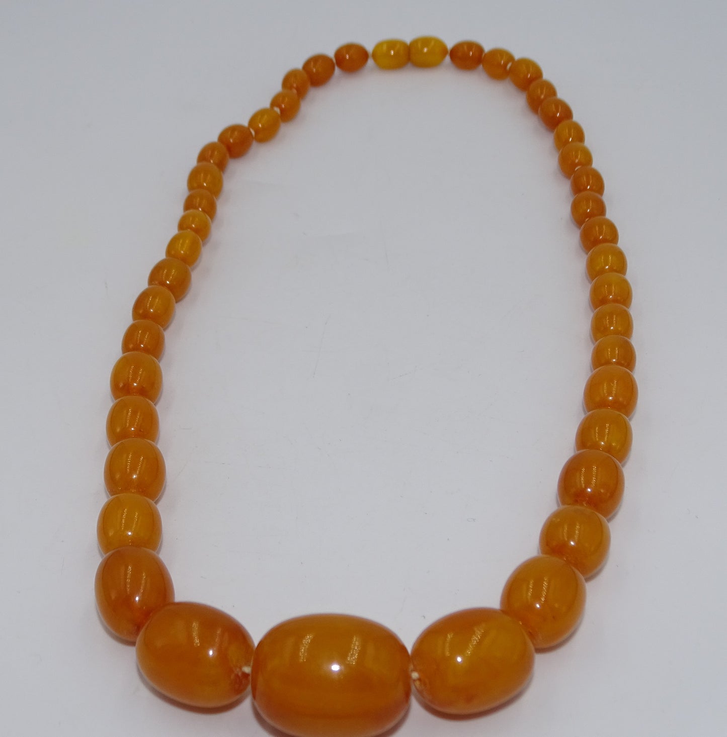Beschreibung: Tauchen Sie ein in die zeitlose Eleganz mit dieser exquisiten Bakelit-Kette in Olivenform, kunstvoll gestaltet aus edlem Bernsteinimitat. Jede Perle strahlt mit ihrem warmen Farbton und ihrer natürlichen Maserung eine einzigartige Schönheit aus.
