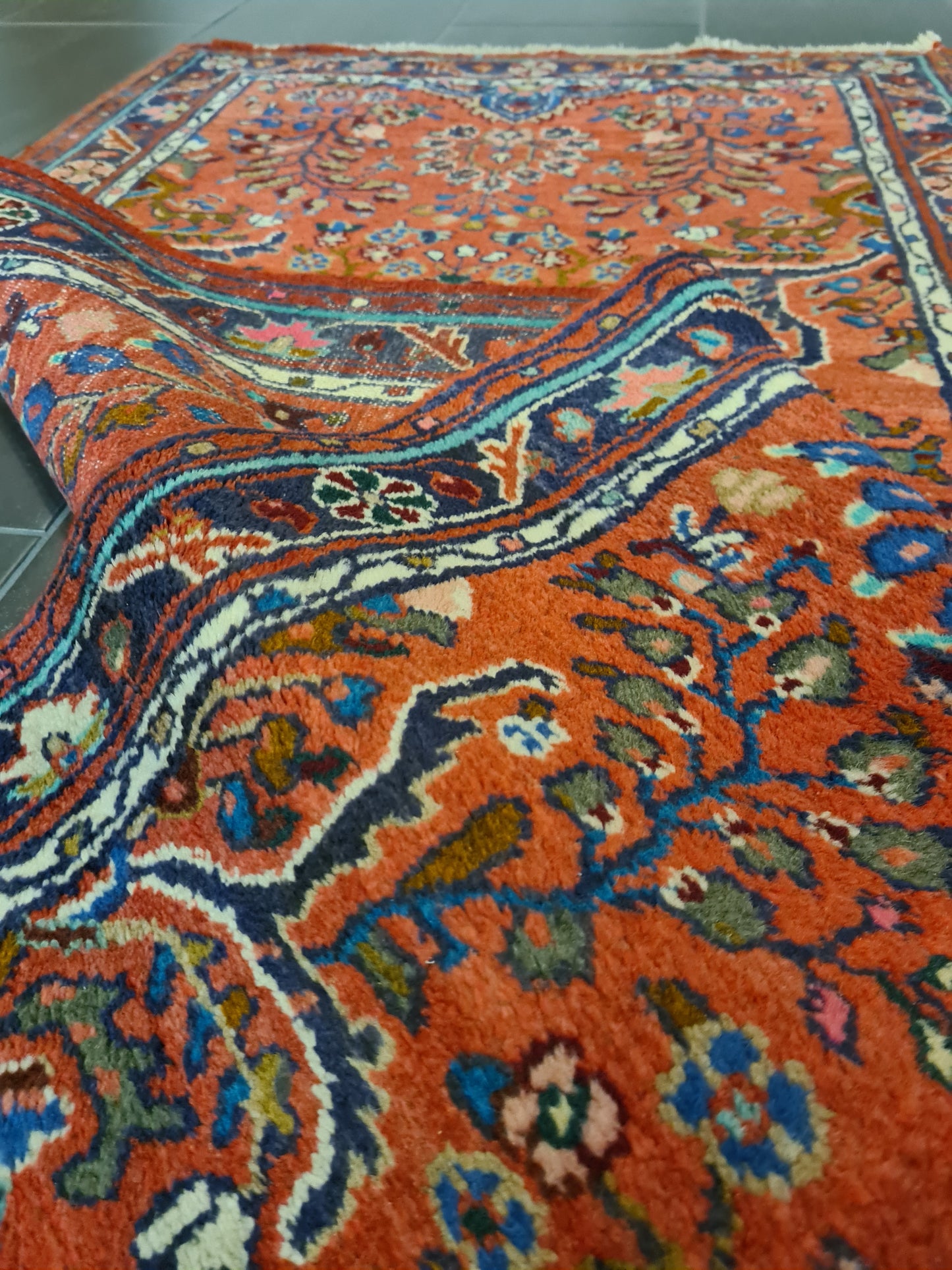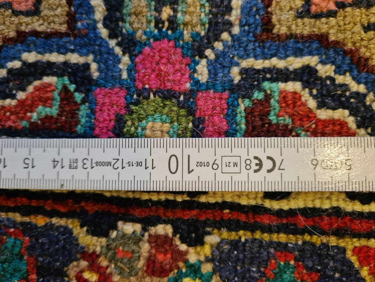 Beschreibung: Dieser edle Sarough Hamedan Teppich verkörpert das Erbe der persischen Teppichkunst in seiner schönsten Form. Mit seinem floralen Muster und den reichen, mehrfarbigen Tönen bringt er einen Hauch von Luxus und Kultur in Ihr Zuhause. Die sorgfältige Handarbeit und die Verwendung hochwertigster Materialien machen ihn zu einem langlebigen Begleiter, der mit der Zeit nur noch schöner wird.
