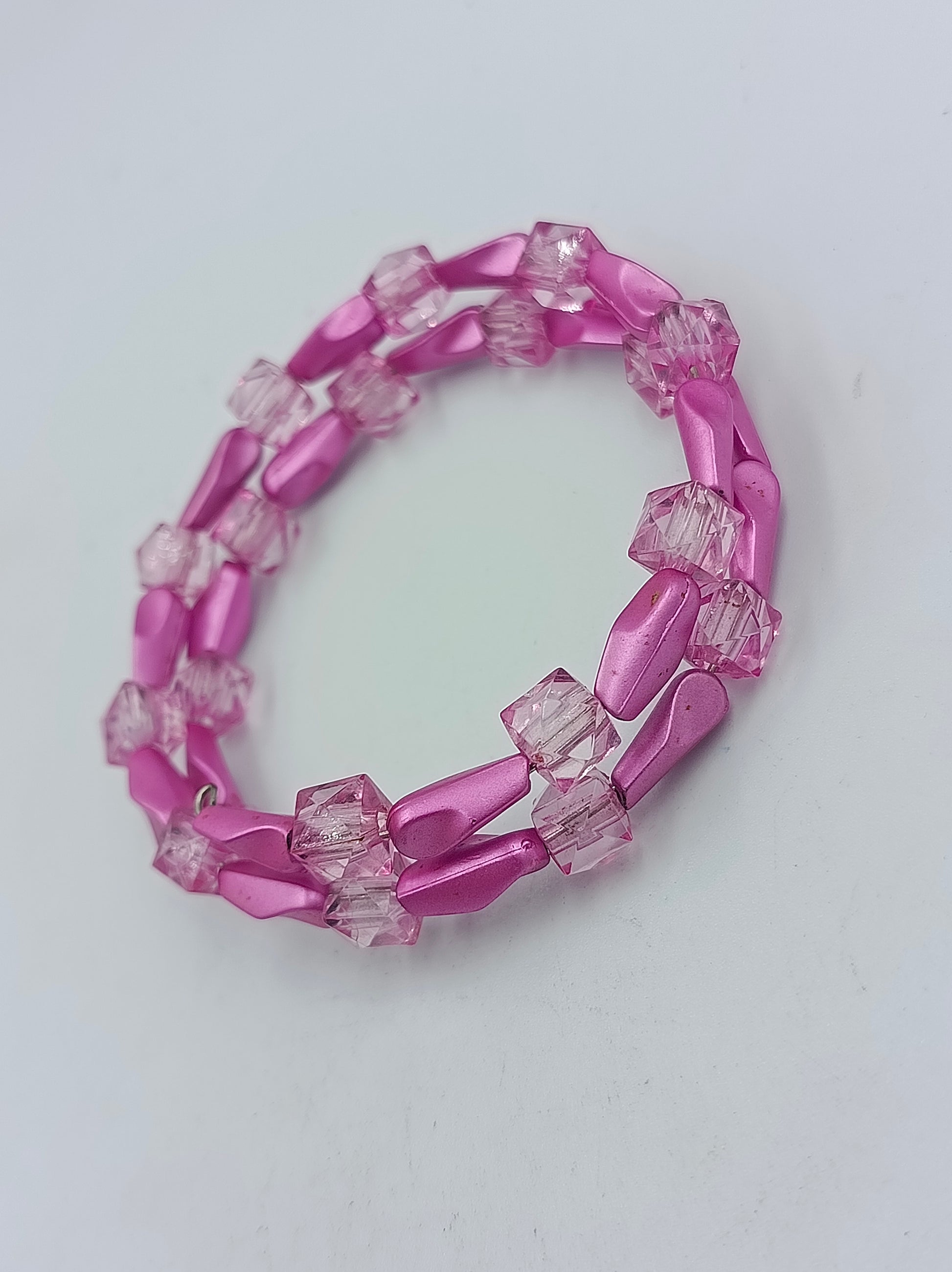 Elastisches Armband Rosa mit transparenten Würfelperlen