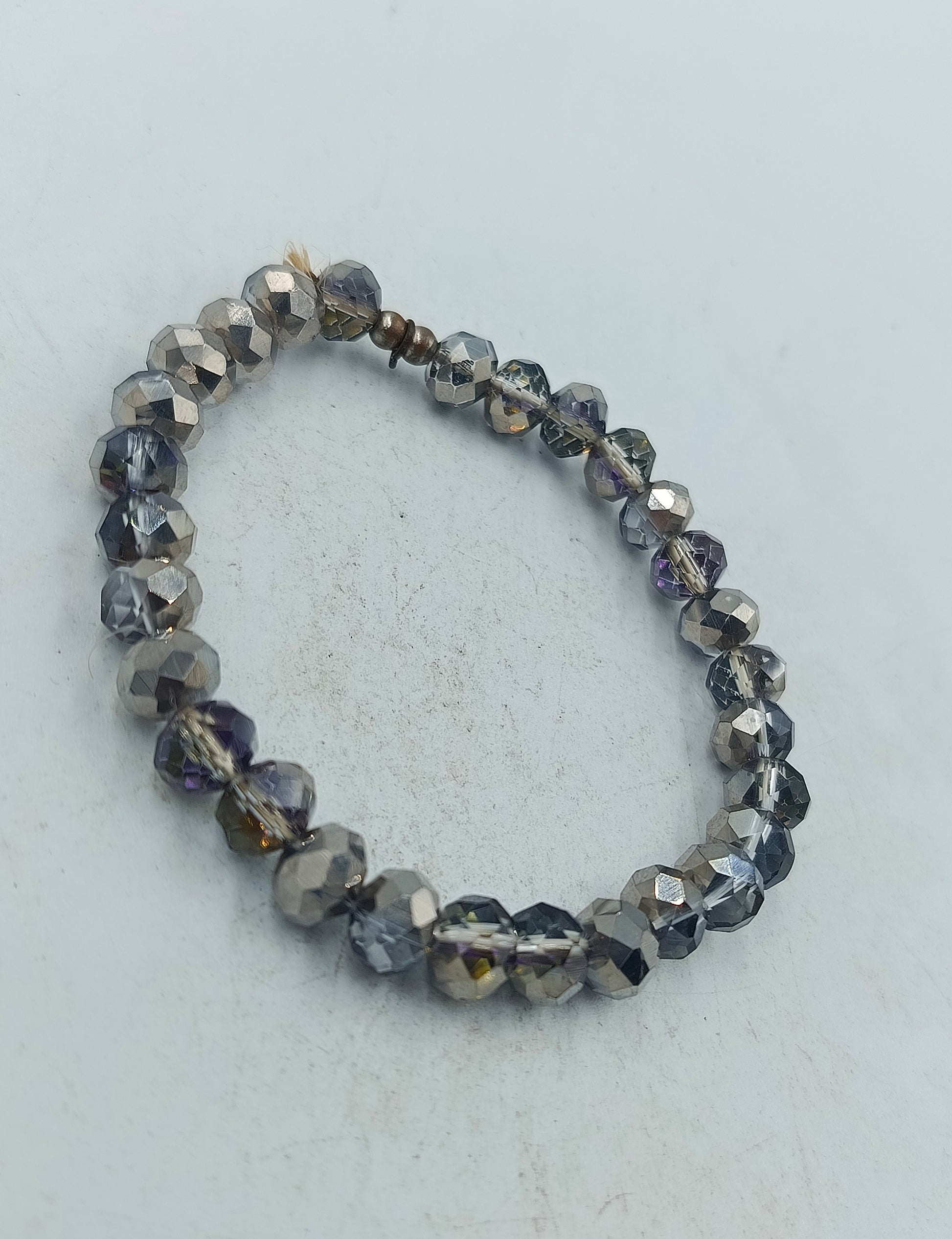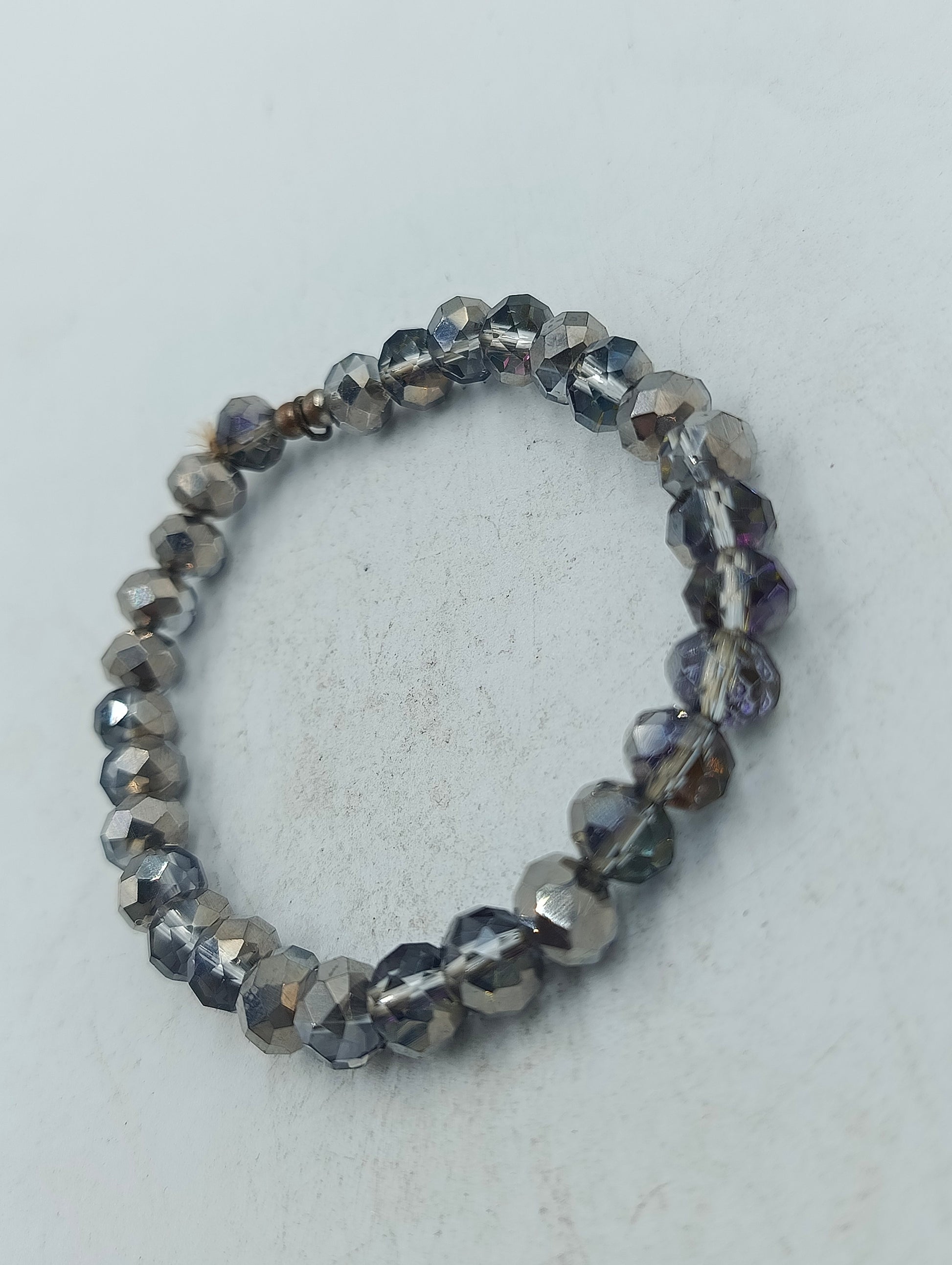 Dieses elastische Armband besteht aus facettierten Glasperlen in elegantem Grau mit leichtem metallischem und violettem Schimmer. Durch die geschliffenen Perlen entsteht ein schönes Lichtspiel das dem Armband eine hochwertige und moderne Ausstrahlung verleiht. Dank der elastischen Verarbeitung lässt es sich bequem anlegen und angenehm tragen. Ein stilvolles Accessoire das sich sowohl im Alltag als auch zu besonderen Anlässen vielseitig kombinieren lässt.