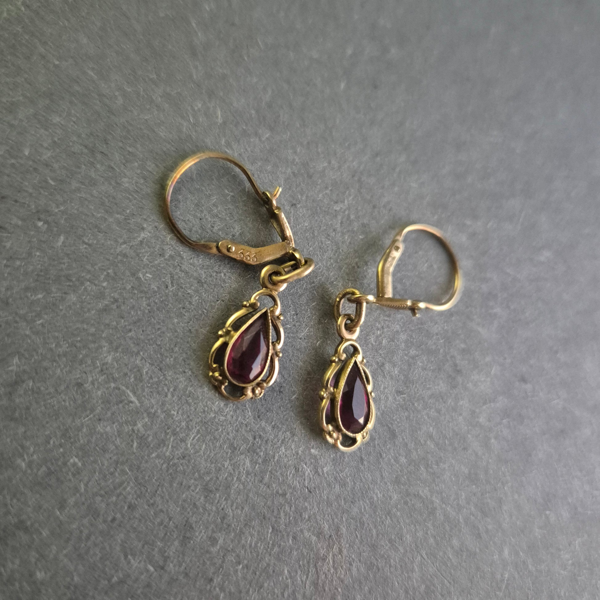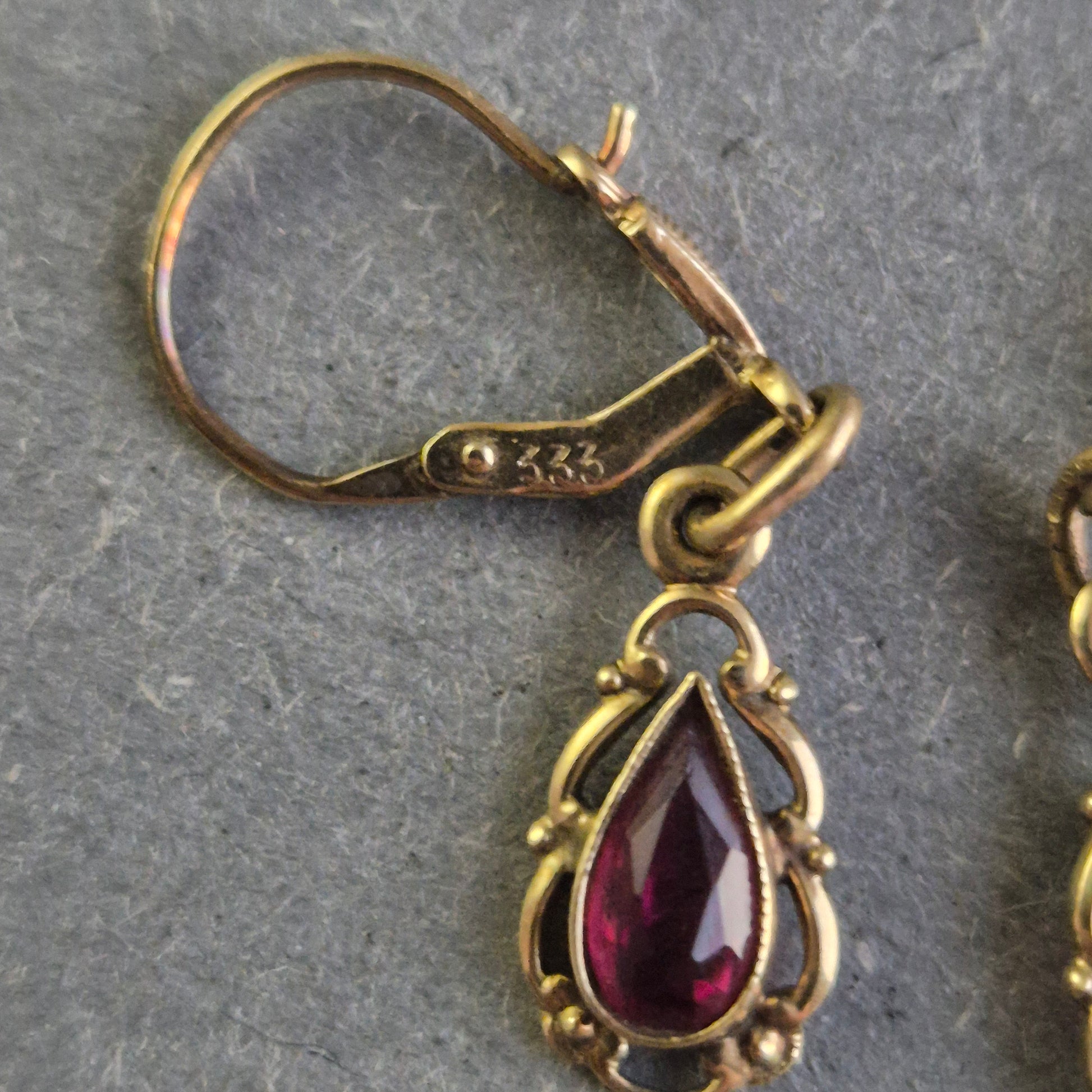 Elegante 333 Gold Ohrringe mit Granat – Klassischer Vintage-Stil