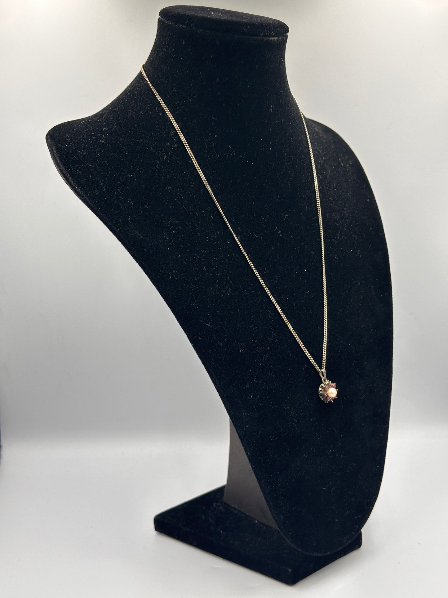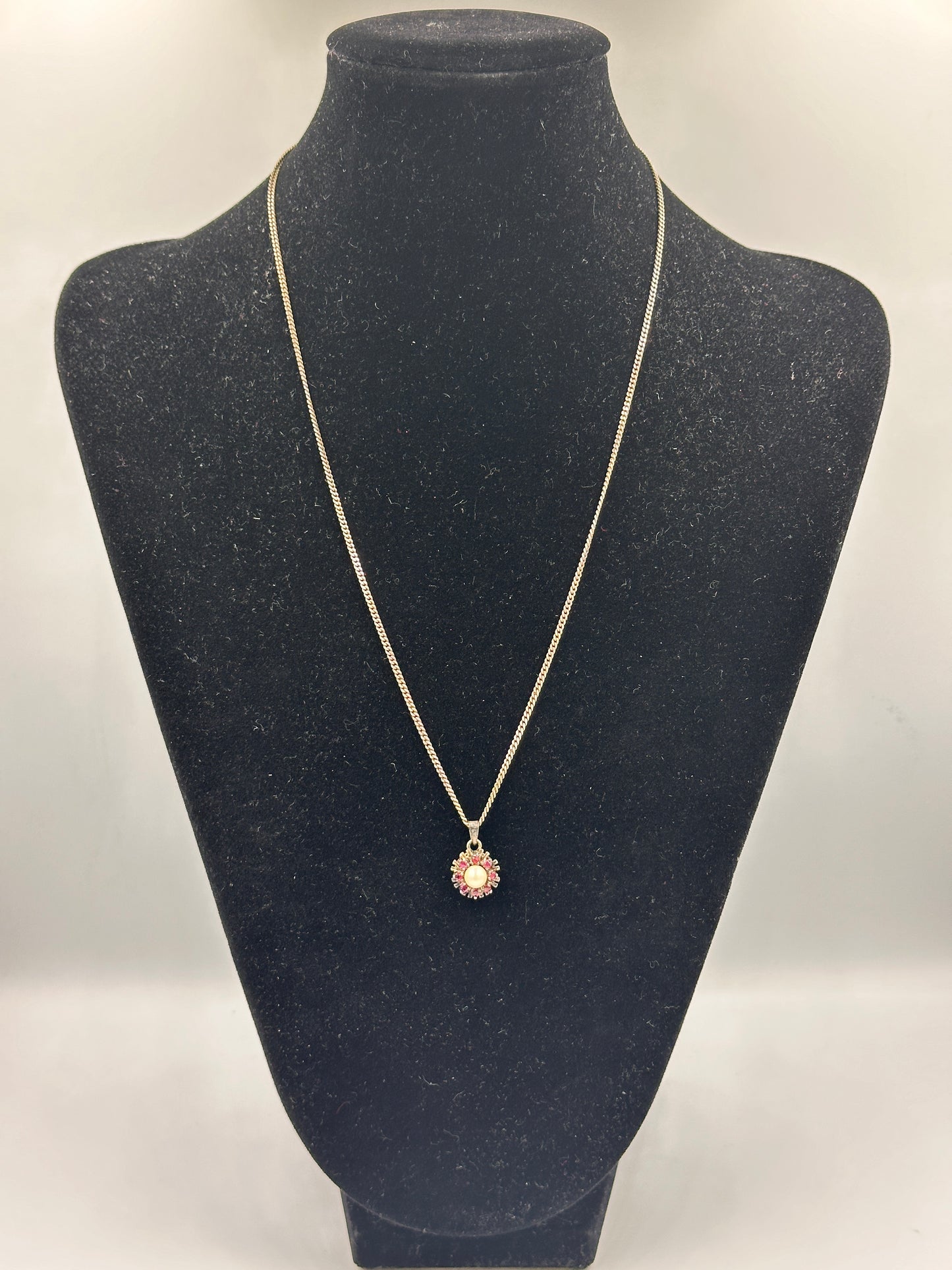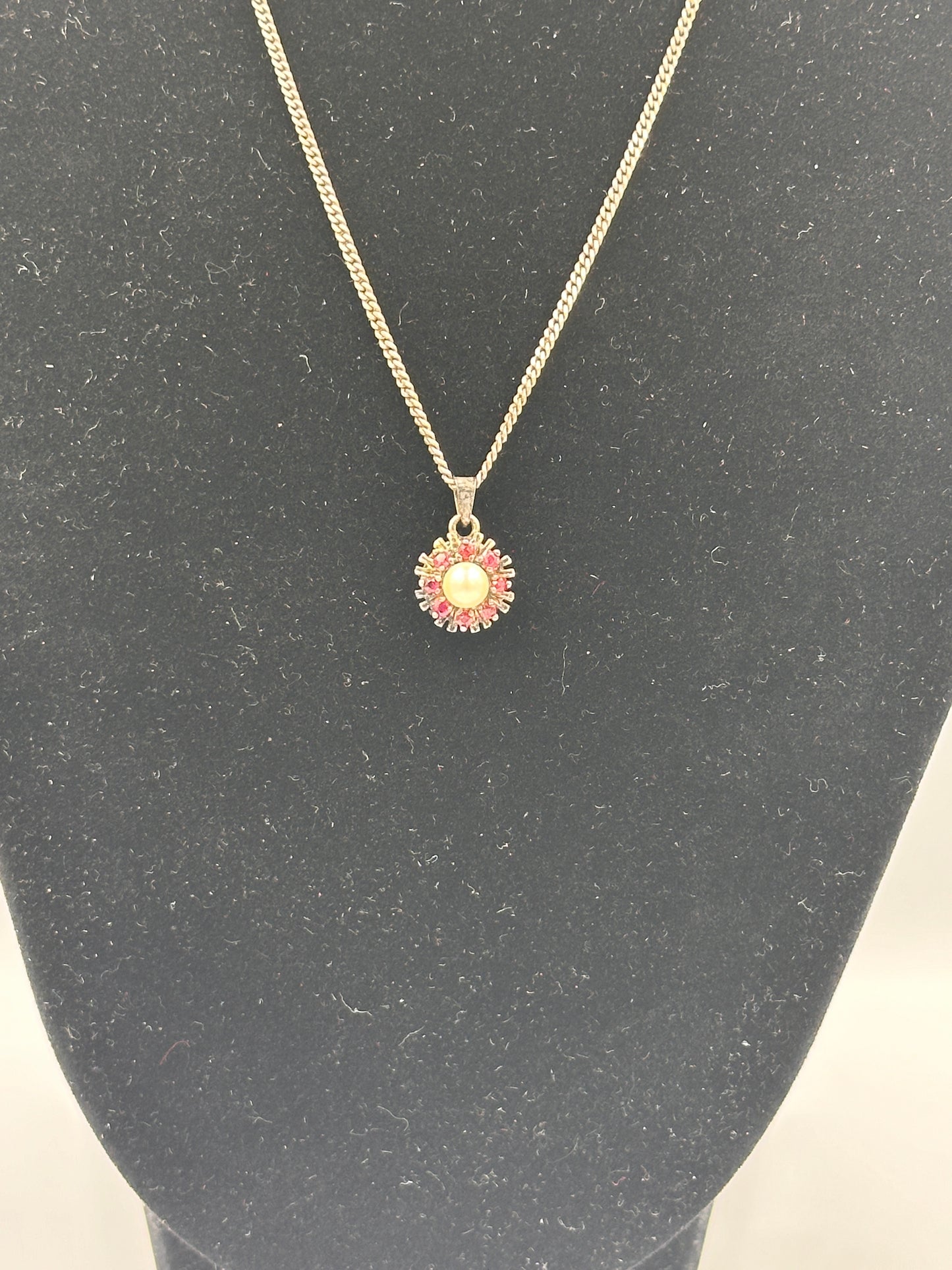 Verleihen Sie Ihrem Outfit einen Hauch von Eleganz mit dieser exquisiten Halskette aus 925er Silber. Der wunderschöne Perlenanhänger in Kombination mit funkelnden roten Steinen macht dieses Schmuckstück zu einem echten Hingucker.
