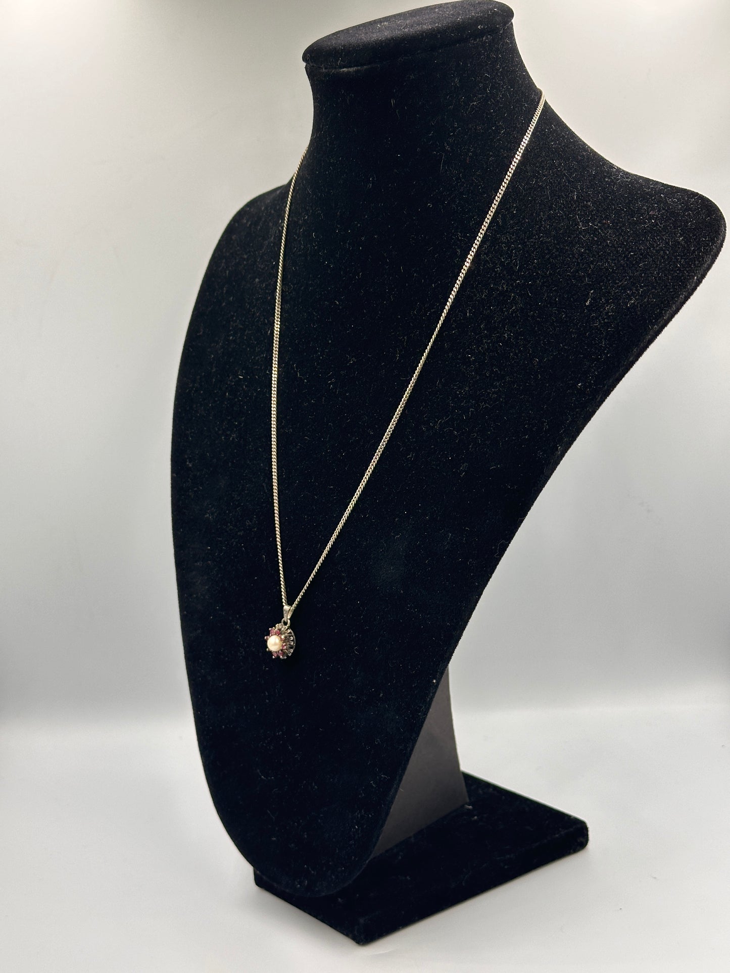 Elegante 925 Silber Halskette mit Perlenanhänger und roten Steinen