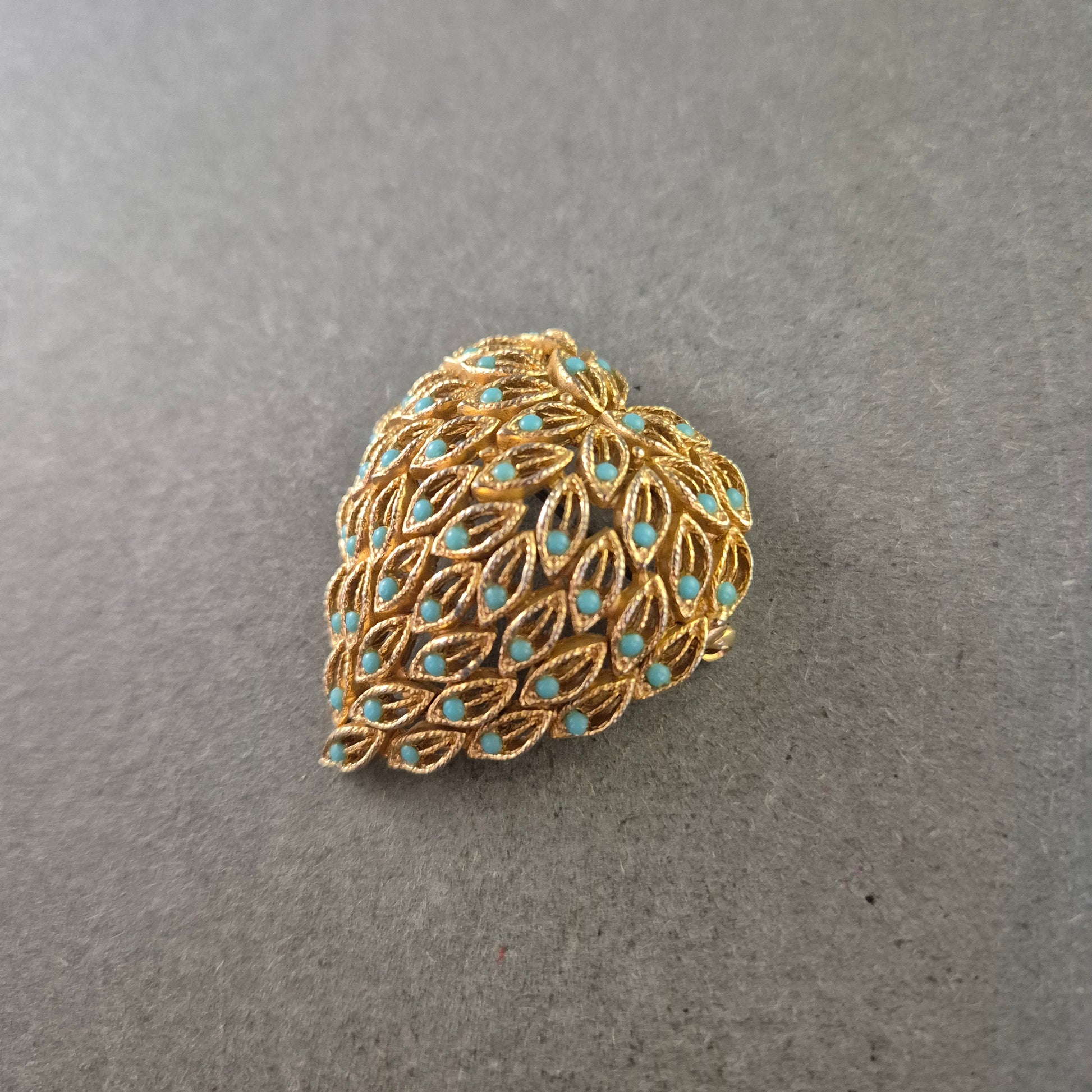 Elegante goldene Brosche mit türkisfarbenen Akzenten – Blattdesign