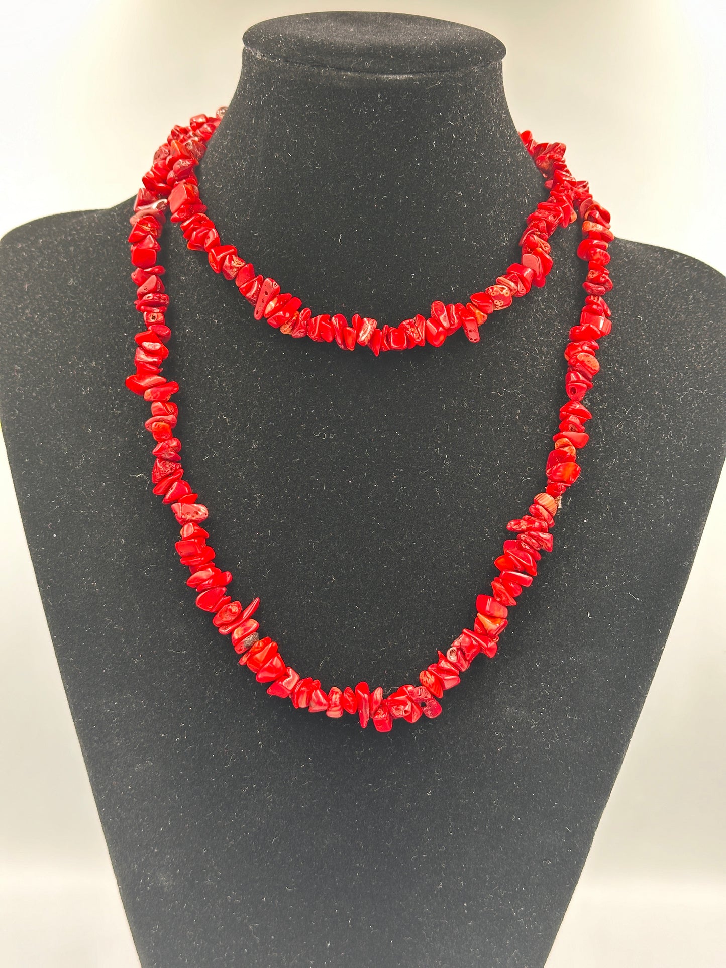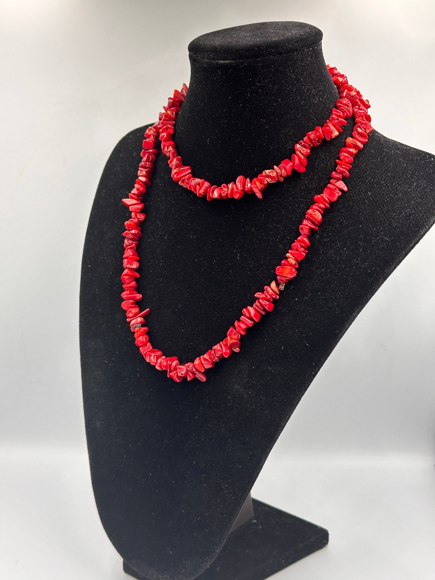 Verleihen Sie Ihrem Outfit mit dieser wunderschönen Granatrot-Splitterkette einen Hauch von Eleganz und Stil.