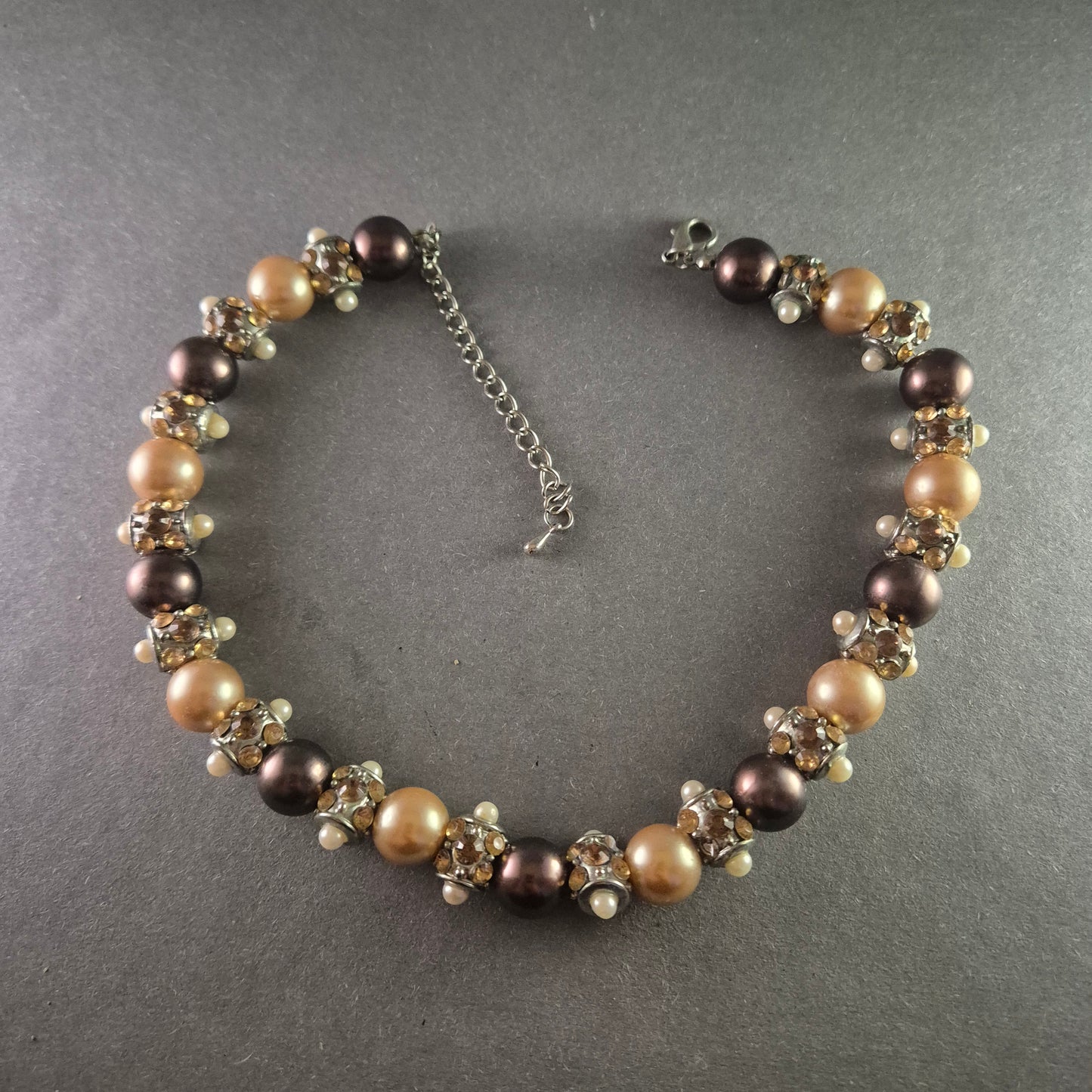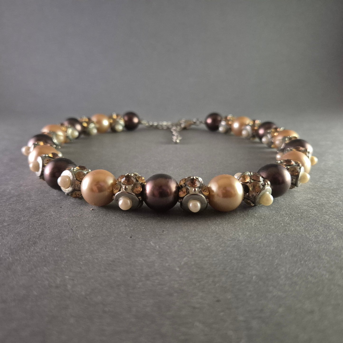 Elegante Halskette mit schimmernden Perlen in Gold- und Bronzetönen