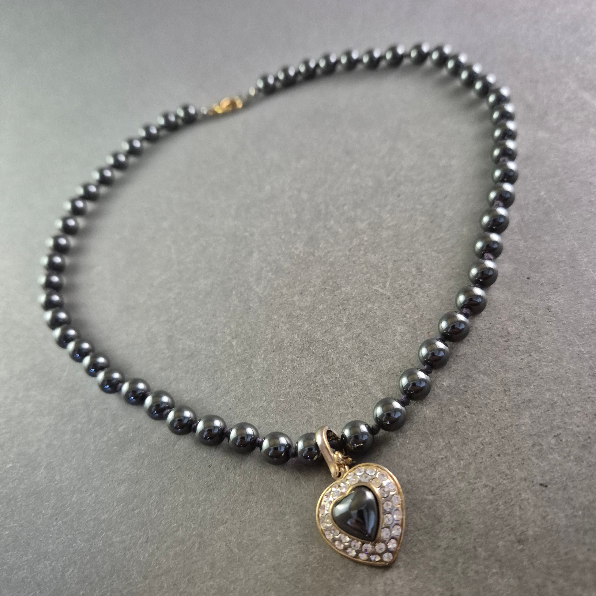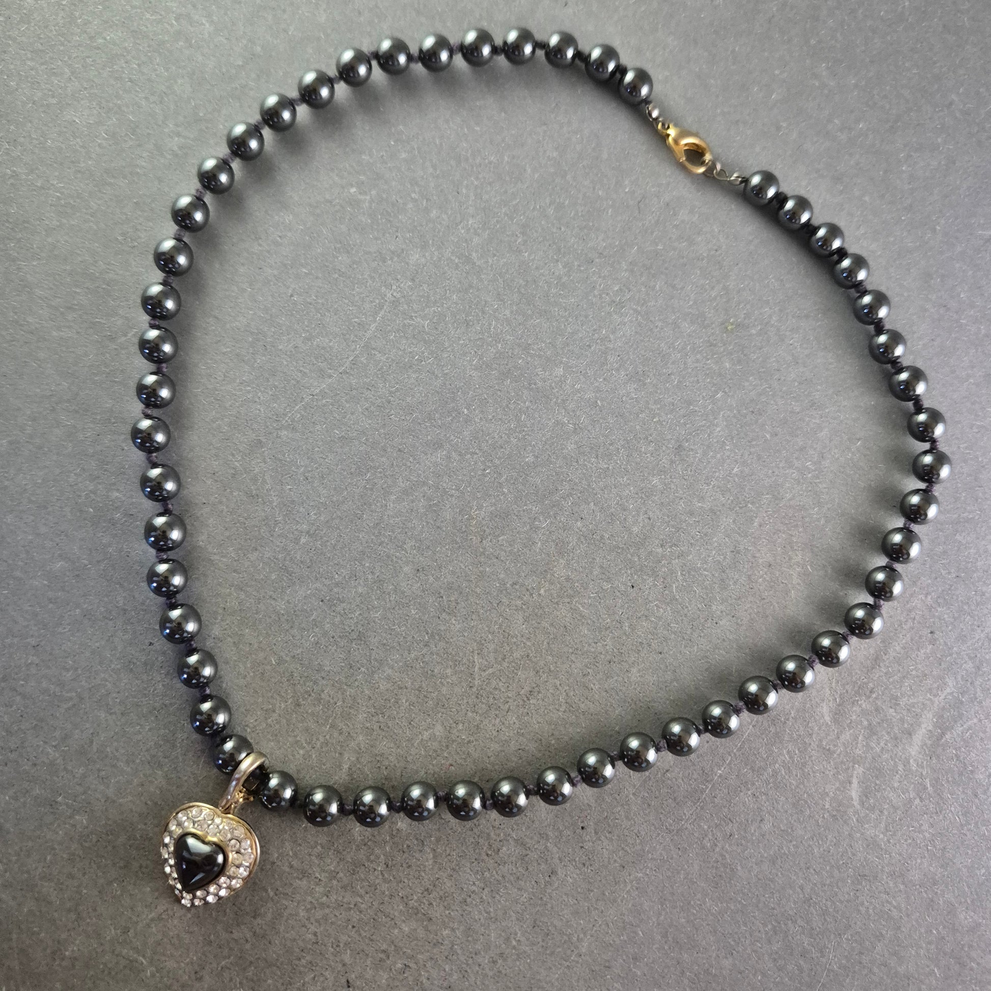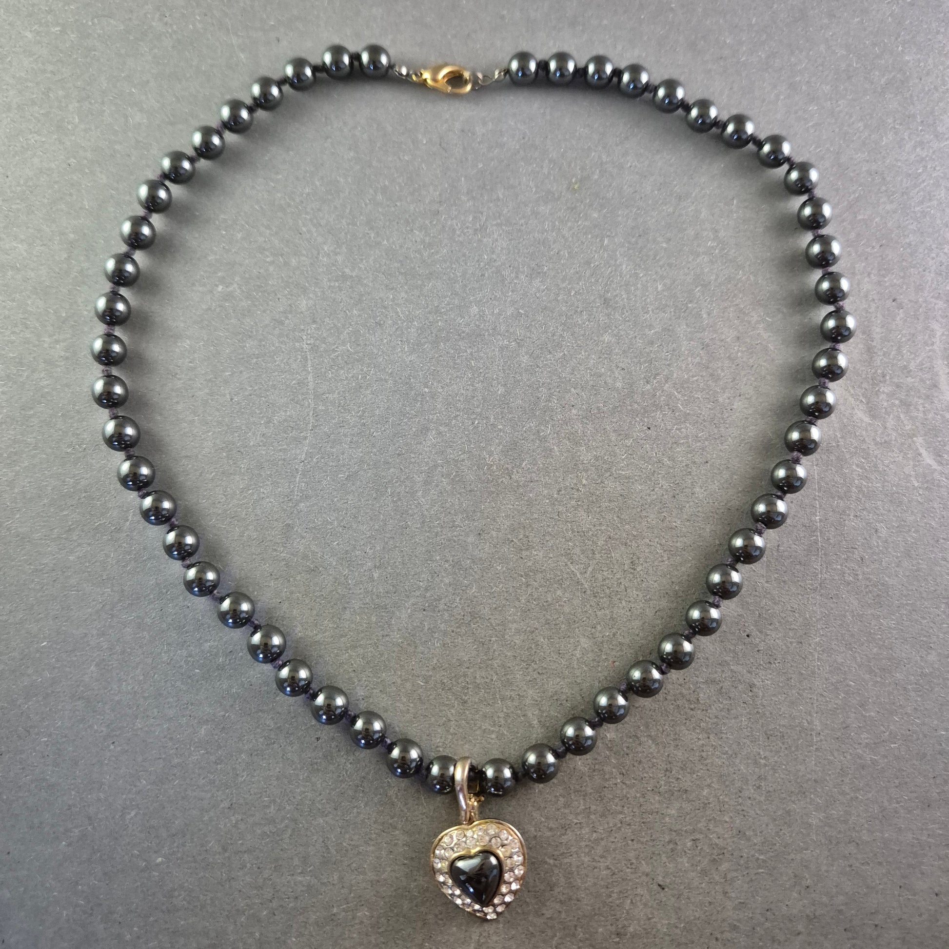 • Anhänger: Herzform mit Hämatitstein und Strassverzierung