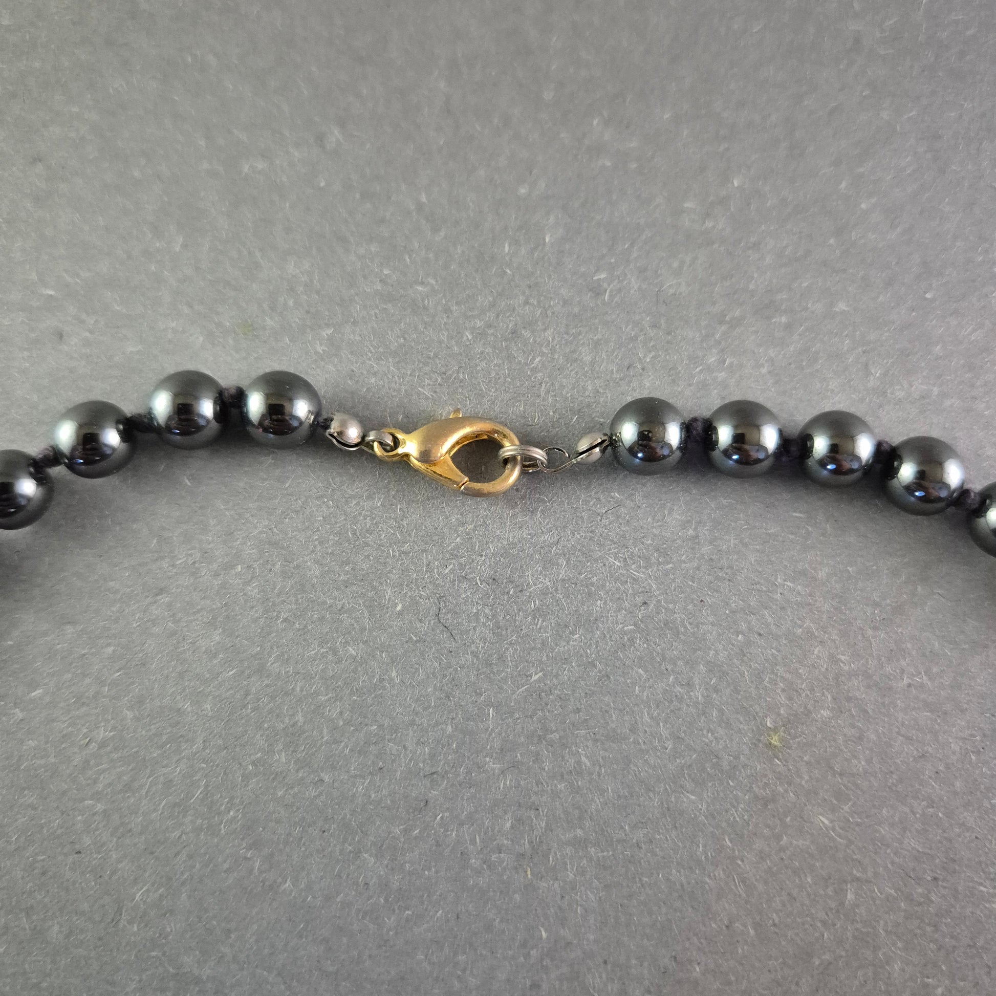 • Material: Hämatitperlen, goldfarbener Anhänger mit Strasssteinen