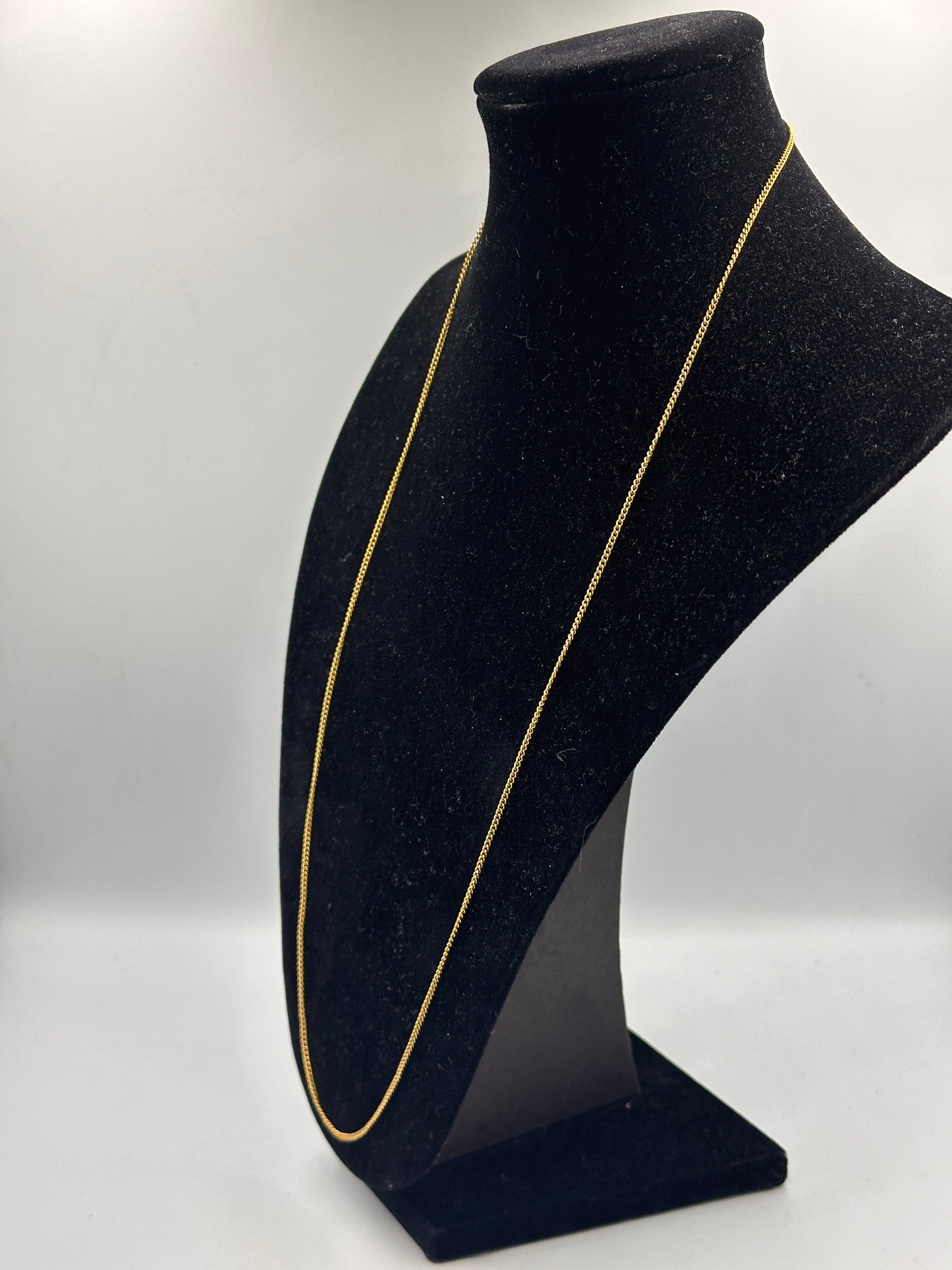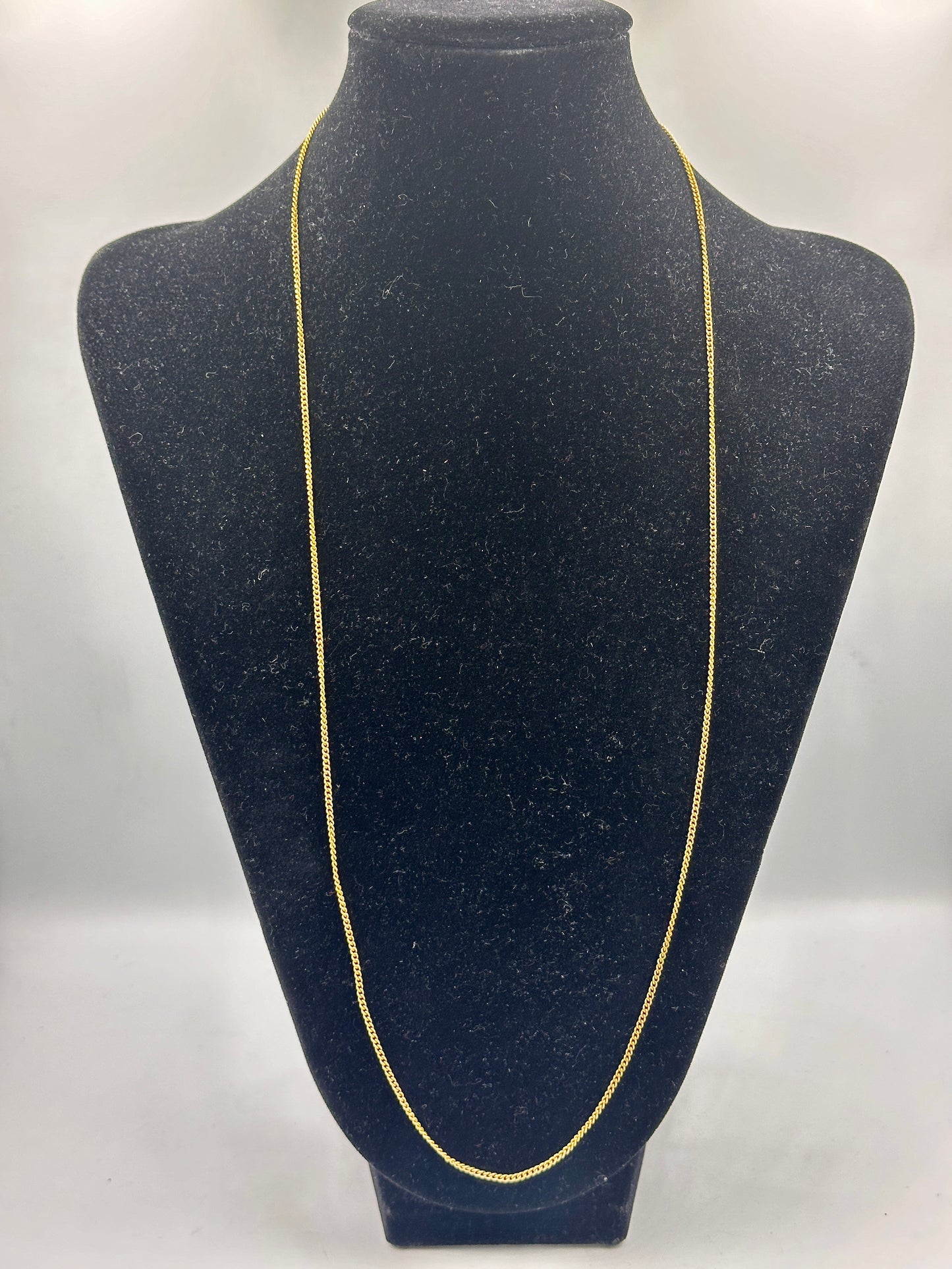 Diese elegante, vergoldete Halskette mit einer Länge von 50 cm ist ein zeitloses Schmuckstück, das jedem Outfit eine stilvolle Note verleiht. Trotz ihres gebrauchten Zustands, ist sie in ausgezeichnetem Zustand und strahlt immer noch ihren ursprünglichen Glanz aus. Mit einem Gewicht von nur 4 Gramm ist sie leicht und angenehm zu tragen, ohne dabei an Eleganz zu verlieren. Perfekt für besondere Anlässe oder um Ihrem Alltagslook einen Hauch von Raffinesse zu verleihen.