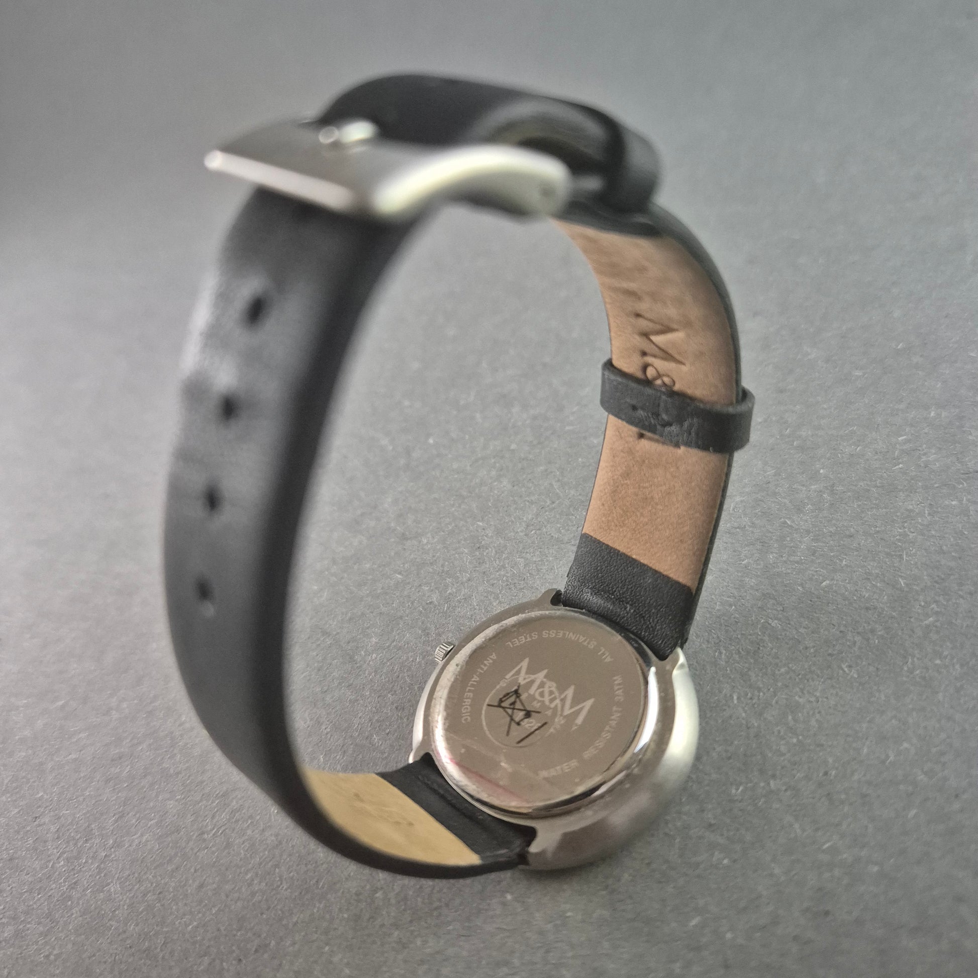 Diese M&M Germany Damenarmbanduhr überzeugt durch ihr elegantes und zeitloses Design. Das runde Edelstahlgehäuse und das silberne Zifferblatt mit klaren schwarzen Ziffern sorgen für eine edle Optik. Das schwarze Echtlederarmband bietet hohen Tragekomfort und verleiht der Uhr eine klassische Note. Perfekt für stilbewusste Frauen, die auf schlichte Eleganz und Qualität setzen.