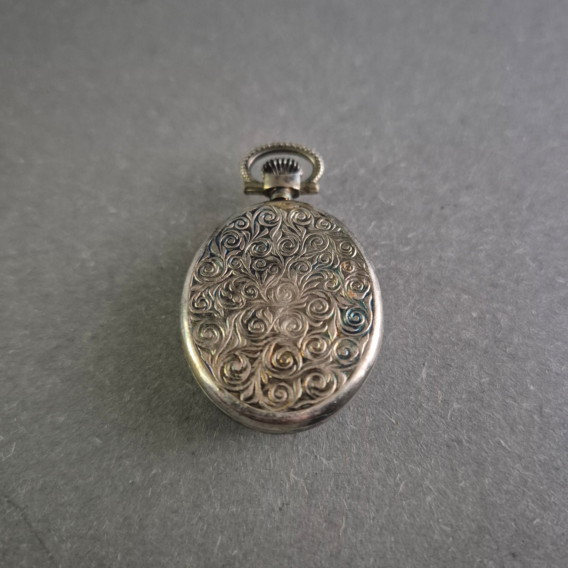 Diese exquisite Pallas Para Taschenuhr besticht durch ihr elegantes Vintage-Design und die filigrane Gravur auf dem Gehäuse. Das oval geformte Zifferblatt mit kunstvollen, geschwungenen Ziffern verleiht der Uhr eine nostalgische Note. Das fein gearbeitete Gehäuse aus Metall zeigt ein florales Muster und zeugt von hoher Handwerkskunst. Ein stilvolles Accessoire für Liebhaber klassischer Zeitmesser und Sammler historischer Uhren.