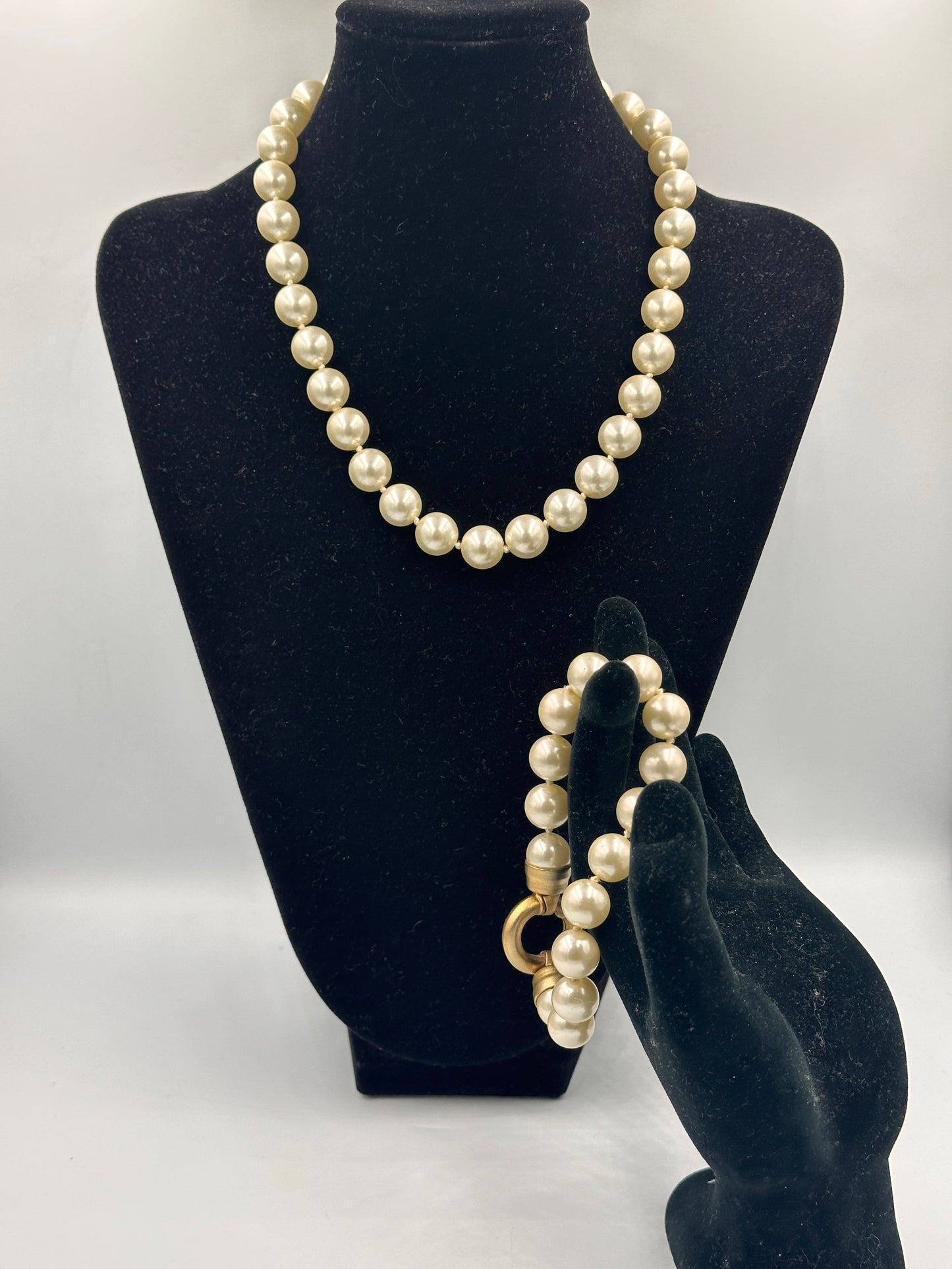 Elegante Perlenkette mit passendem Armband und Goldfarbenem Verschluss