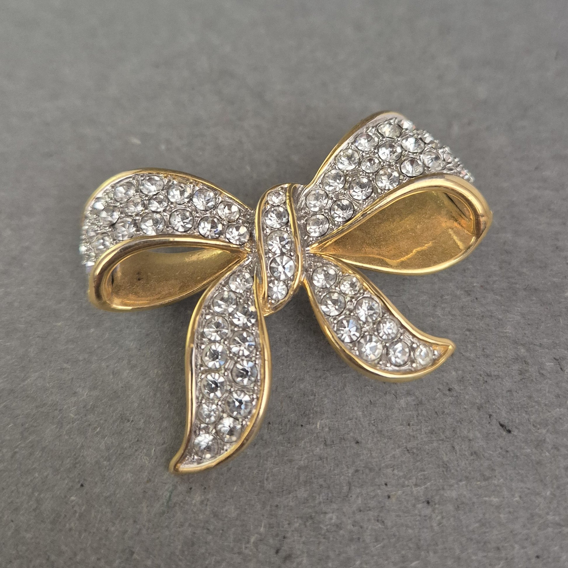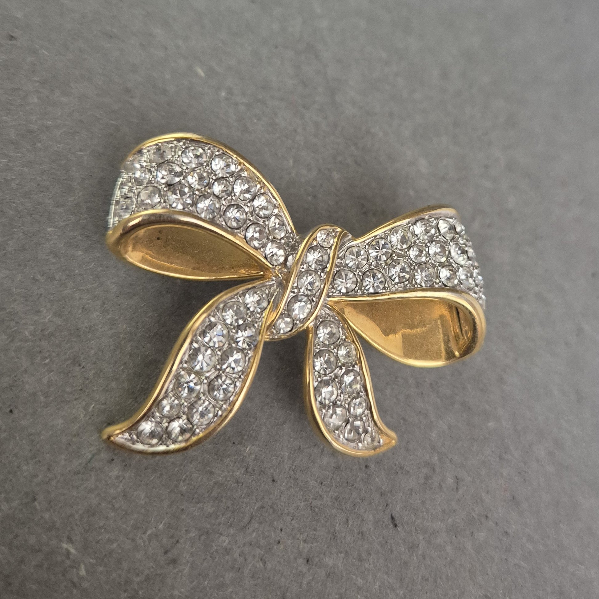 Elegante Schleifenbrosche – Strassbesetzt in Goldoptik