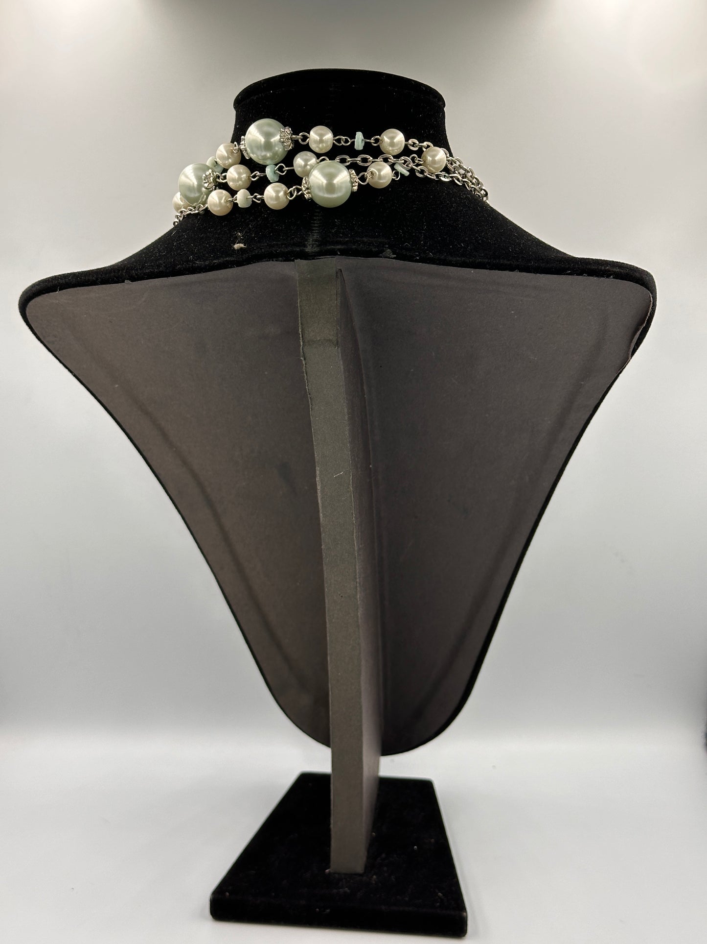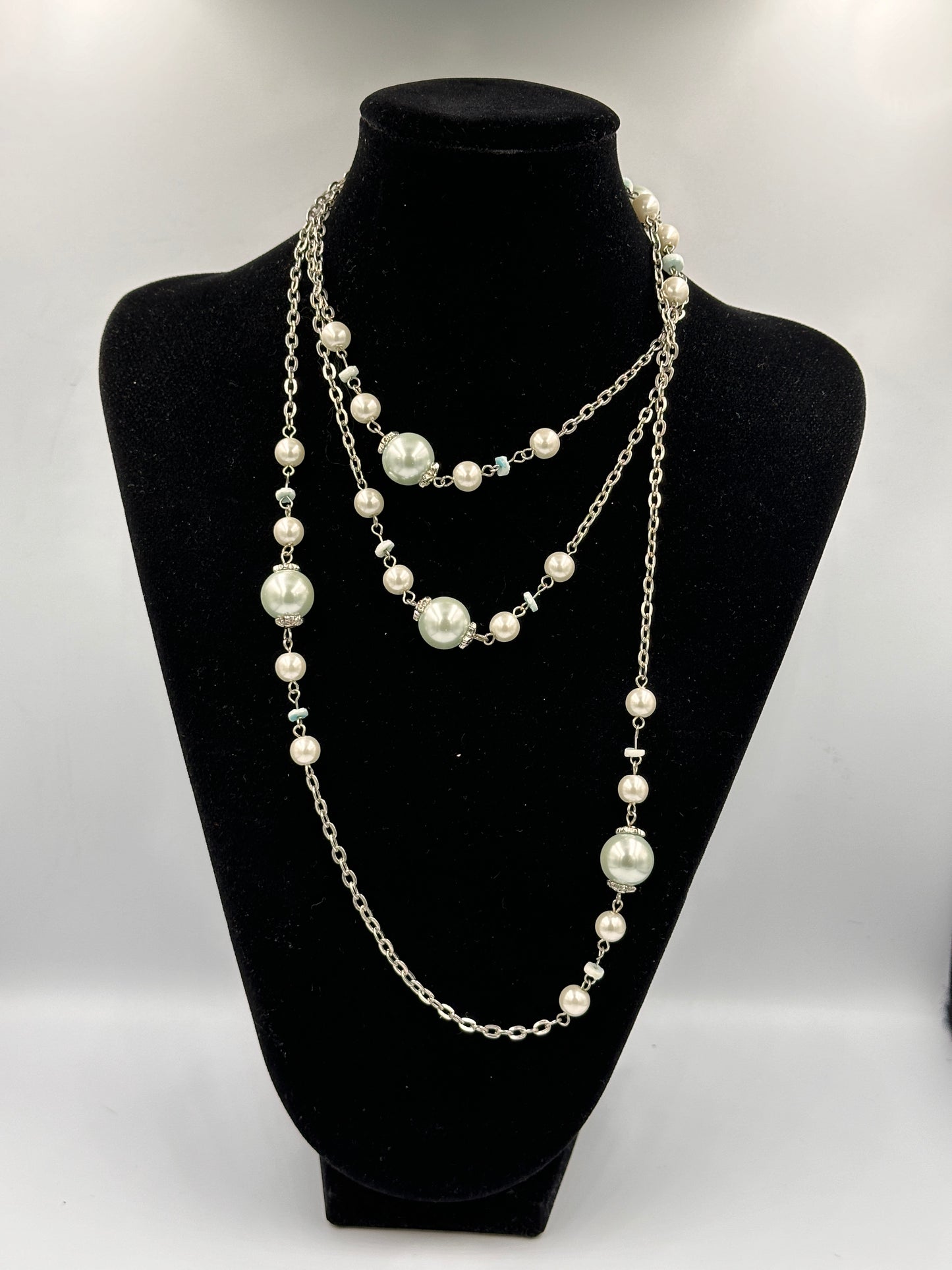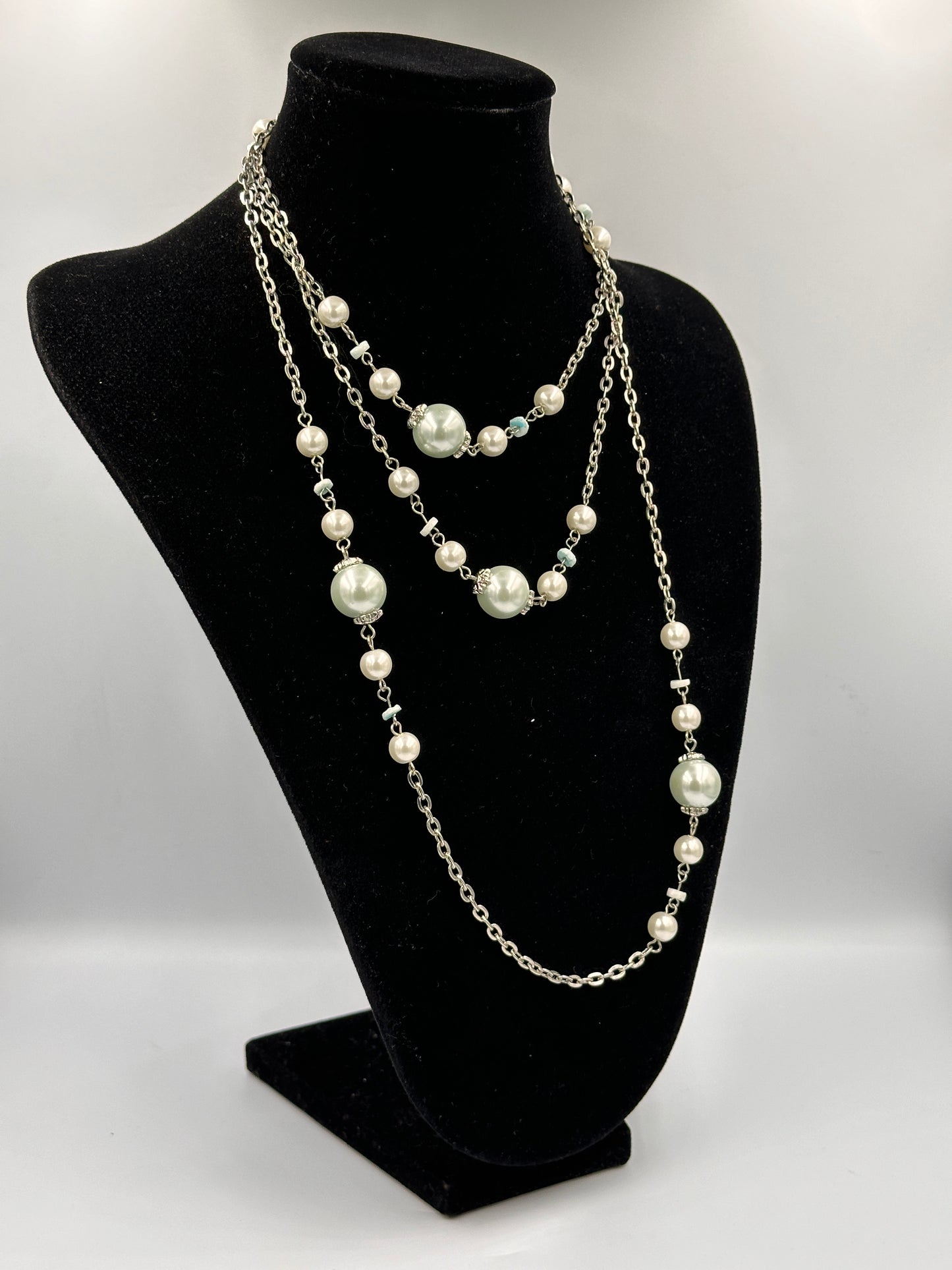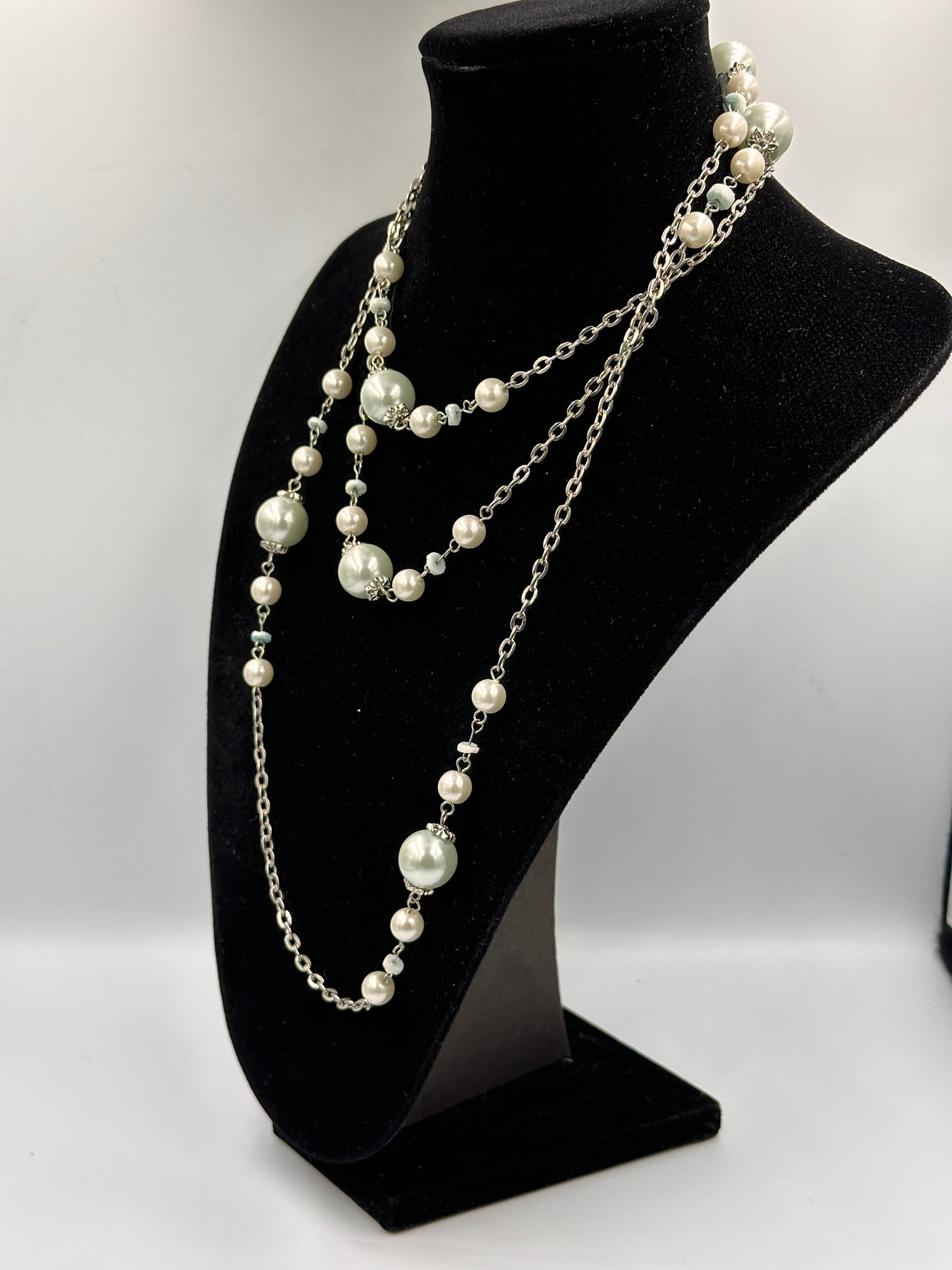 Elegante Silberfarbene Halskette mit Perlen in Verschiedenen Größen und Farben