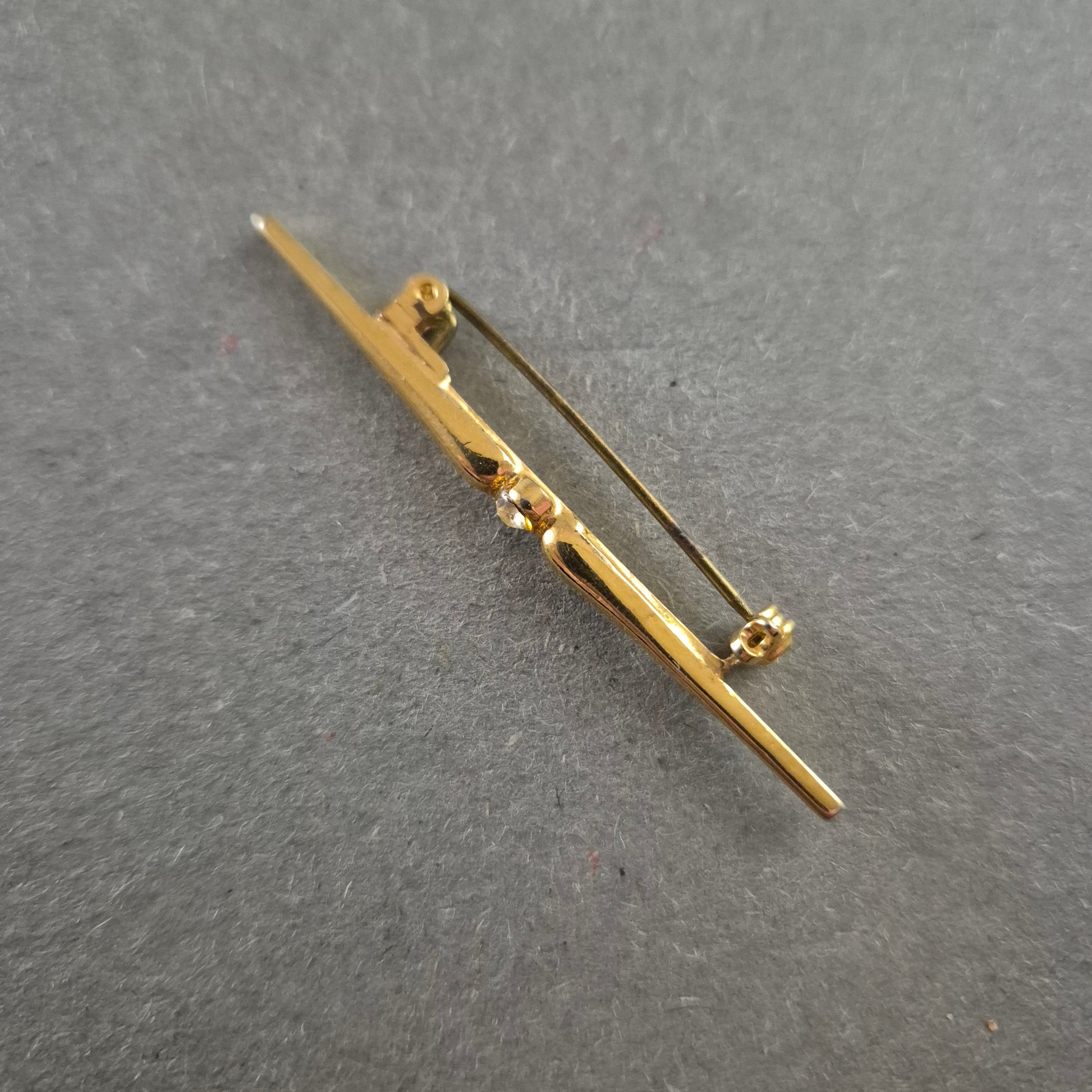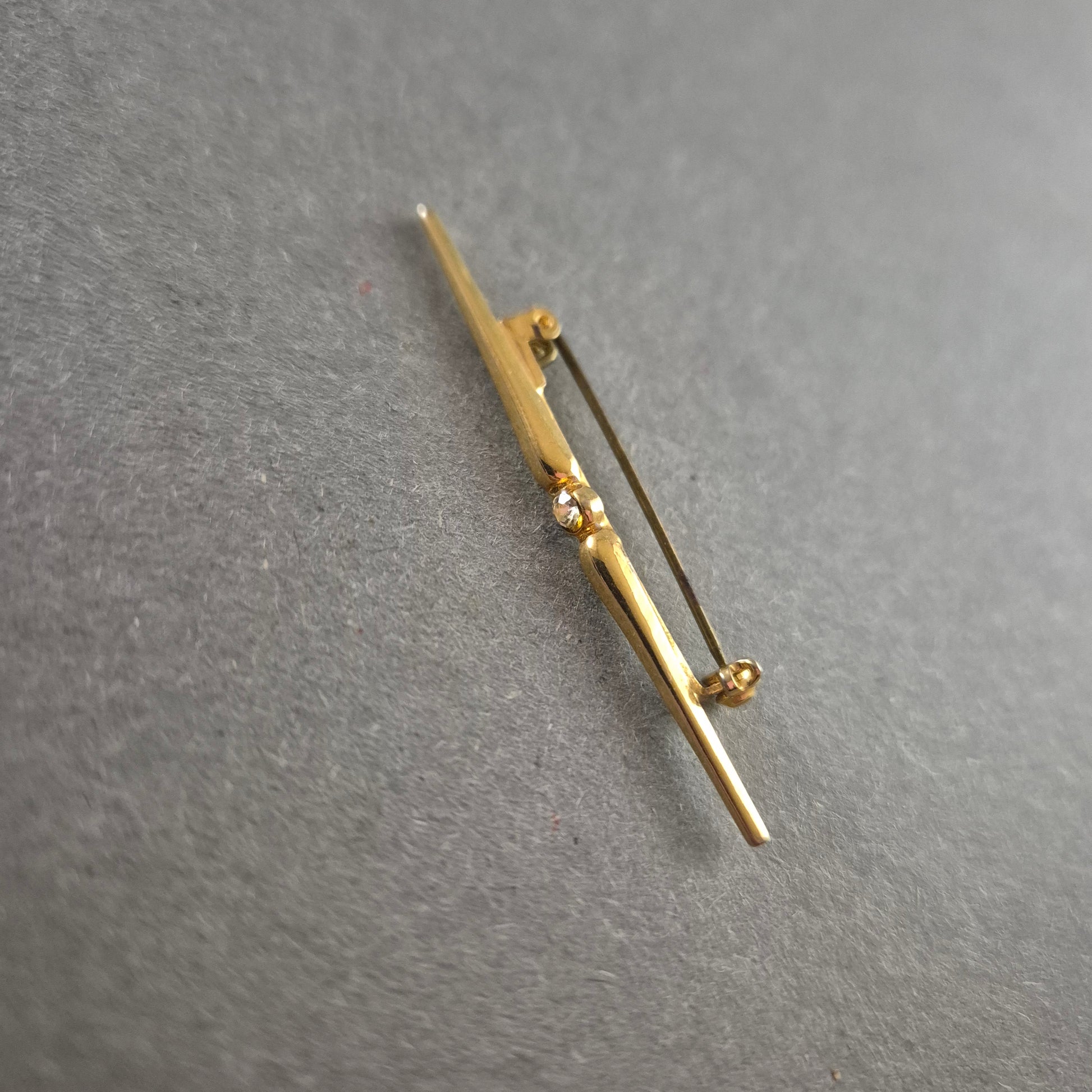 Diese feine, vergoldete Brosche überzeugt durch ihr schlichtes, aber edles Design. Die schmale Form mit zarten Verzierungen macht sie zu einem vielseitigen Schmuckstück, das sowohl an Blusen, Schals als auch an Jacken oder Kleidern getragen werden kann.