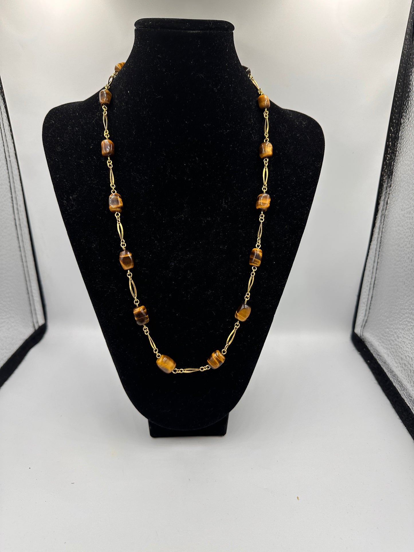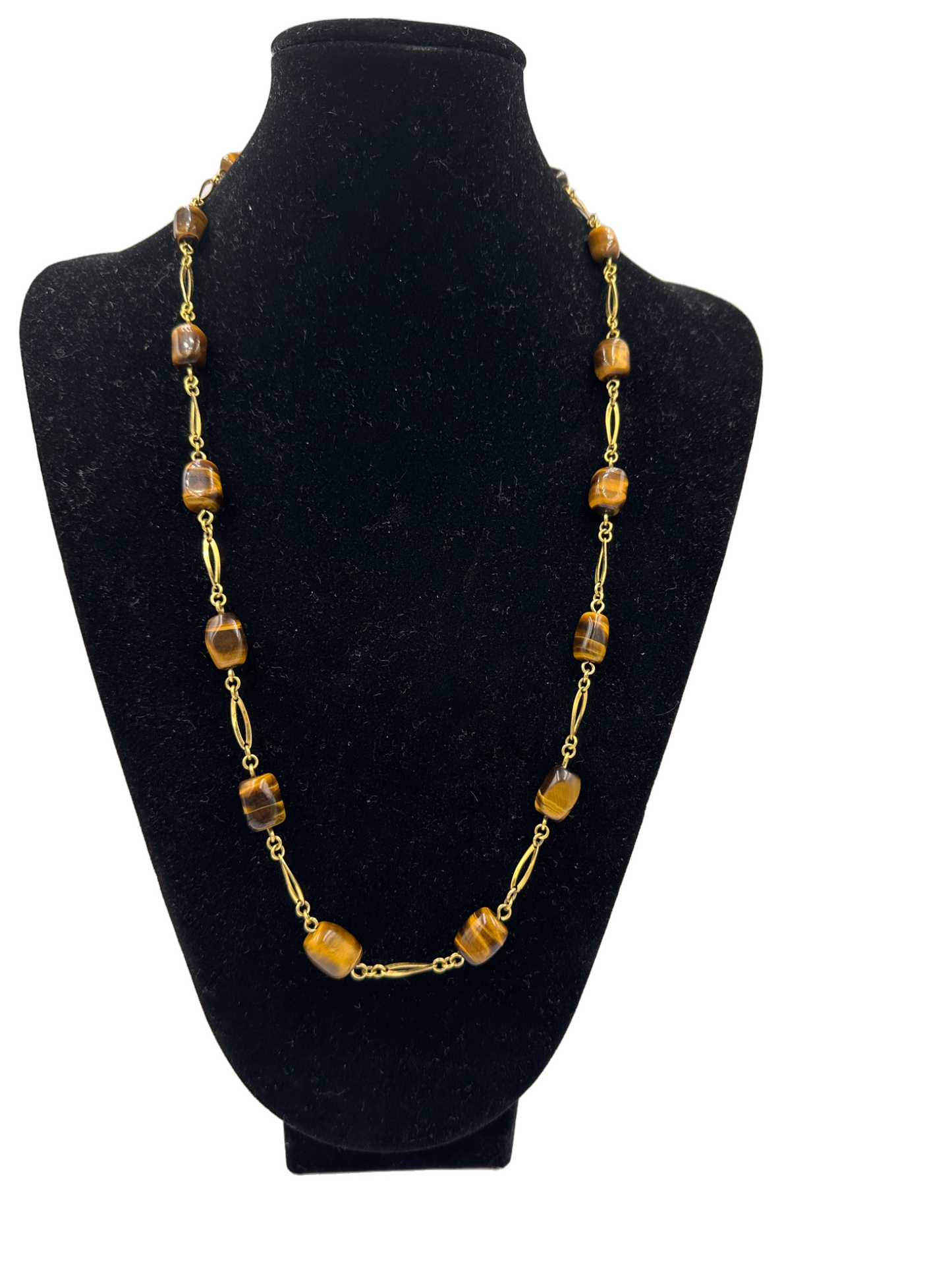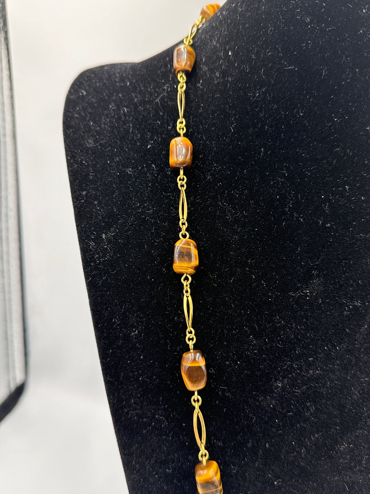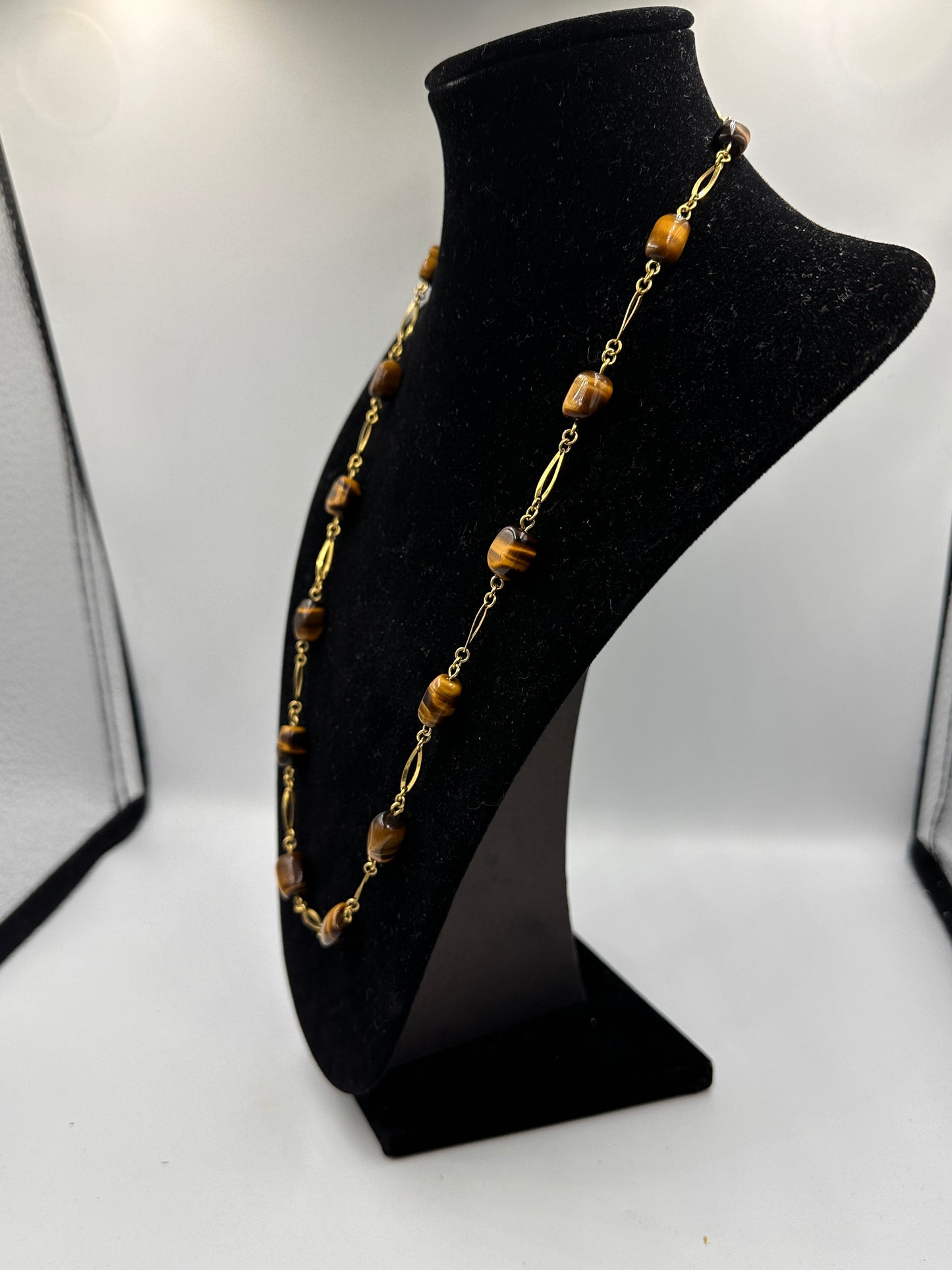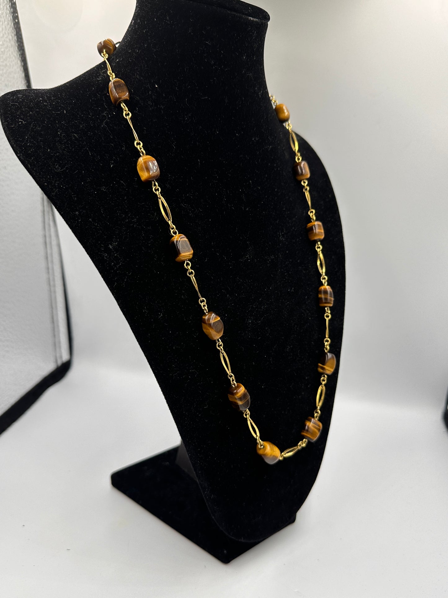 • Zustand: Obwohl diese Halskette gebraucht ist, strahlt sie immer noch eine unvergleichliche Anziehungskraft aus. Jeder Tigeraugenstein wurde sorgfältig ausgewählt und fachmännisch eingefasst, um seine natürliche Schönheit zu betonen.
