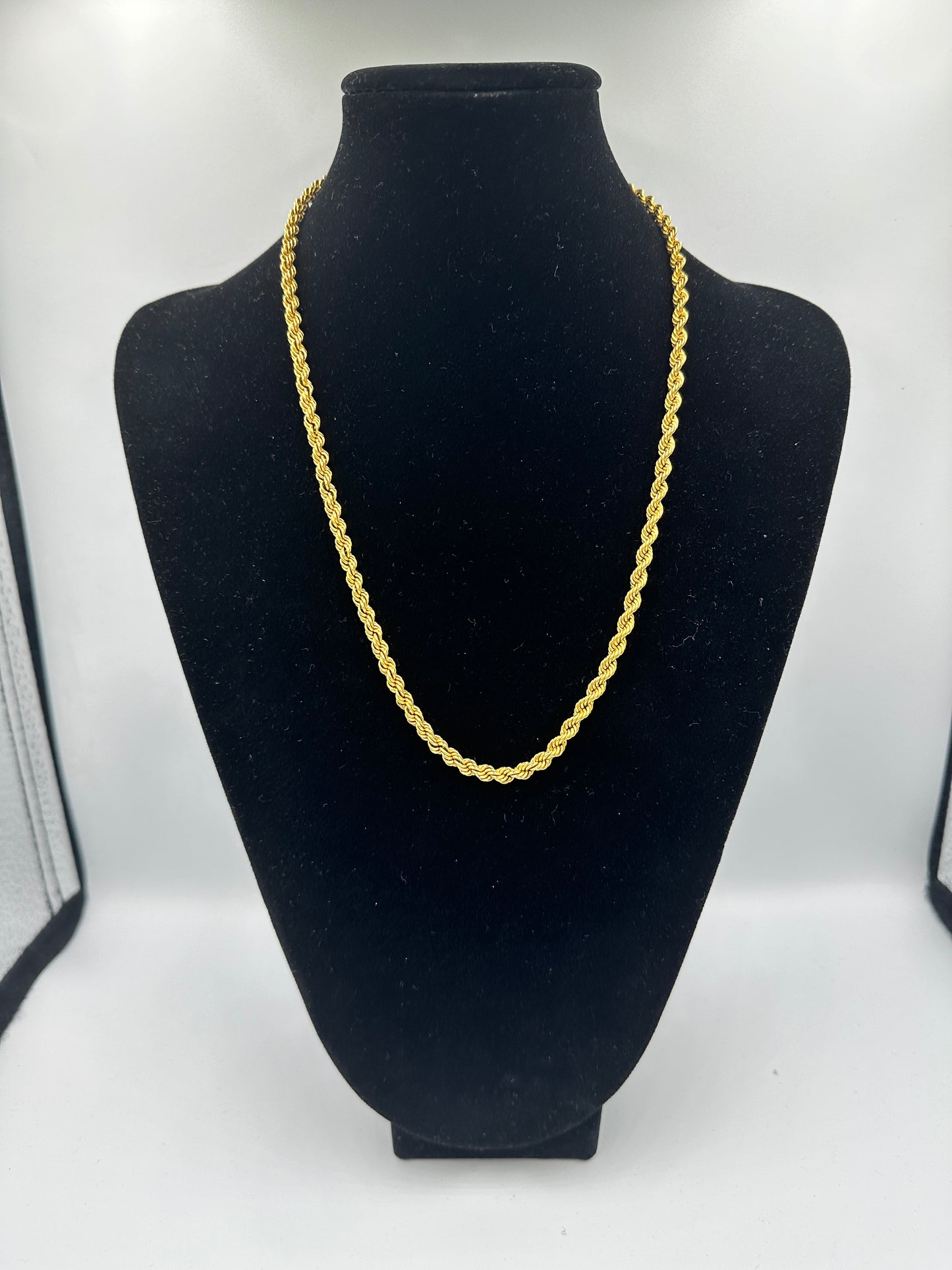 Tauchen Sie ein in die Welt des raffinierten Stils mit dieser eleganten vergoldeten Seilkette. Mit einer Länge von 50 cm verleiht sie Ihrem Look eine subtile Eleganz und einen Hauch von Luxus.