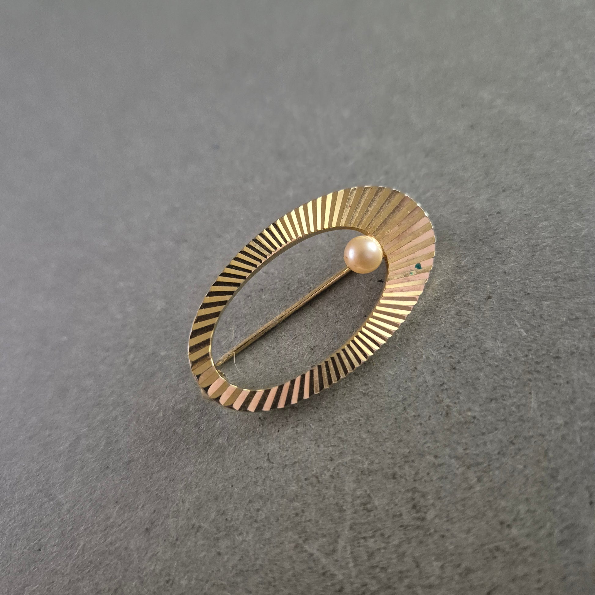 Elegante Vintage Brosche in Goldoptik mit Zierperle – Ovales Design