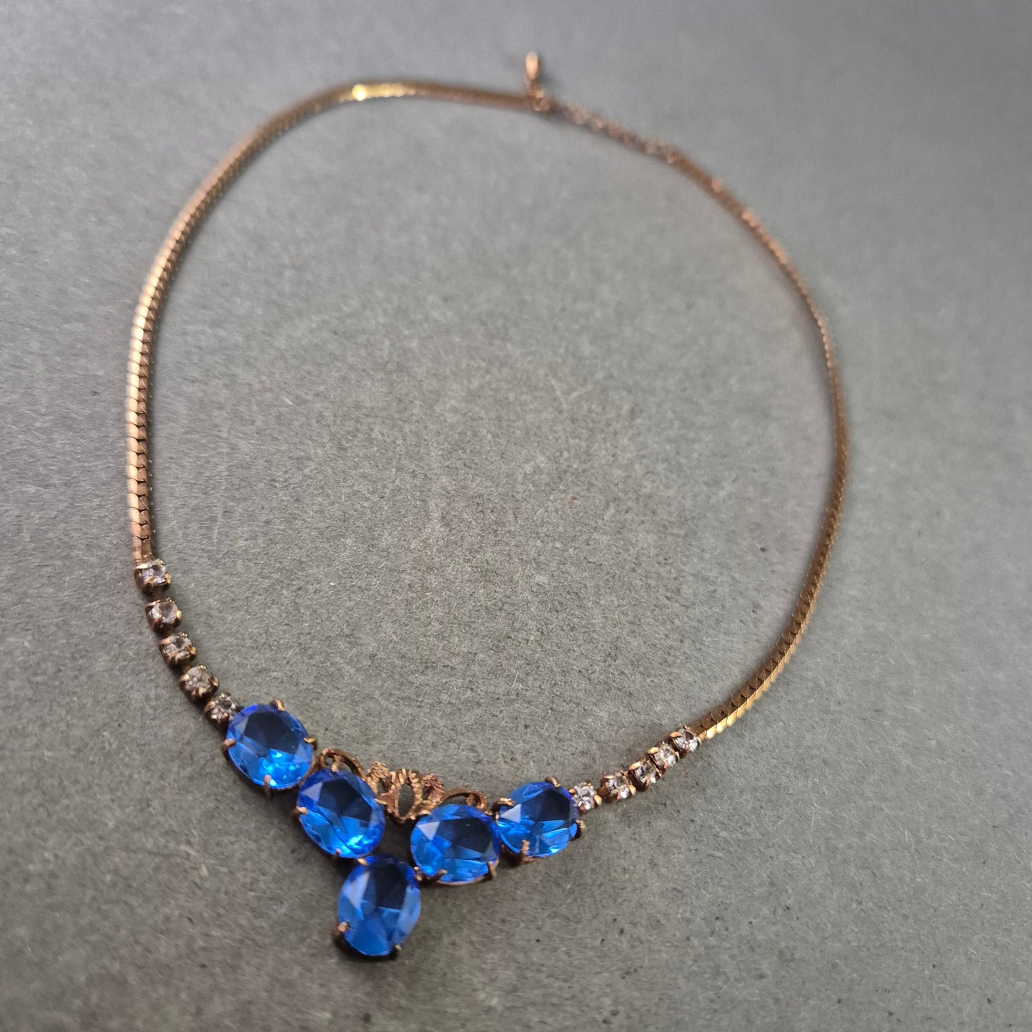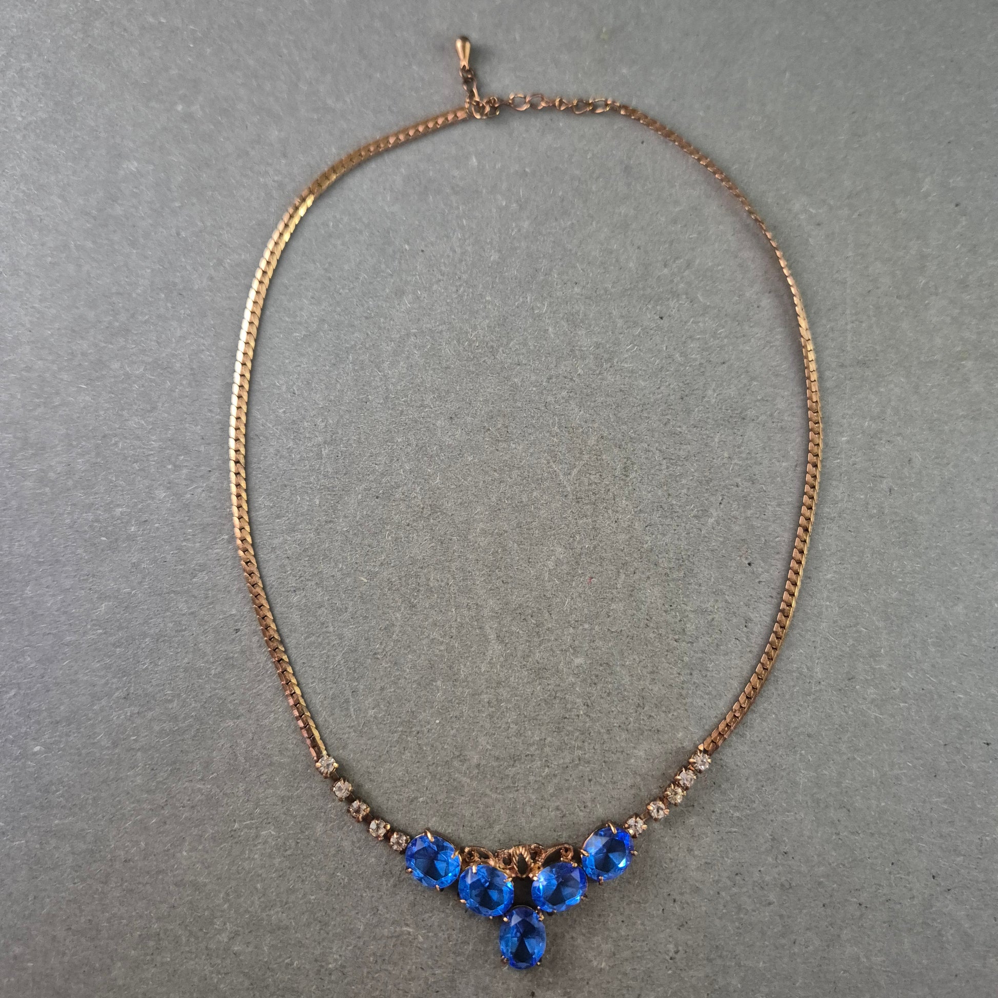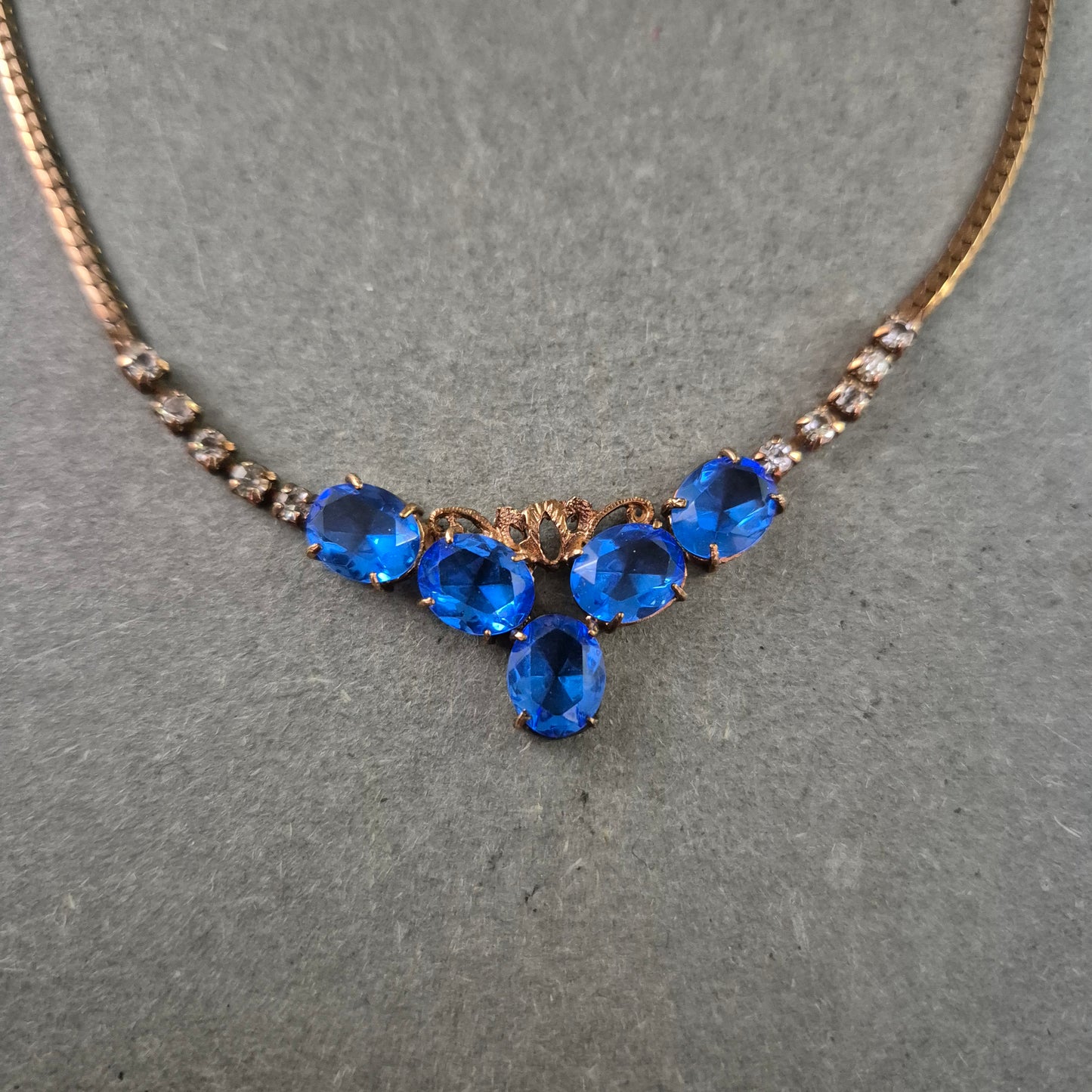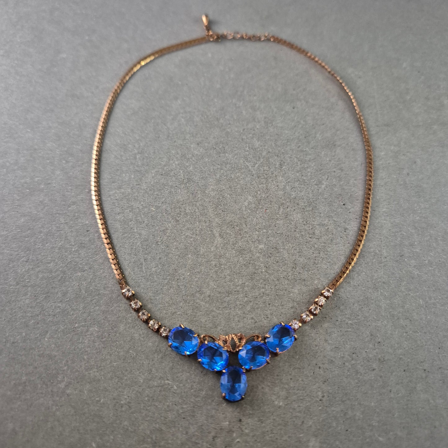 Elegante Vintage Halskette mit blauen Strasssteinen – Klassisches Design