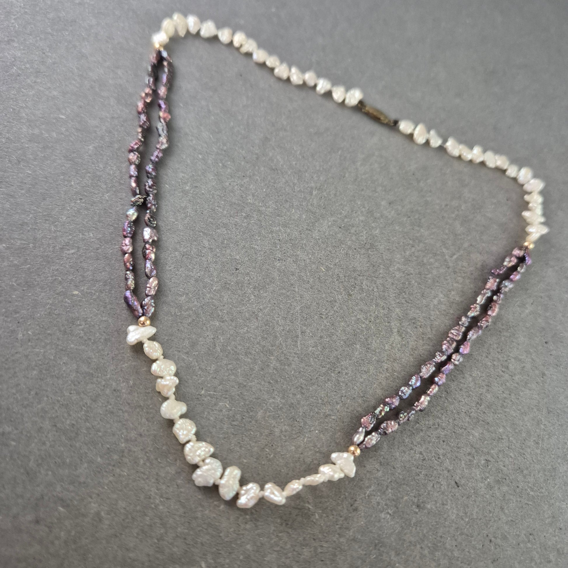 Elegante zweifarbige Perlen Kette – Stilvolle Kombination aus Creme und Violett