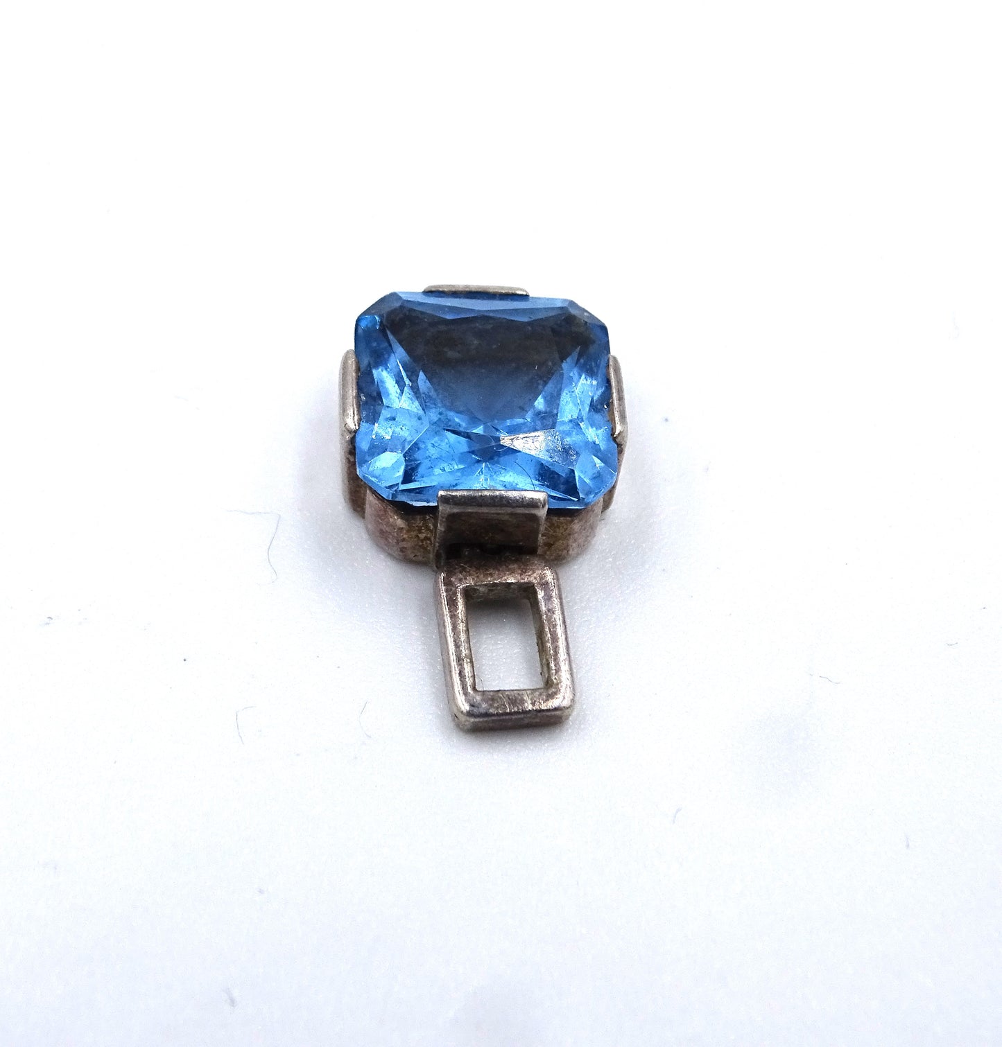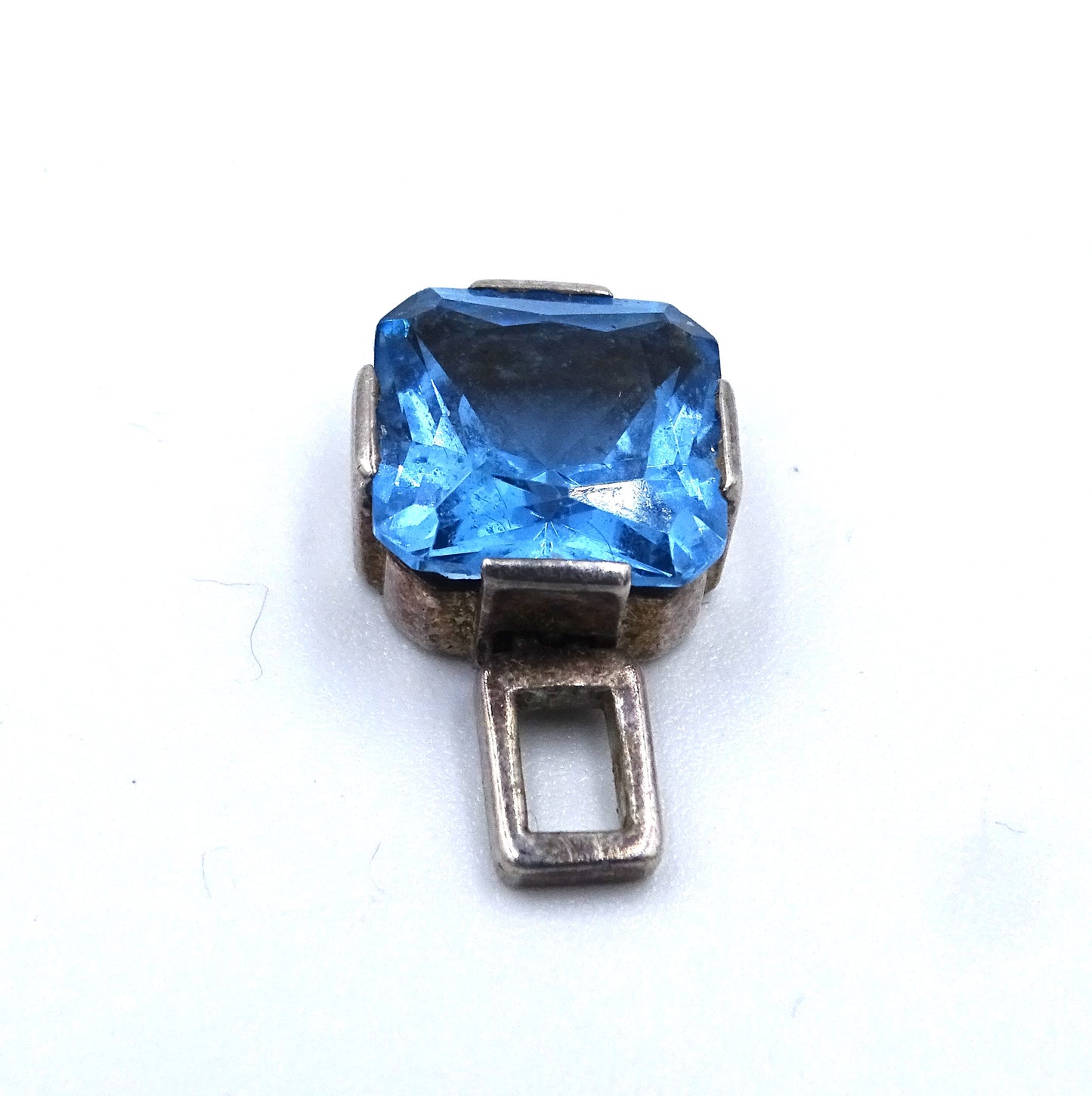 1. Fassung: Dieser Anhänger präsentiert sich in einer anmutigen Fassung, die die Schönheit des blauen Steins perfekt zur Geltung bringt.