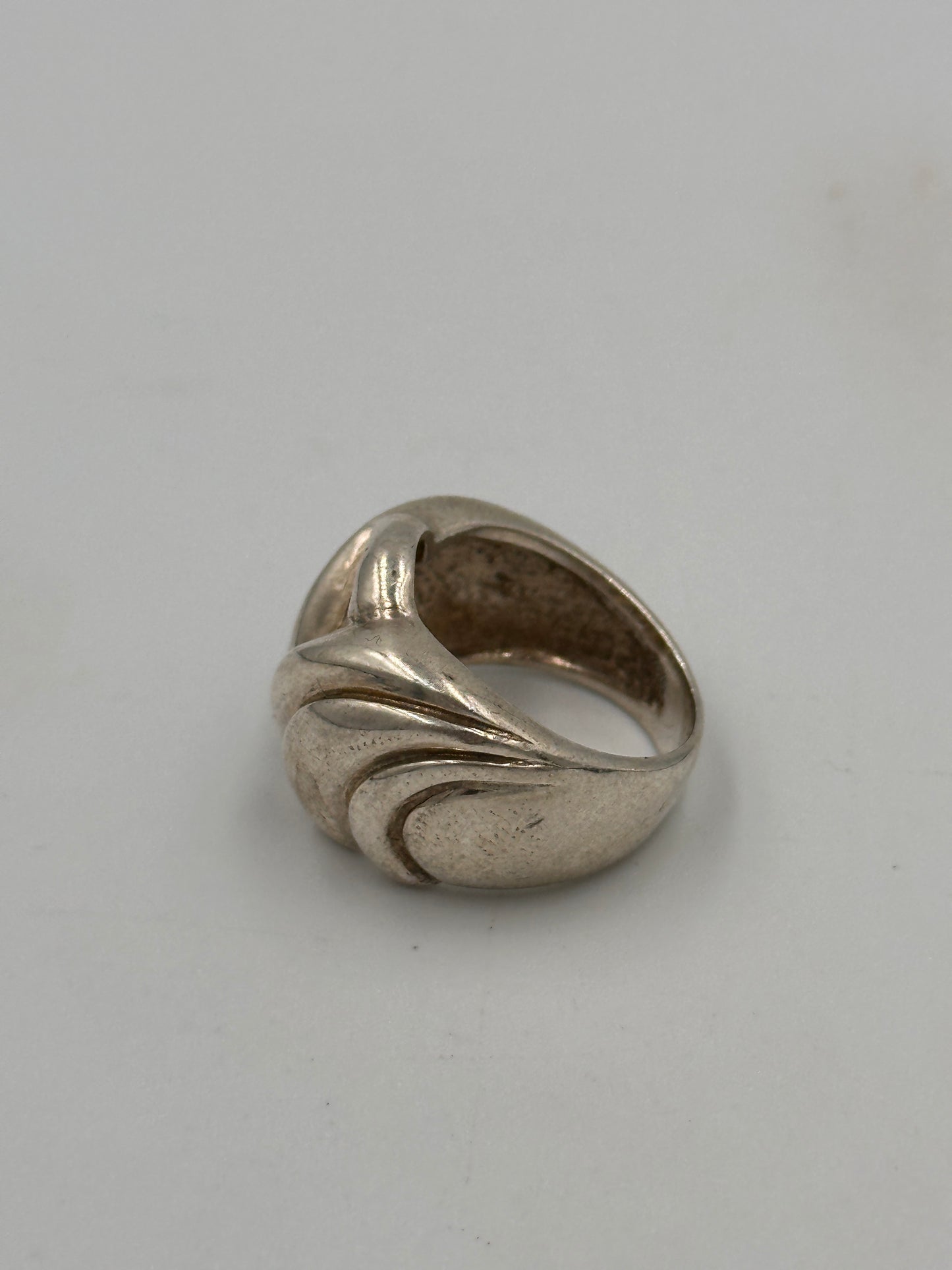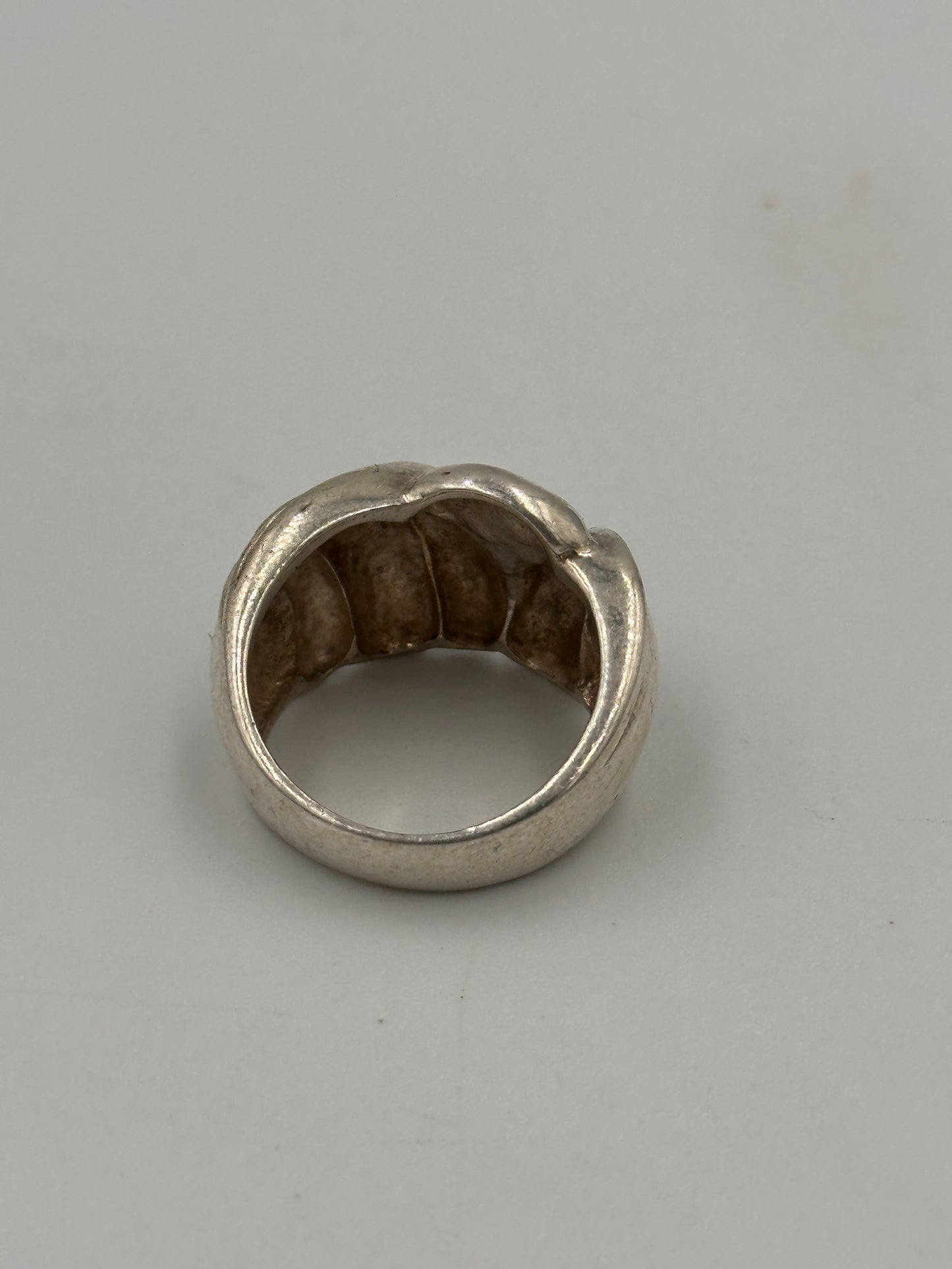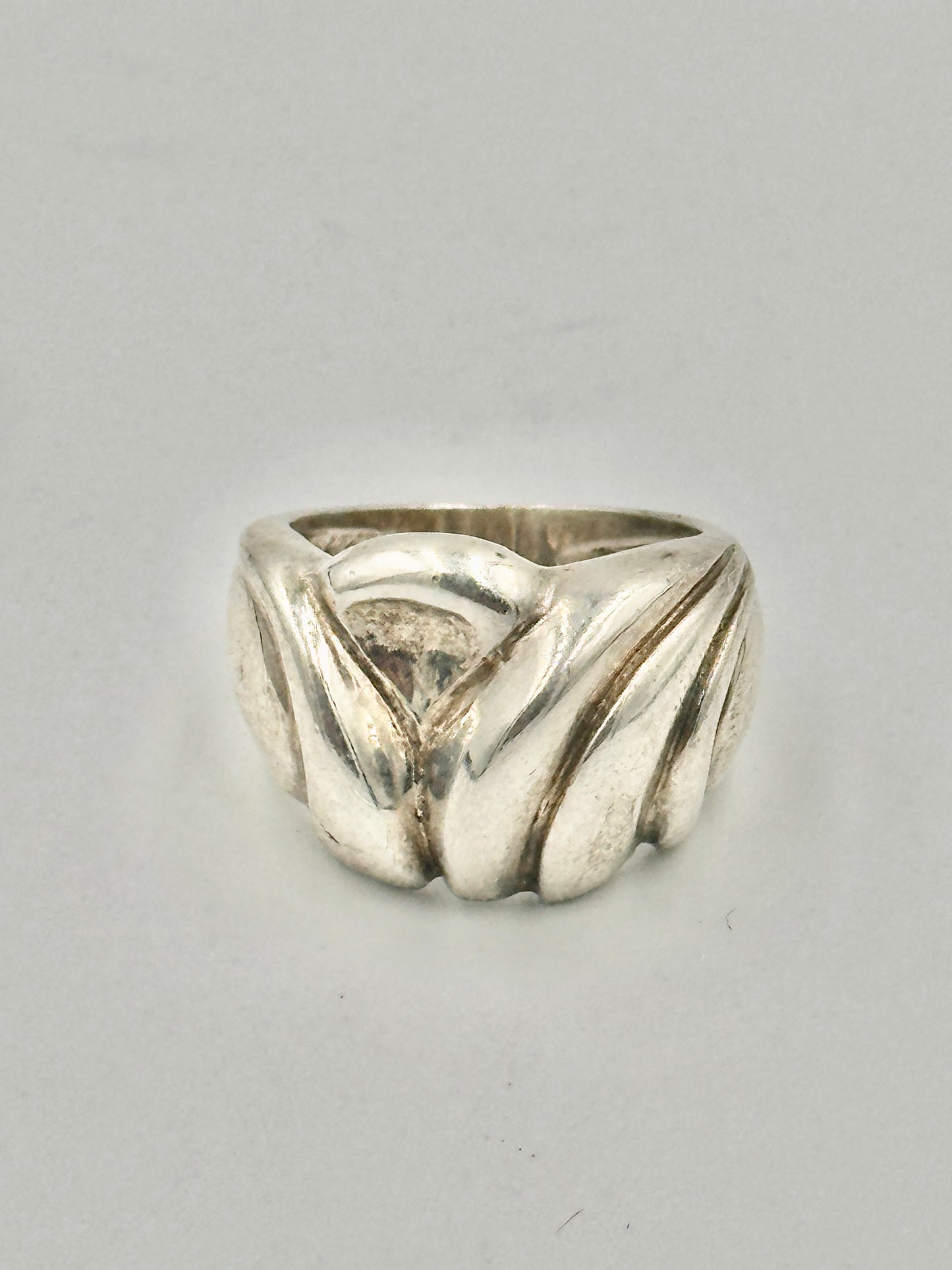 Dieser elegante Ring aus 925er Silber zeichnet sich durch sein gerilltes Design aus, das ihm eine besondere Note verleiht. Mit einer Breite von 15 mm und einer Größe von 55 bietet er eine stilvolle und bequeme Passform. Der Ring wiegt 4 Gramm und ist in einem gebrauchten, aber gut erhaltenen Zustand. Hergestellt in Europa, besticht dieser Ring durch seine hochwertige Verarbeitung und sein zeitloses Design – ein perfektes Accessoire für jede Gelegenheit.