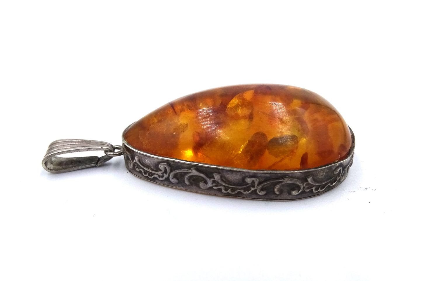 Tauchen Sie ein in die zeitlose Schönheit mit unserem wunderschönen Vintage-Baltischen-Bernstein-Anhänger, handgefertigt aus hochwertigem 925er Silber. Artikelnummer: FEA0052.