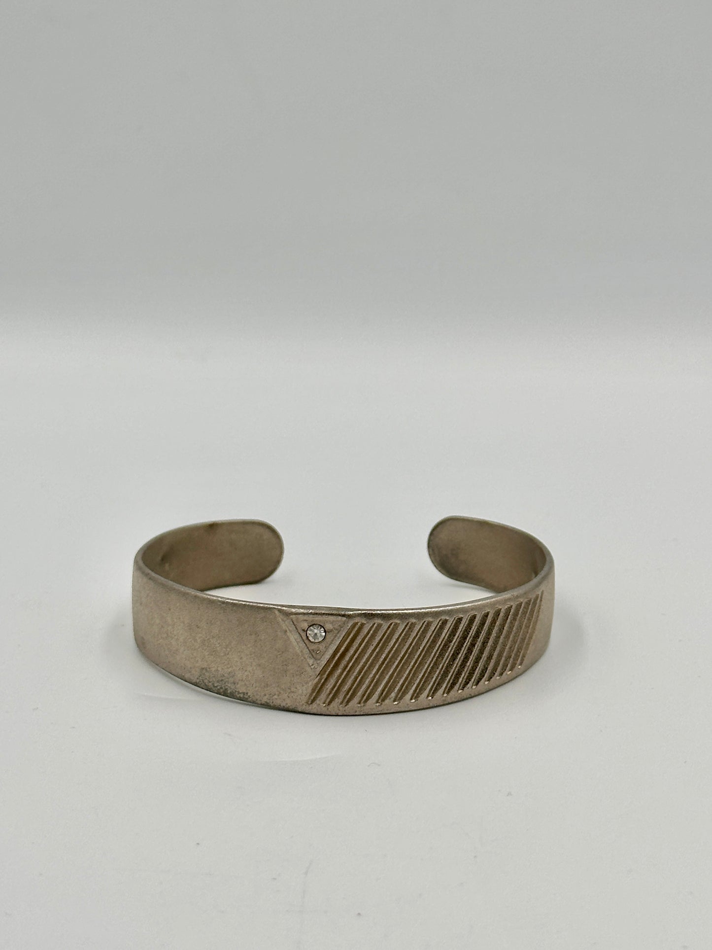 Das Armband wiegt 22,23 Gramm und ist in einem gebrauchten, aber gut erhaltenen Zustand. Der einzelne Strassstein verleiht dem Schmuckstück einen Hauch von Luxus und macht es ideal für besondere Anlässe oder als stilvolles Accessoire im Alltag.