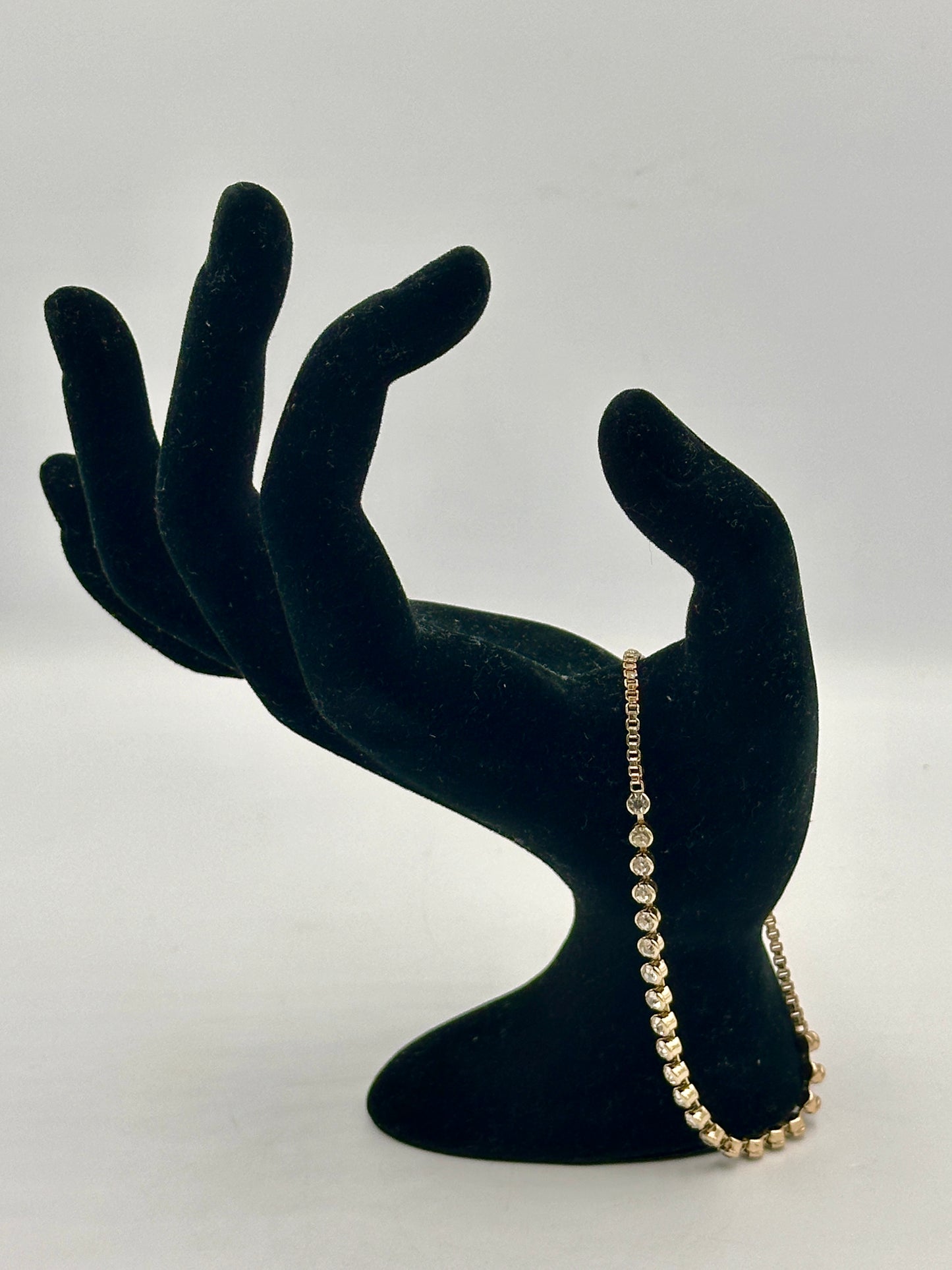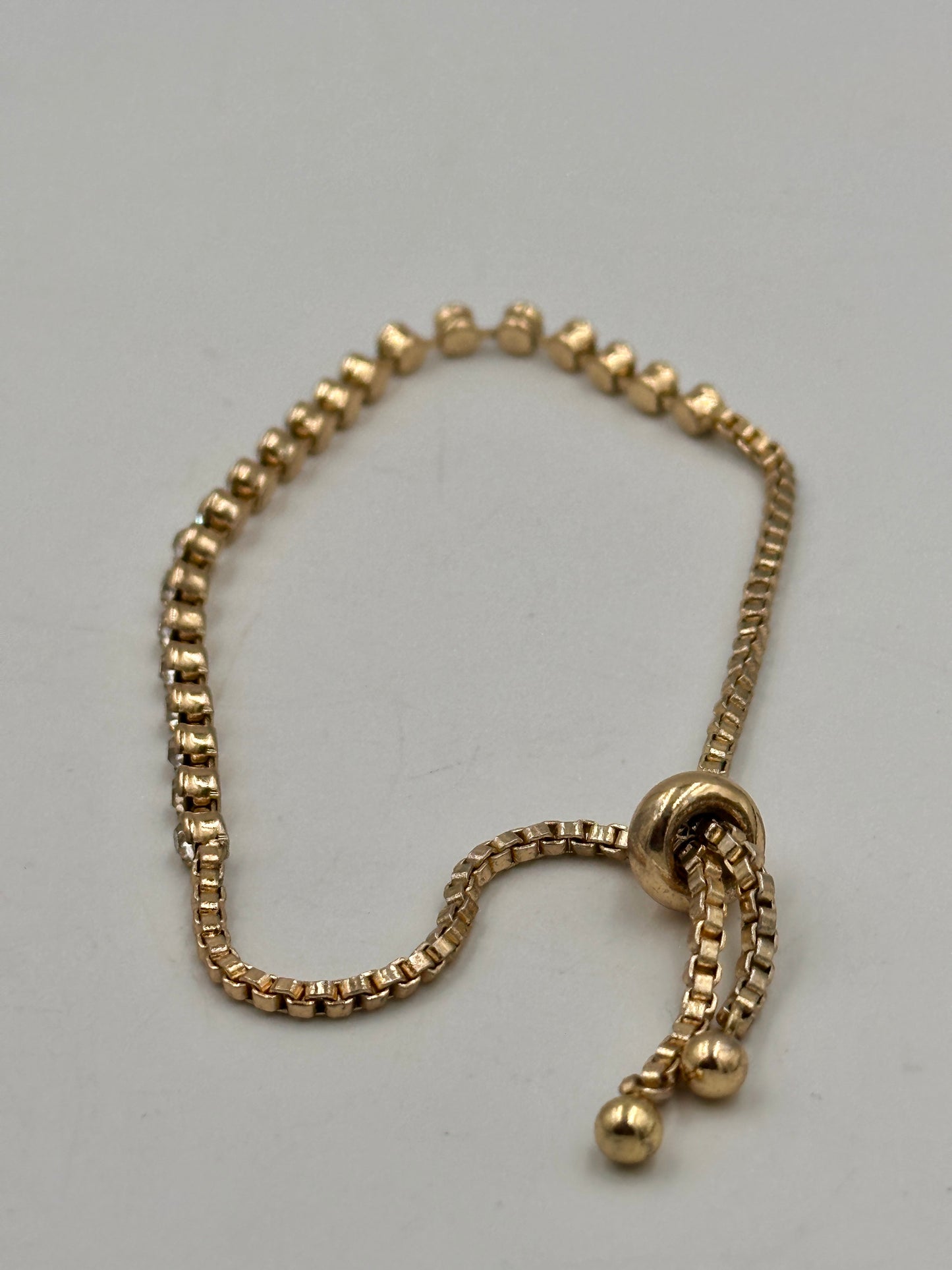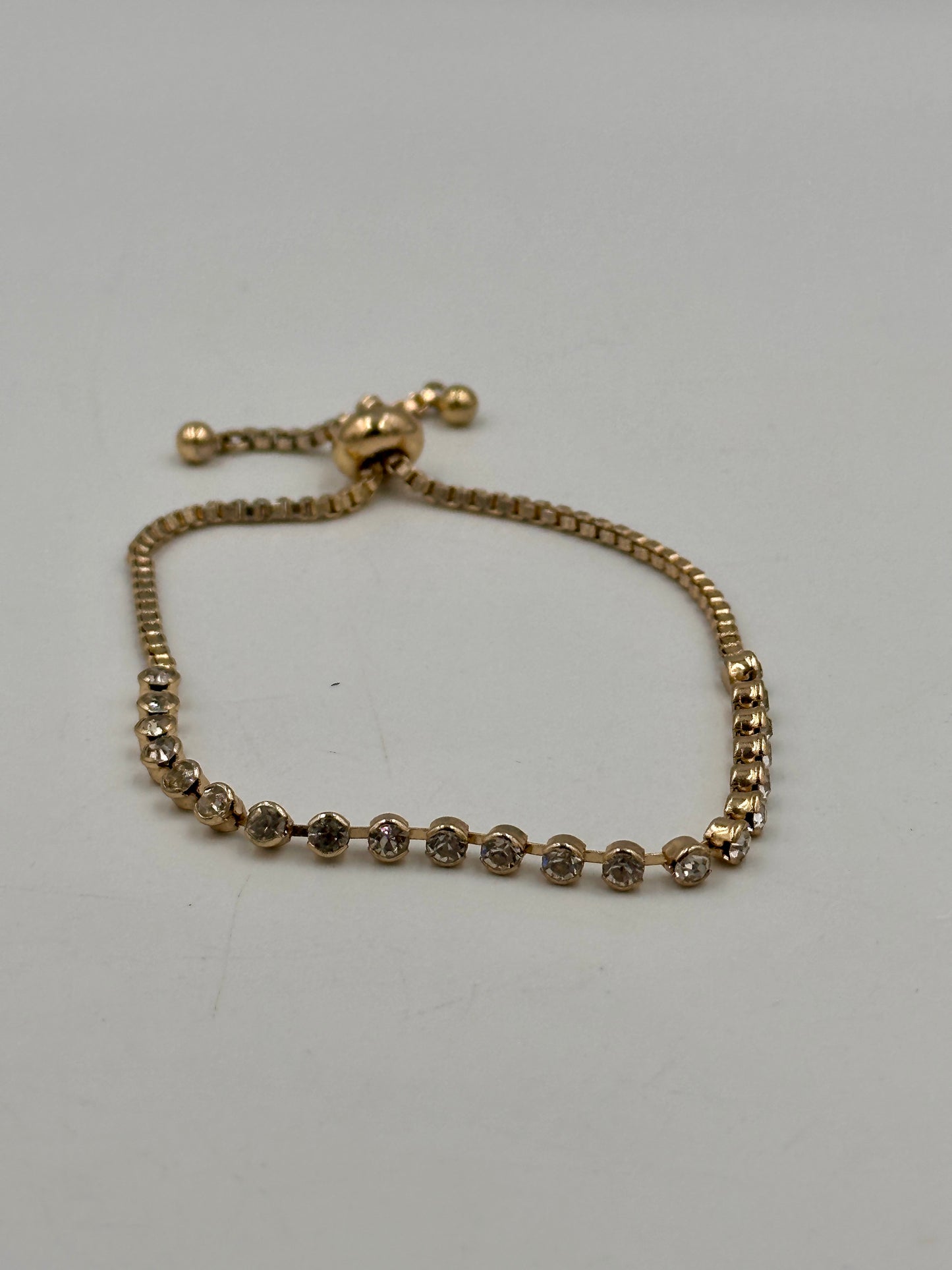 Verleihen Sie Ihrem Look mit diesem eleganten vergoldeten Armband einen Hauch von Glamour. Die funkelnden Zirkonia-Steine verleihen diesem Schmuckstück eine ansprechende Note, während die verstellbare Größe für optimalen Tragekomfort sorgt.