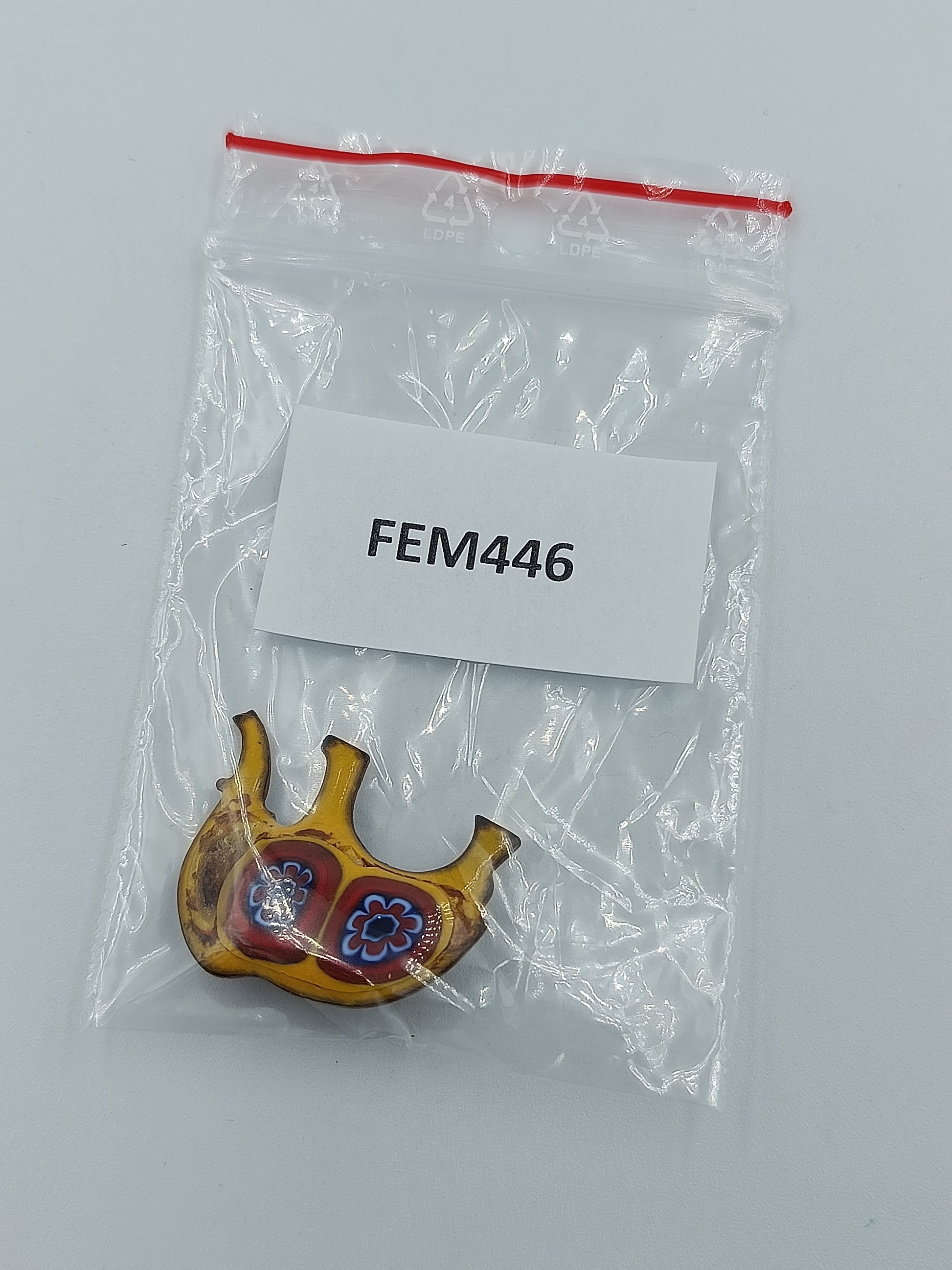 Kleine, dekorative Vintage-Brosche in Form eines Elefanten. Das Stück ist farbenfroh gestaltet mit gelbem Emaille-Grundton und roten Sattelflächen, die mit blauen Blumenmotiven verziert sind. Rückseitig mit einer stabilen Nadel ausgestattet. Ein charmantes Accessoire für Sammler oder als verspieltes Detail am Outfit.