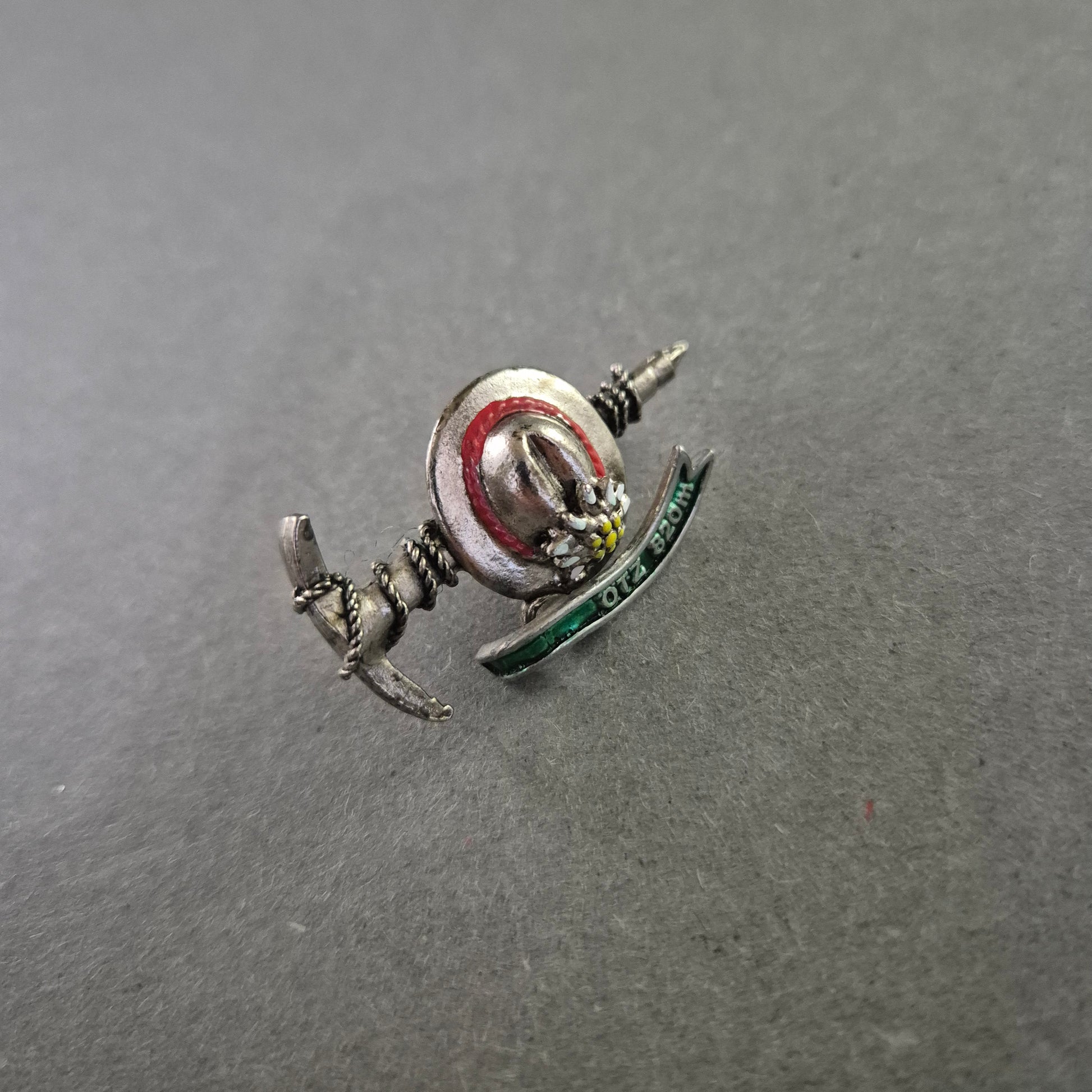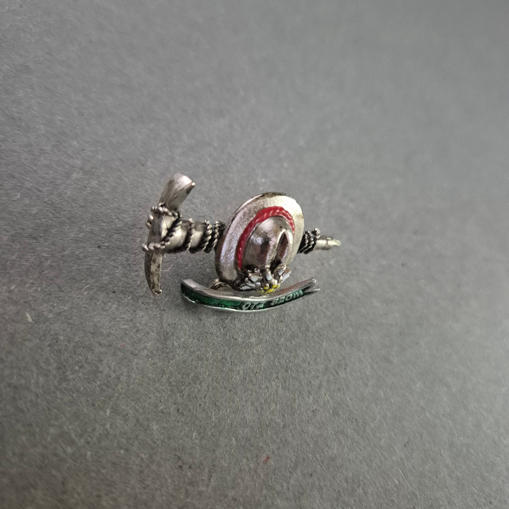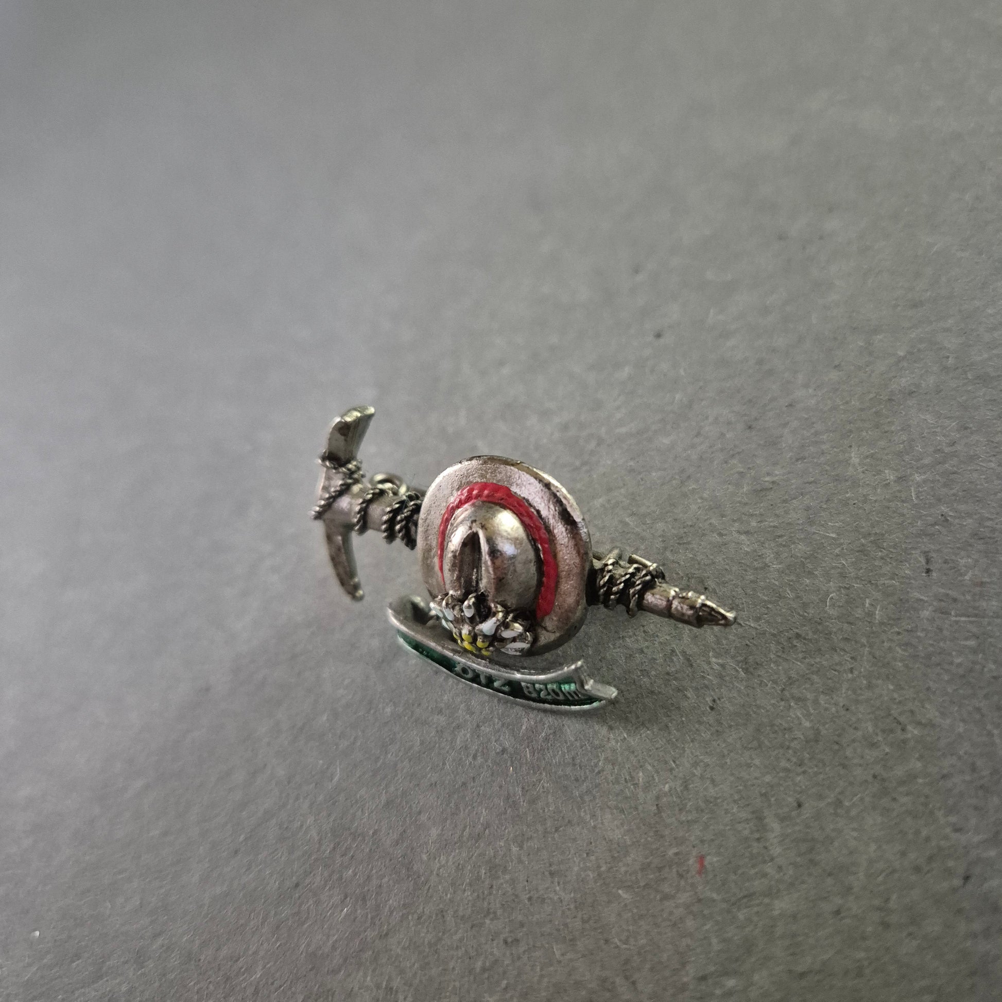 Diese liebevoll gestaltete Alpen-Brosche zeigt ein traditionelles Tiroler Hütchen mit roter Kordel, Edelweiß und Eispickel – ein Symbol für Bergfreunde. Der Schriftzug „Ötz 820 m“ erinnert an den malerischen Ort in Tirol. Die feine Emaillearbeit und das rustikale Design machen diese Brosche zu einem beliebten Souvenir oder Accessoire für Tracht und Wanderausrüstung.