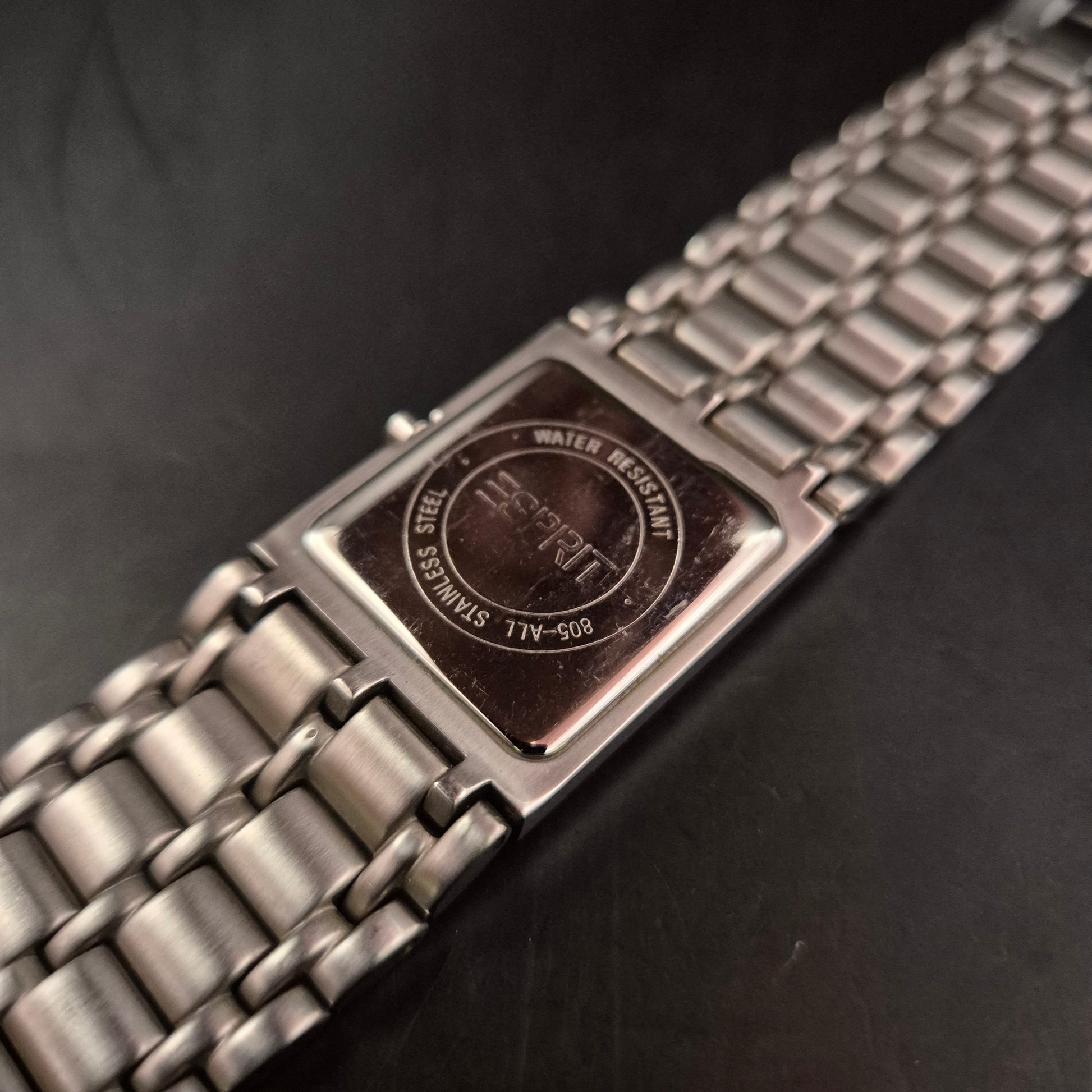 Diese Esprit Damen Armbanduhr vereint modernes Design mit minimalistischer Eleganz. Die Uhr präsentiert sich in einer markanten rechteckigen Form (oft als Tank-Stil bezeichnet) in glänzender Edelstahl-Optik. Das Gehäuse wird ergänzt durch ein passendes, breites Gliederarmband. Das helle Zifferblatt ist schlicht gehalten und mit großen, stilisierten arabischen Ziffern akzentuiert, die das klare Design unterstreichen. Laut Gehäuseboden ist die Uhr aus robustem Edelstahl gefertigt und wasserresistent. Ein stilvoller und langlebiger Zeitmesser, der sich ideal für den modernen Business- oder Alltags-Look eignet.