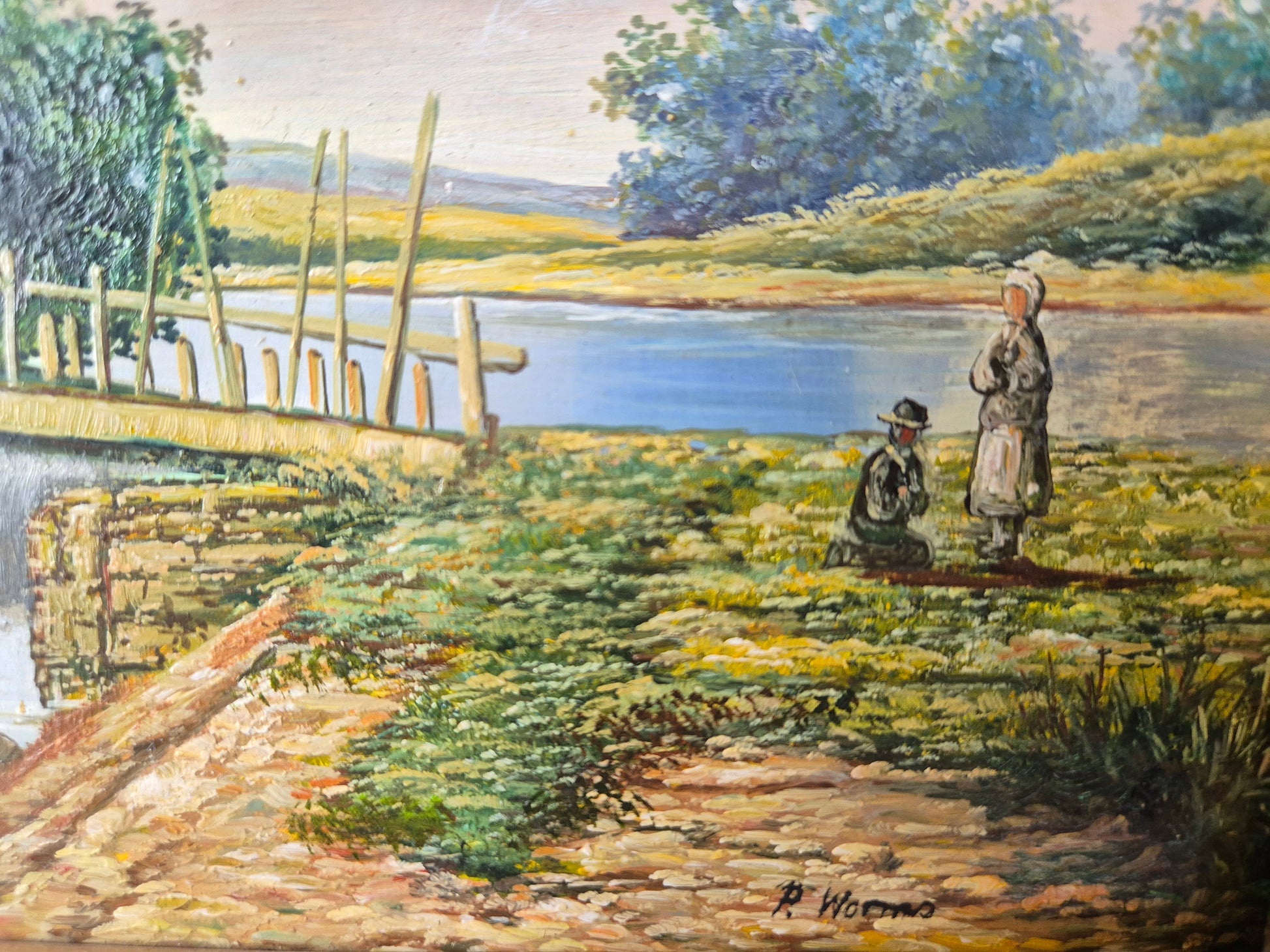 Europäische Schule (XX) – Ölgemälde: Flussufer mit Figuren